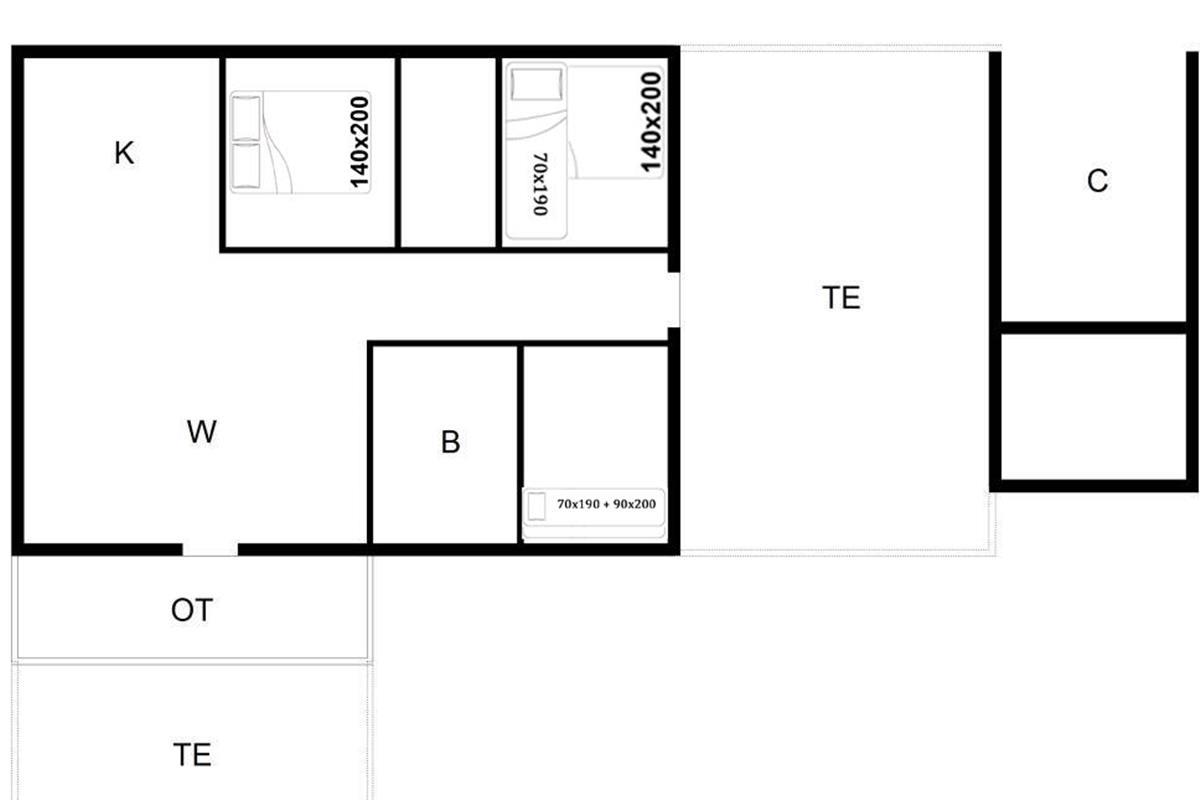Das Ferienhaus verfügt über drei Schlafzimmer, zwei mit Doppelbett und eines mit Etagenbett – optimal aufgeteilt für Familien mit Kindern. Dank der hellen Holzverkleidung und der geschmackvollen Einrichtung entsteht ein freundliches, skandinavisches Ambiente, in dem man sich sofort wohlfühlt.