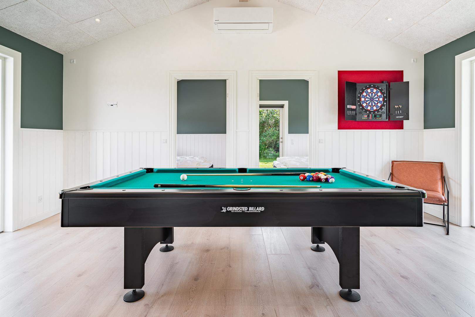 Für Unterhaltung sorgt der separate Aktivitätsraum mit Billardtisch und Dartscheibe – ein echtes Highlight für Familien und Freunde, die auch im Urlaub gerne spielen und sich messen.
