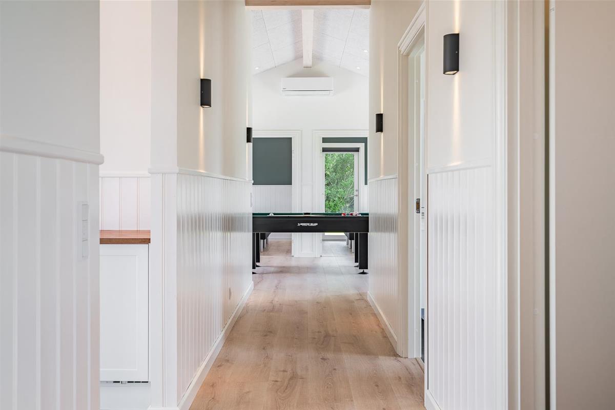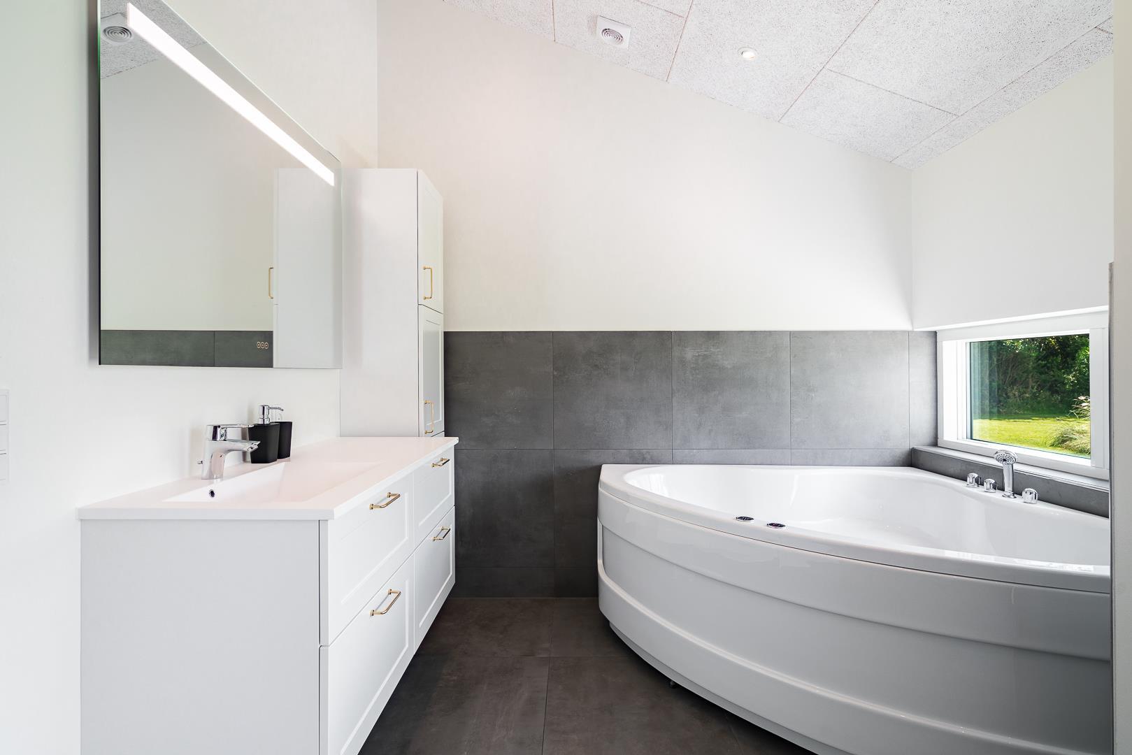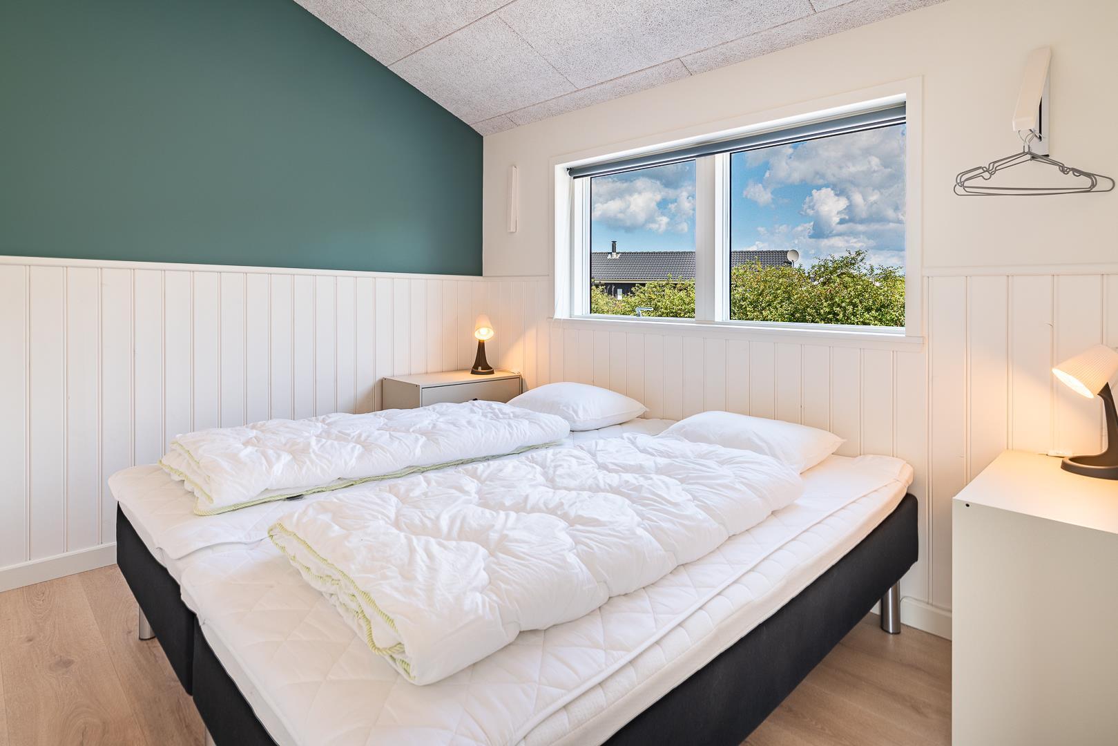 Das Ferienhaus bietet insgesamt vier Schlafzimmer, jeweils mit einem Doppelbett ausgestattet – ideal für Familien oder gemeinsam reisende Paare. Zwei moderne Badezimmer mit Fußbodenheizung bieten zusätzlichen Komfort. In einem der Badezimmer erwartet euch ein Whirlpool und auch an die Kleinsten wurde mit einer Badewanne für Babys gedacht.