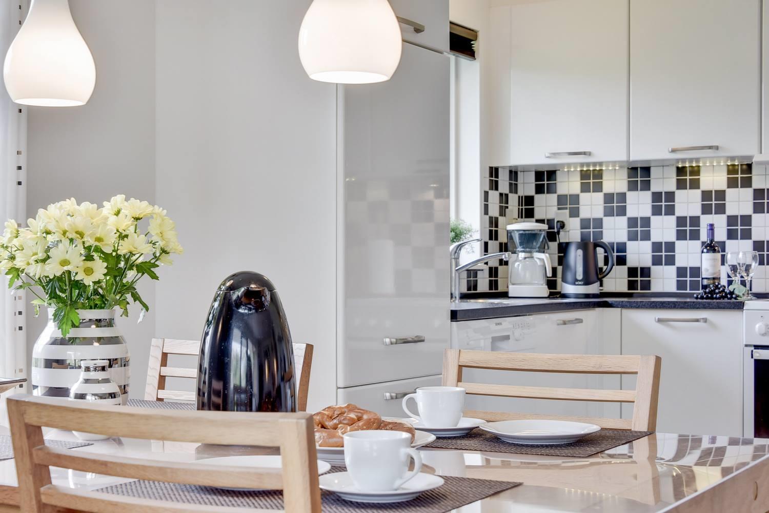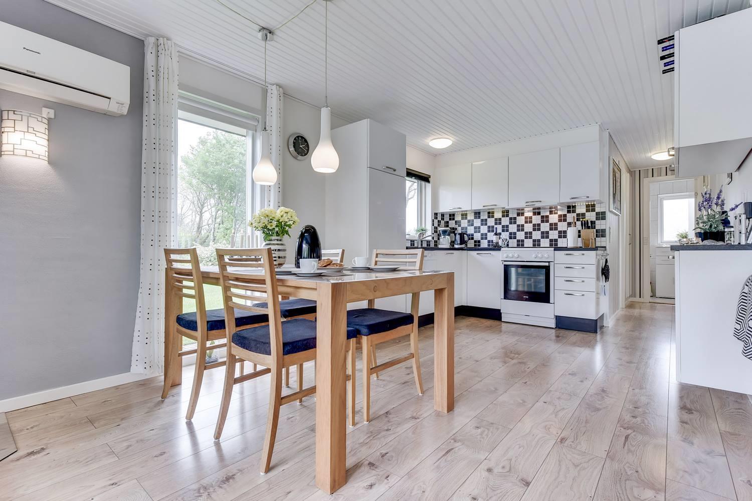 Die Küche ist modern ausgestattet – mit Spülmaschine und allem, was du brauchst, um dich im Urlaub in Dänemark selbst zu versorgen. Ob ein schnelles Frühstück oder ein gemütliches Abendessen – hier hast du alle Möglichkeiten.