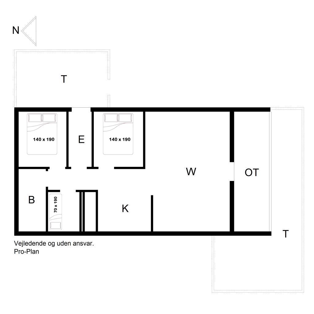 Bettengrösse: 2 Doppelbetten 140 x 190 cm + 1 Einzelbett 70 x 190 cm