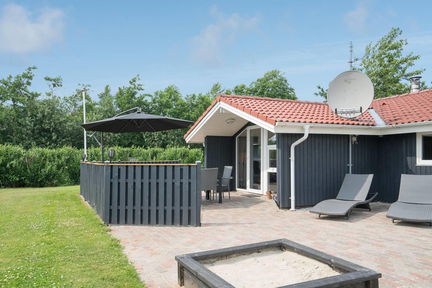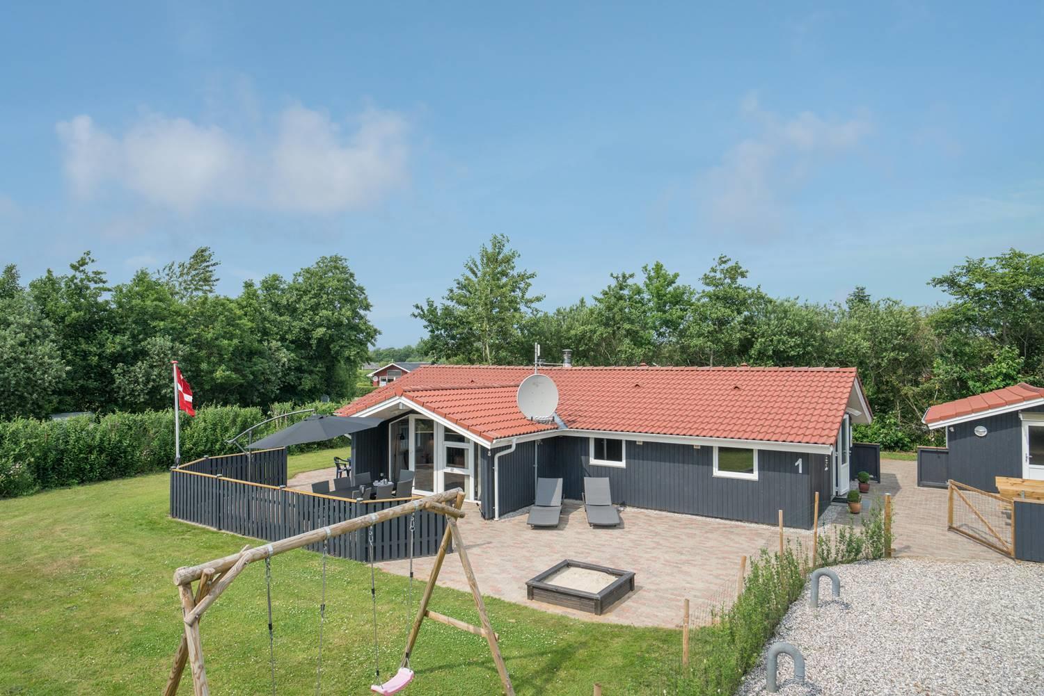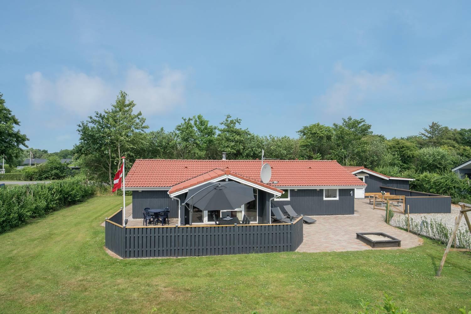 Das große, eingezäunte Grundstück bietet viel Platz zum Spielen, Toben und Entspannen. Für eure Kinder gibt es eine Schaukel und einen Sandkasten, und auf der überdachten Terrasse könnt ihr gemeinsam essen und den Abend gemütlich ausklingen lassen – auch wenn der Wind mal auffrischt.