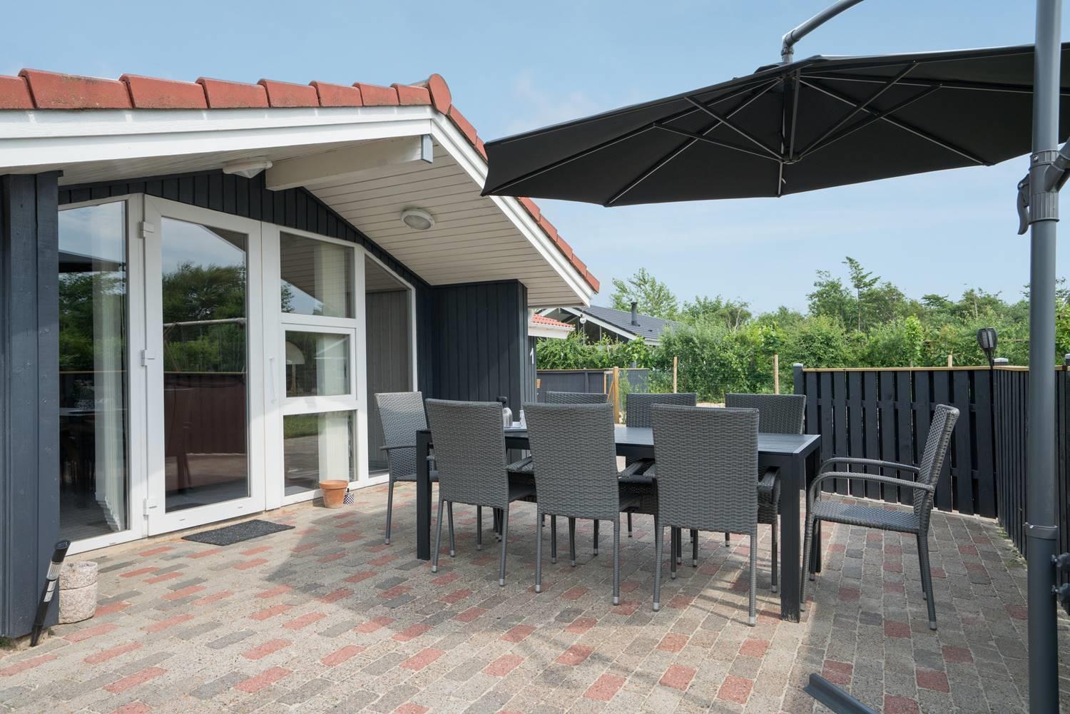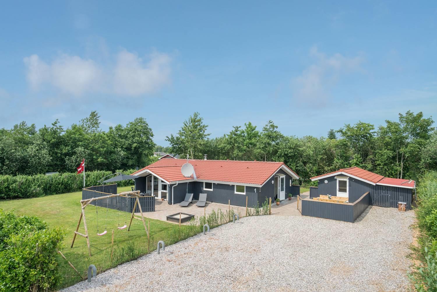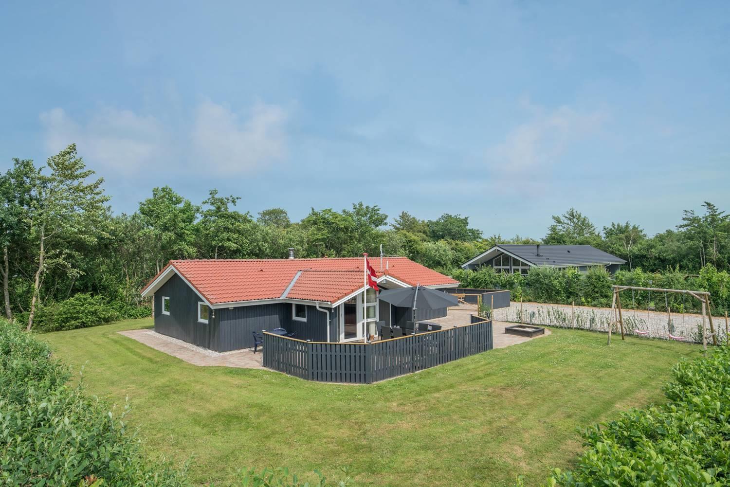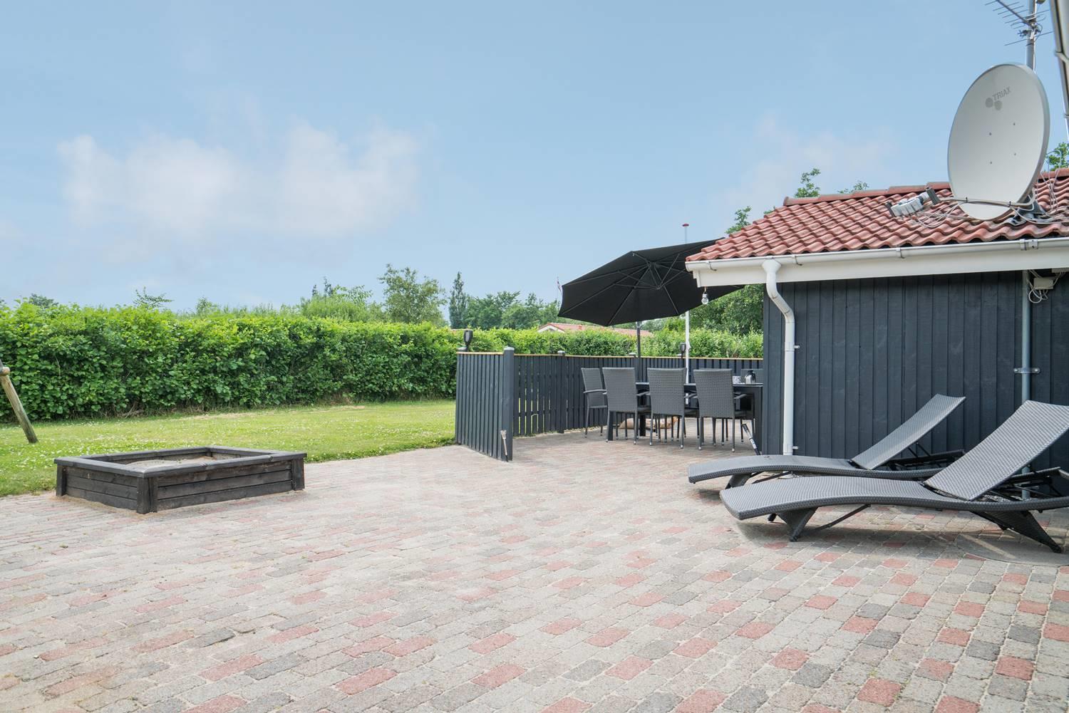 Das große, eingezäunte Grundstück bietet viel Platz zum Spielen, Toben und Entspannen. Für eure Kinder gibt es eine Schaukel und einen Sandkasten, und auf der überdachten Terrasse könnt ihr gemeinsam essen und den Abend gemütlich ausklingen lassen – auch wenn der Wind mal auffrischt.