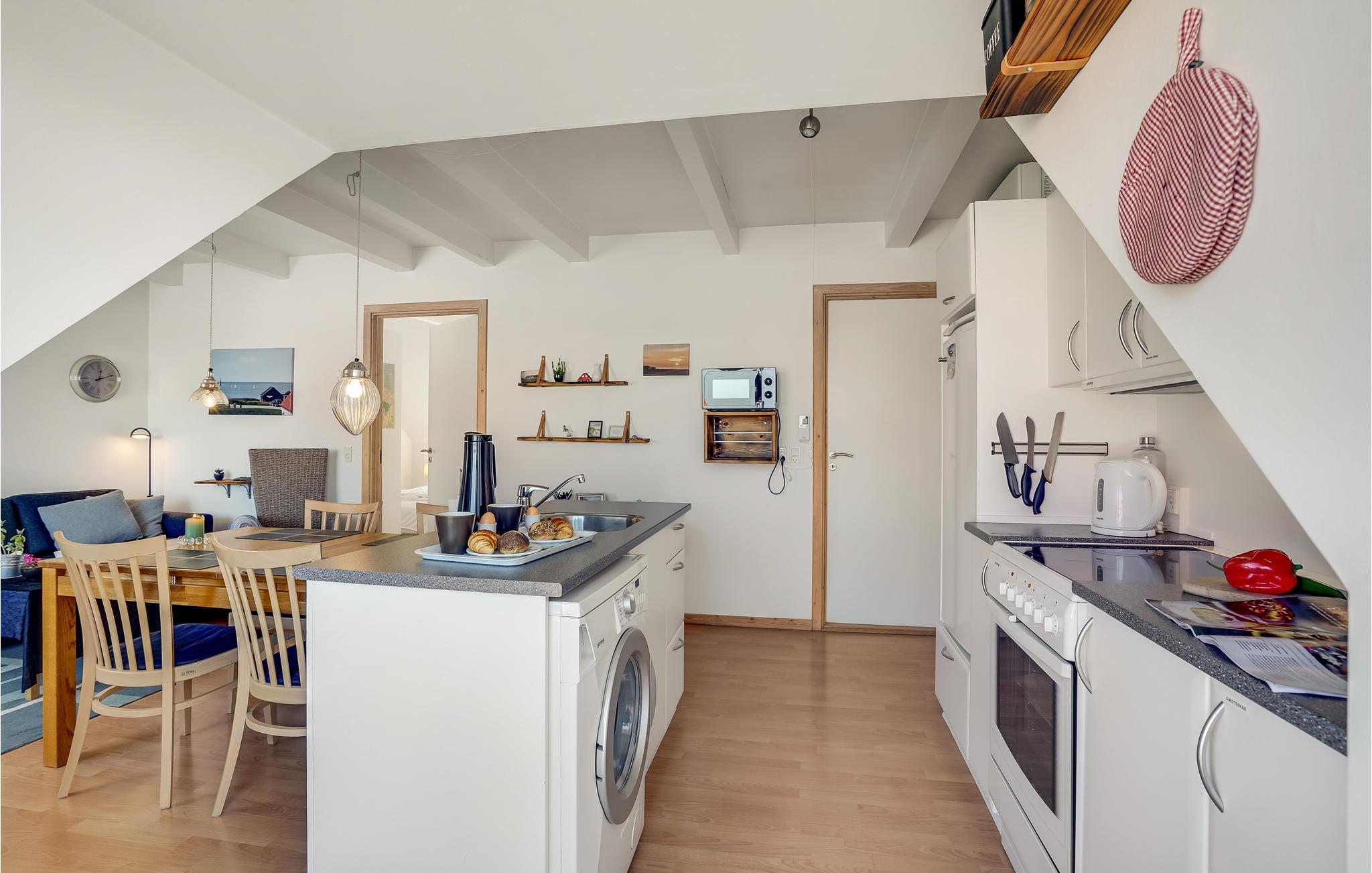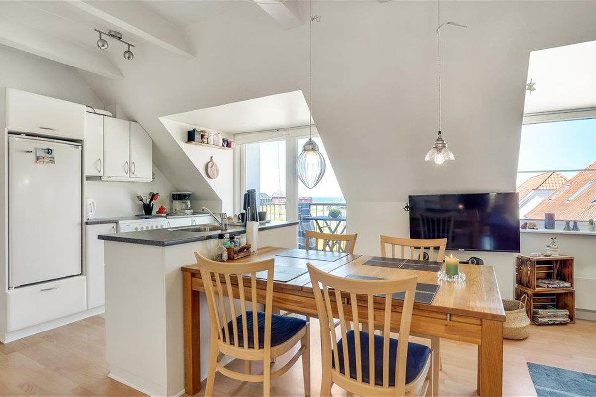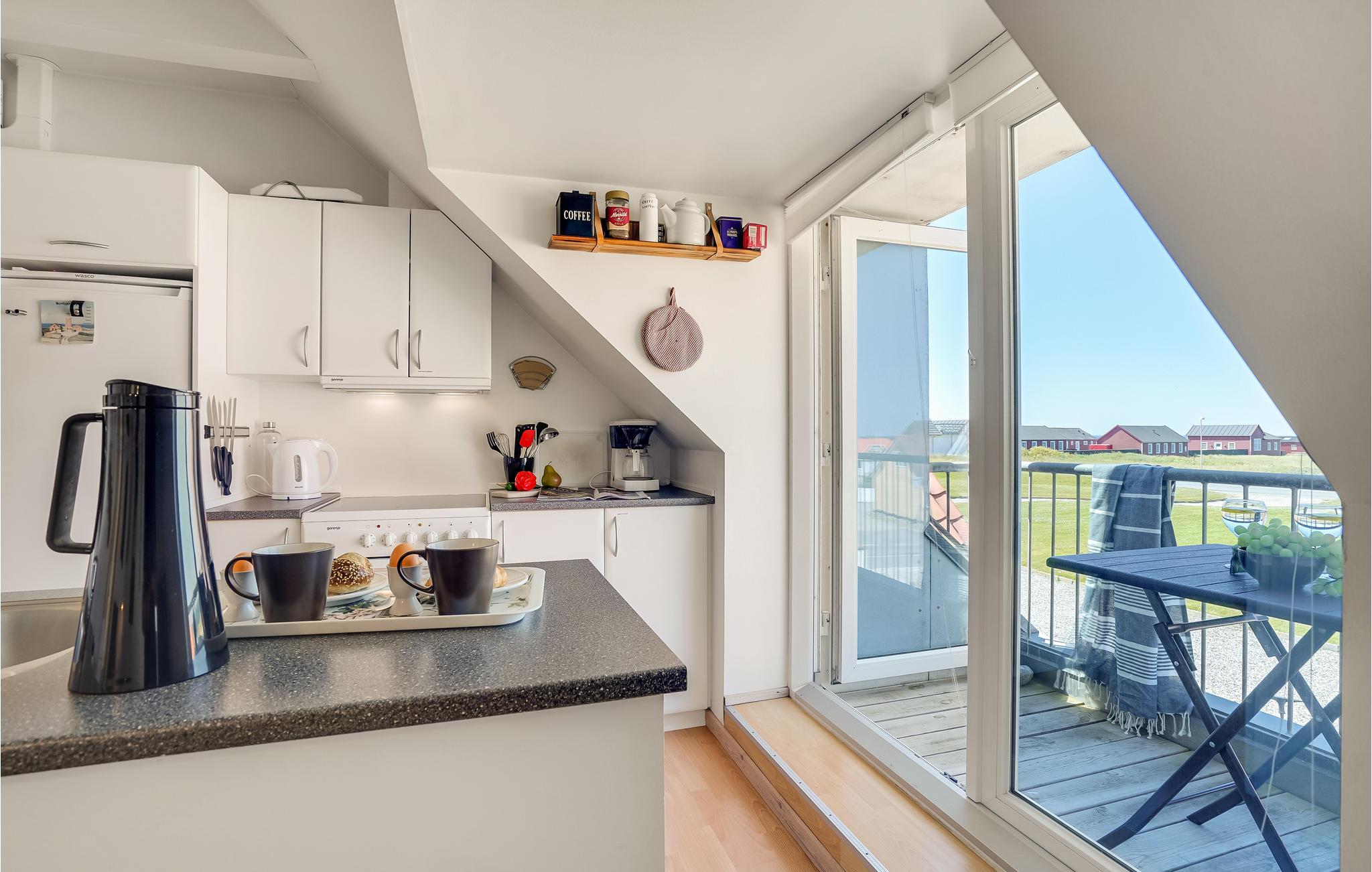 Geniet van een aangenaam verblijf met uw geliefden in dit prachtige vakantiehuis aan de noordwestkust van Jutland. De flat is slim en comfortabel ingericht en u zult zich hier snel thuis voelen. Drink uw ochtendkoffie op het balkon terwijl u geniet van het uitzicht op het water of kijk 's avonds met een koel drankje naar de fascinerende zonsondergangen over de zee.