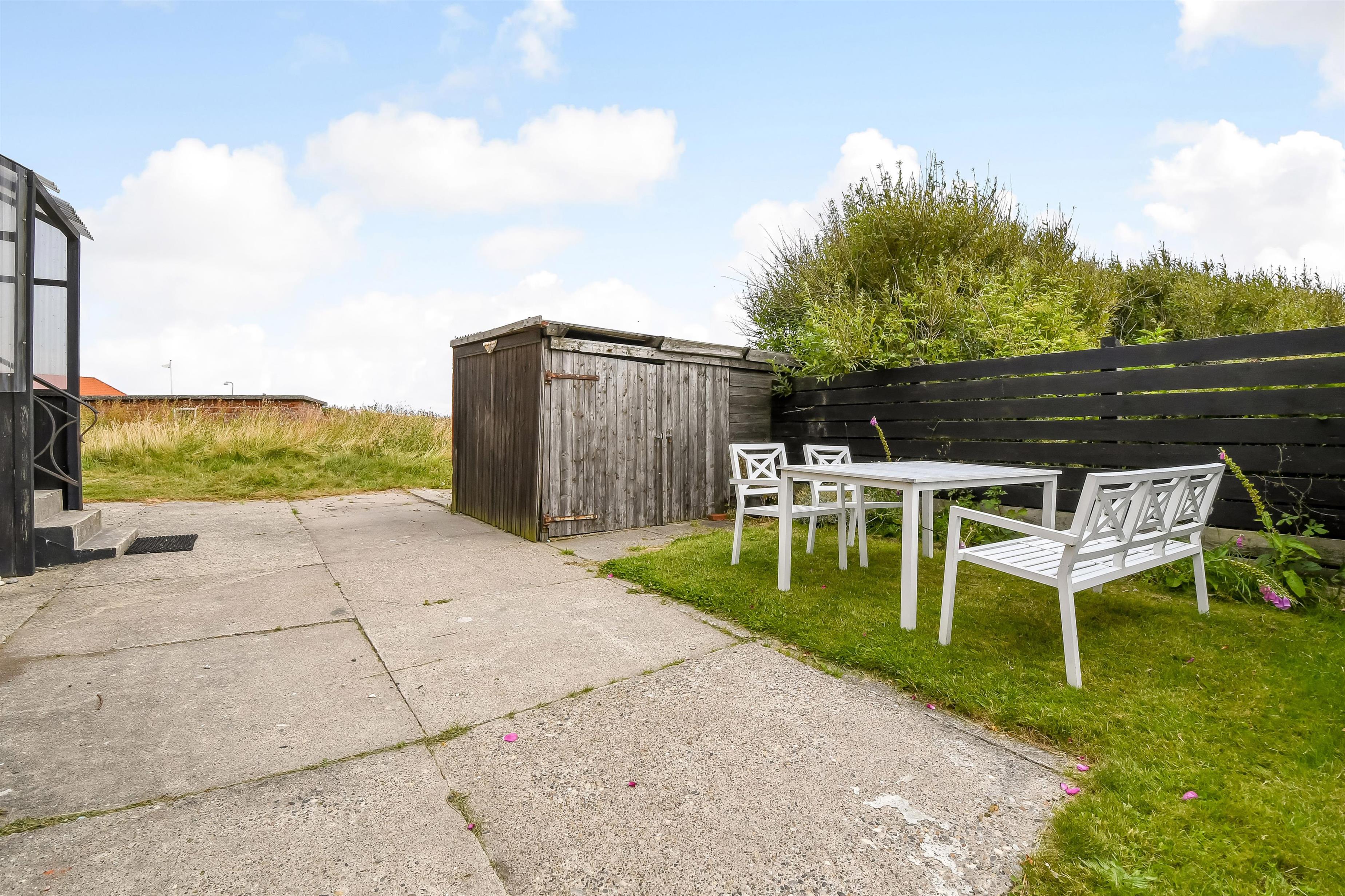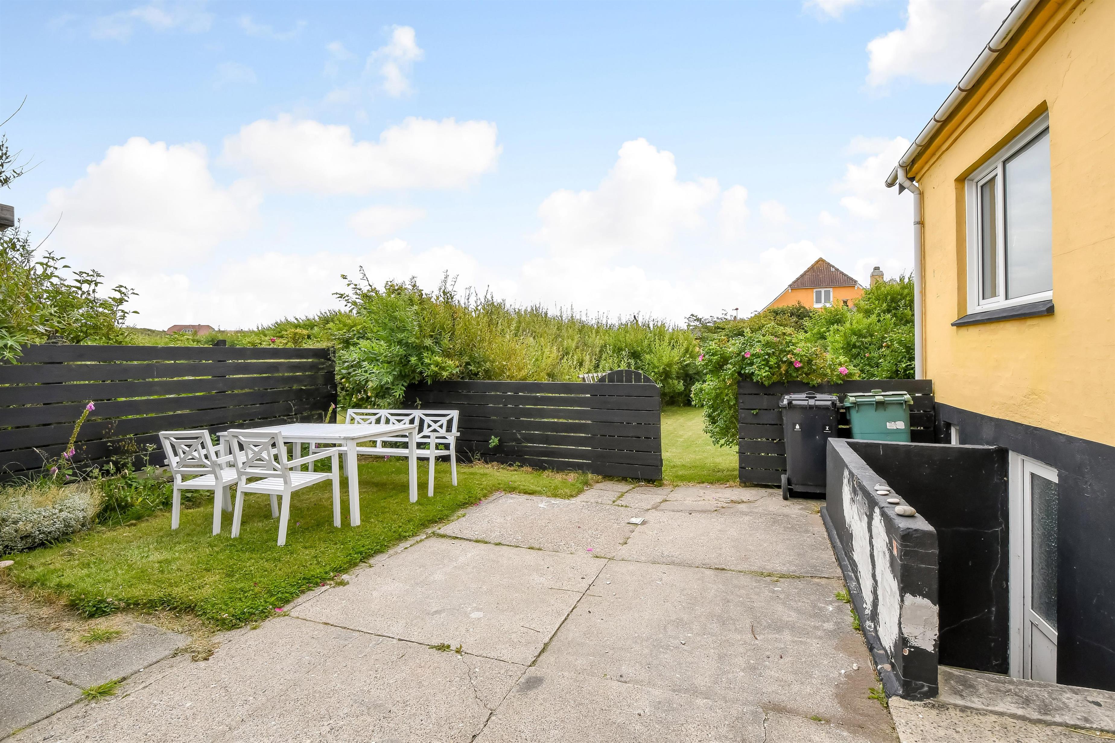 Das Haus liegt auf einem etwa 1.135 m2 grossen Grundstück mit vielen Sonnenecken und der Möglichkeit windgeschützte Stellen zu finden. Von dem kleinen Flur haben Sie einen Ausgang zur Terrasse/Sonnenhof mit Gartenmöbeln und Grill. Hier ist es perfekt auch für Kinder mitbringen. Ein sehr gepflegtes und gemütliches ganzjähriges Haus, wo Sie als ein Paar oder eine Familie mit max. 4-6 Personen die Möglichkeit haben einen entspannten Urlaub zu verbringen, dicht an Bovbjerg klint, Nordsee, Ferring See und Jens Søndergårds Museum. Innerhalb von 30-45 Minuten erreichen Sie mehrere Aktivitäten und Einkaufsmöglichkeiten.