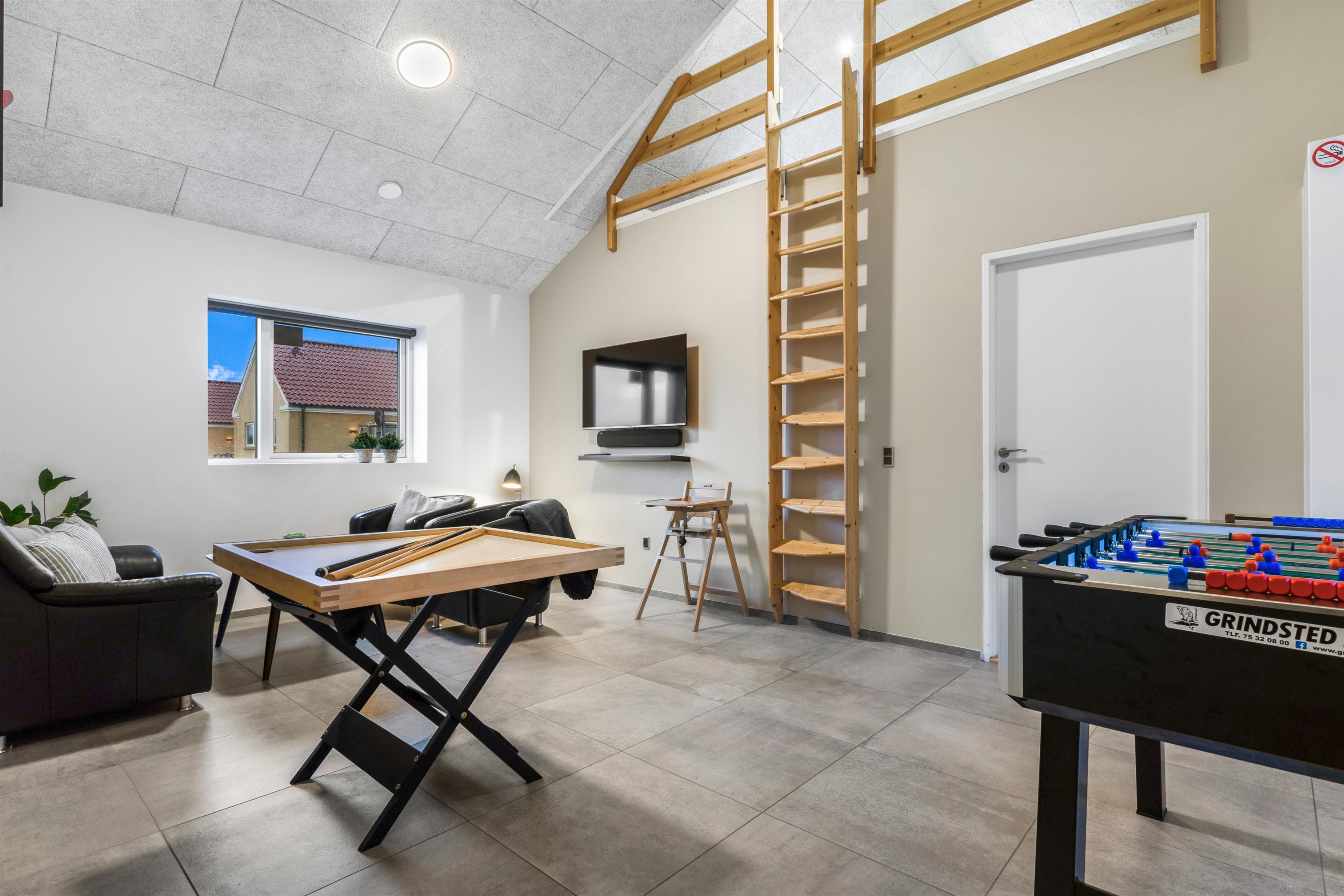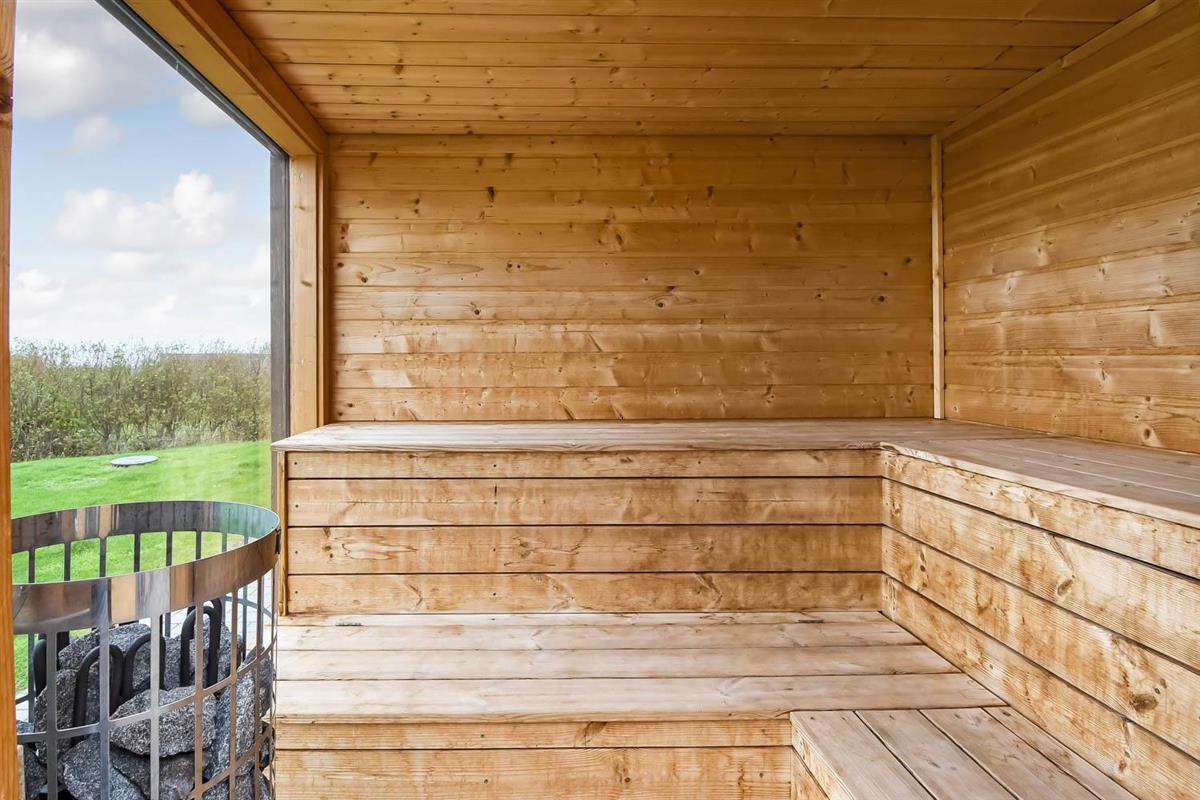 Auf dem 2500 m² großen Grundstück gibt es viel Platz und auf der herrlichen Terrasse gibt es viele Möglichkeiten für einen Platz in der Sonne oder im Schatten, da ein Teil der Terrasse teilweise überdacht ist. Es gibt natürlich Gartenmöbel und Sonnenliegen sowie einen Grill. Wie wäre es mit einem Ausflug in den Whirlpool im Freien der sich auch auf der Terrasse befindet, was das Erlebnis einzigartig macht, insbesondere an dunklen Abenden mit klarem Sternenhimmel, ein einzigartiges Erlebnis - eine reine Therapie für Seele und Körper - oder vielleicht ein frisches Bad in der Nordsee, dann nach Hause und ab in die Außensauna. Das Haus liegt in der Nähe des Jens Søndergårds Museums und nicht weit vom Leuchtturm von Bovbjerg entfernt. Genießen Sie einen fantastischen Spaziergang oder Lauf auf dem Weg, der direkt am Rande des Bovbjerg Klint mit Blick auf die Nordsee angelegt ist. Erleben Sie, dass die Nordsee jeden Tag eine neue Geschichte erzählt. Besuchen Sie die vielen Attraktionen und Erlebnisse, die innerhalb von maximal 30 Minuten erreicht werden können. Oder besuchen Sie das Fischerdorf Thyborøn oder die schöne Handelsstadt Lemvig mit vielen Fachgeschäften. Das perfekte Haus für maximal 14 Personen in einer einzigartigen Moränenlandschaft, die viele Hügel, Möglichkeiten und Romantik bietet.