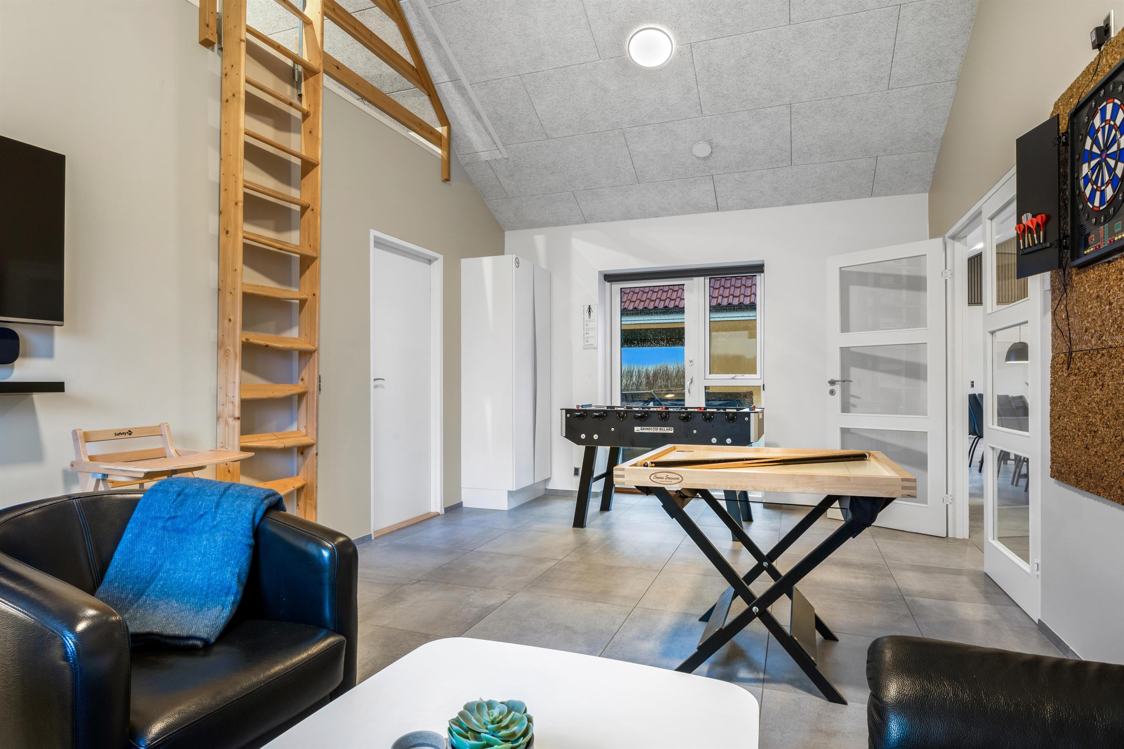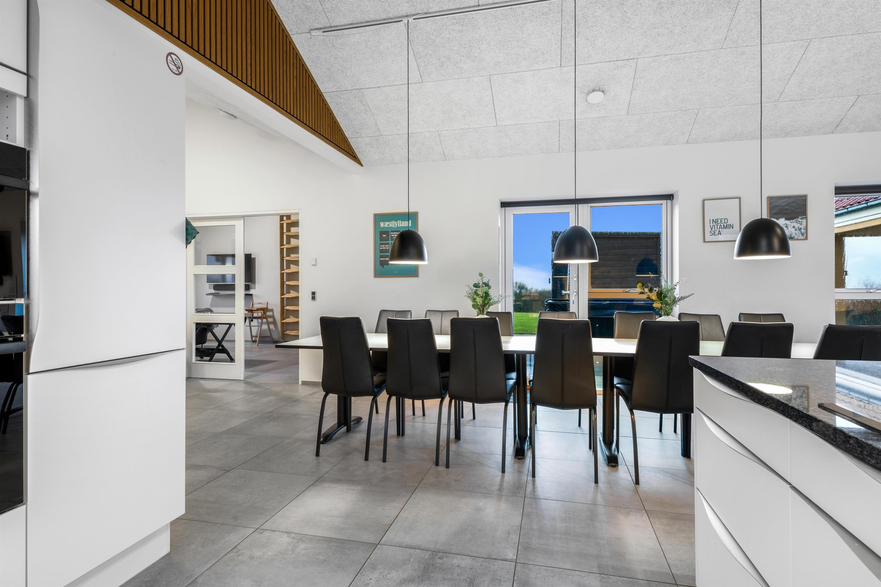Großes, fantastisch gelegenes, neu gebautes Luxushaus. Das Haus wurde von Bovbjerg Klint erbaut und bietet Meerblick auf die Nordsee. Unter anderem, Whirlpool im Freien und eine Sauna im Freien, kostenloses WLAN und ein Aktivitätsraum mit Dart, Bob, Tischfussball und TV. Ein Haus mit Platz für maximal 14 Personen. Egal, ob zwei Familien zusammen reisen oder Kollegen, es gibt viel Platz für eine ruhige Zeit, einen Platz in der Sonne oder Wettbewerbe im Aktivitätsraum.