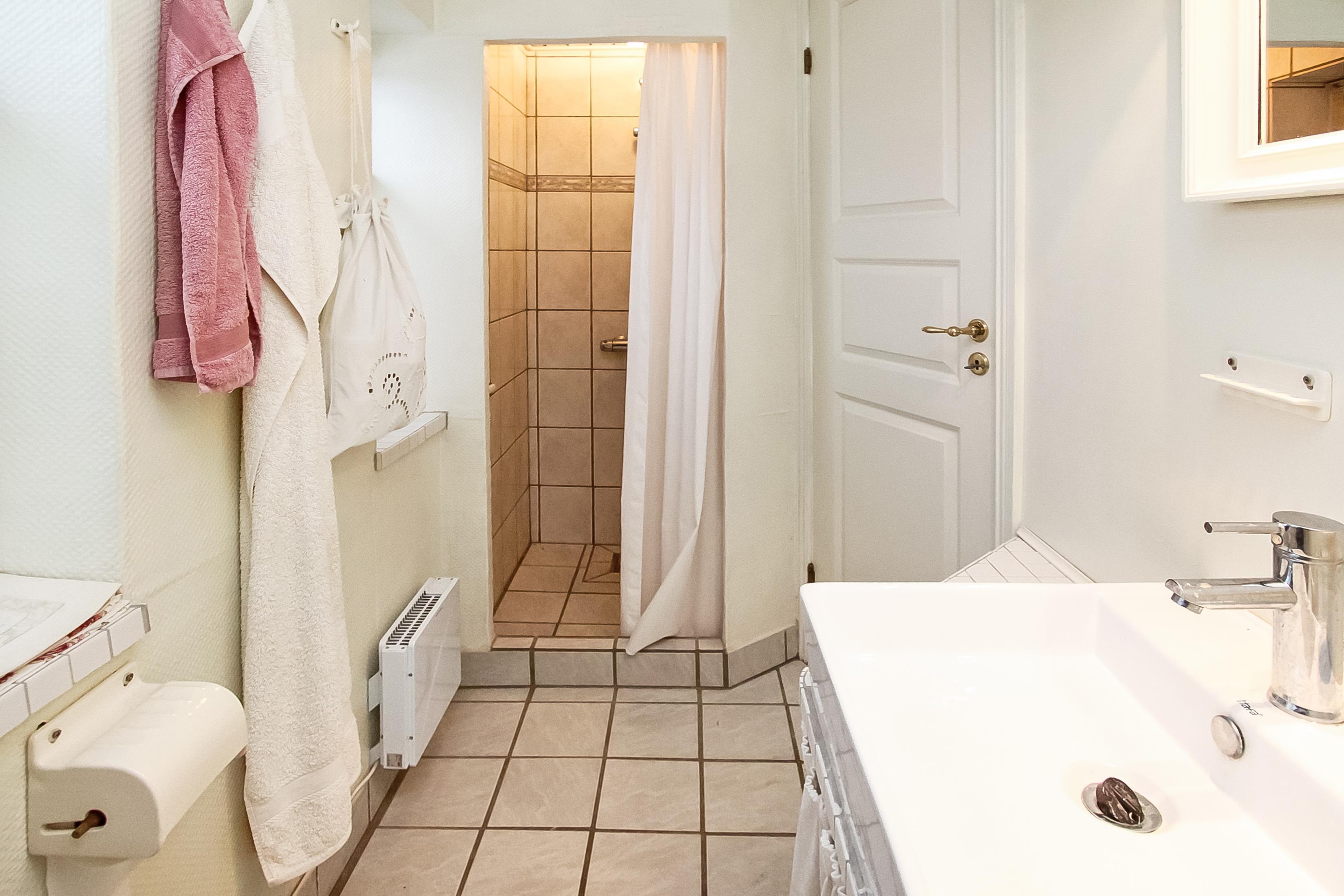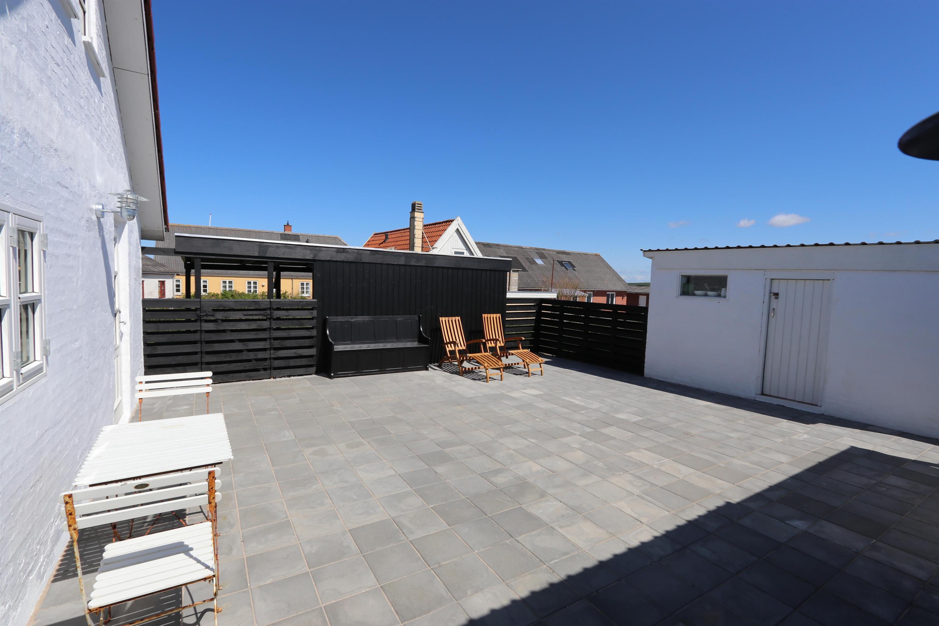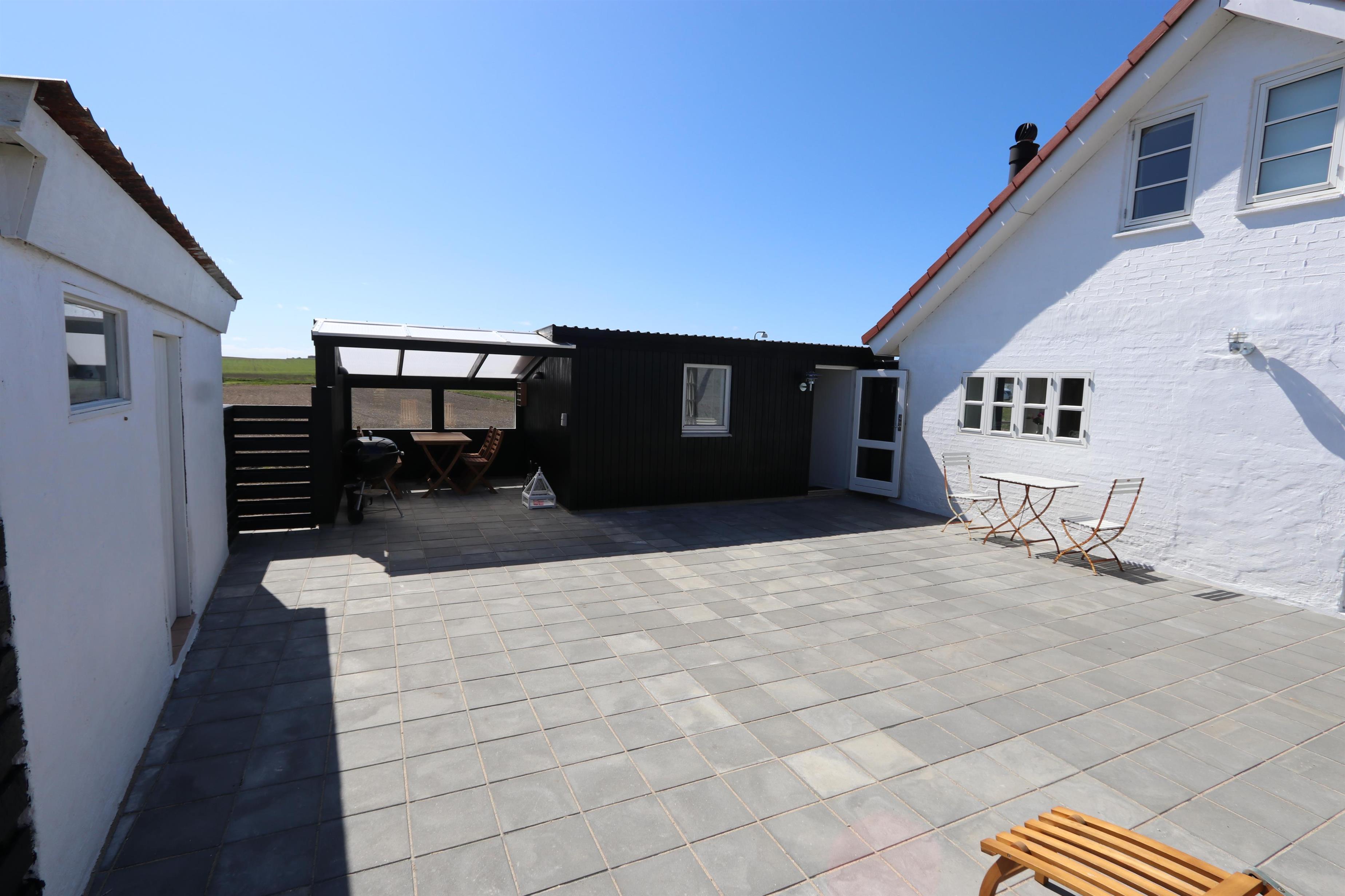 Vom Flur gibt es einen Ausgang zu einer eingezäunten Terrasse/Sonnenhof mit Gartenmöbeln und Grill. Ganz perfekt wenn man Kinder oder Haustiere dabei hat. Ein ganz gepflegtes, gemütliches und schönes ganzjähriges Haus, wo ein Paar oder eine kleine Familie mit max. 4 Personen die Möglichkeit hat, einen erholsamen ruhigen Urlaub in einmaliger Umgebung dicht bei Bovbjerg Klint, Nordsee, Ferring See und Jens Søndergaards Museum verbringen kann. Innerhalb von 30-45 Minuten erreichen Sie verschiedene Aktivitäten und Shoppingsmöglichkeiten.
