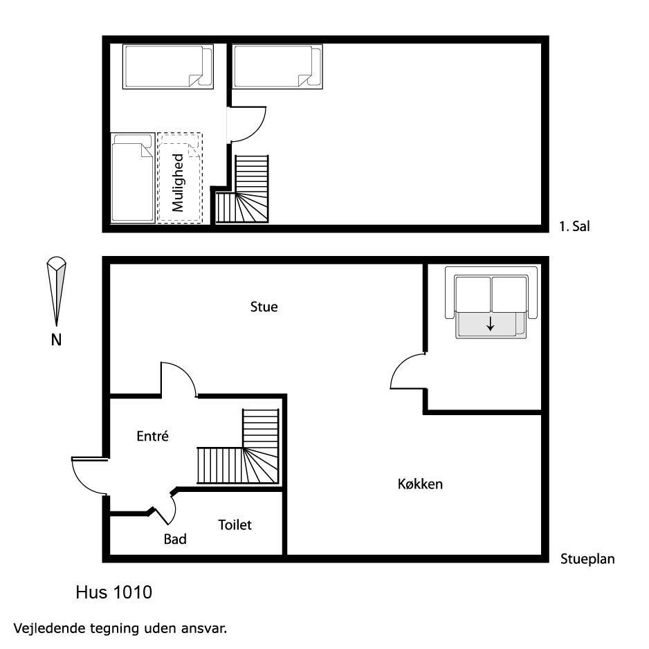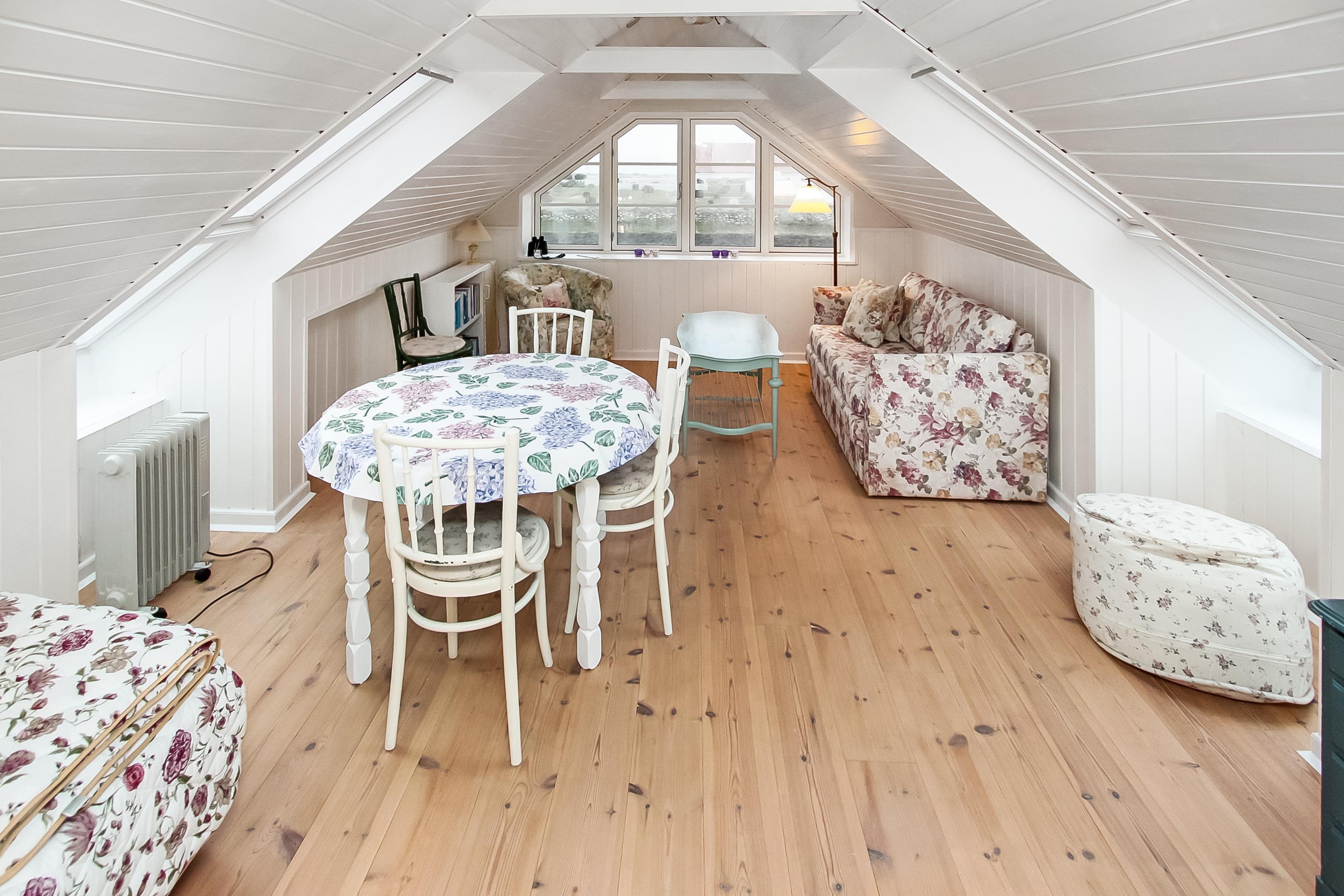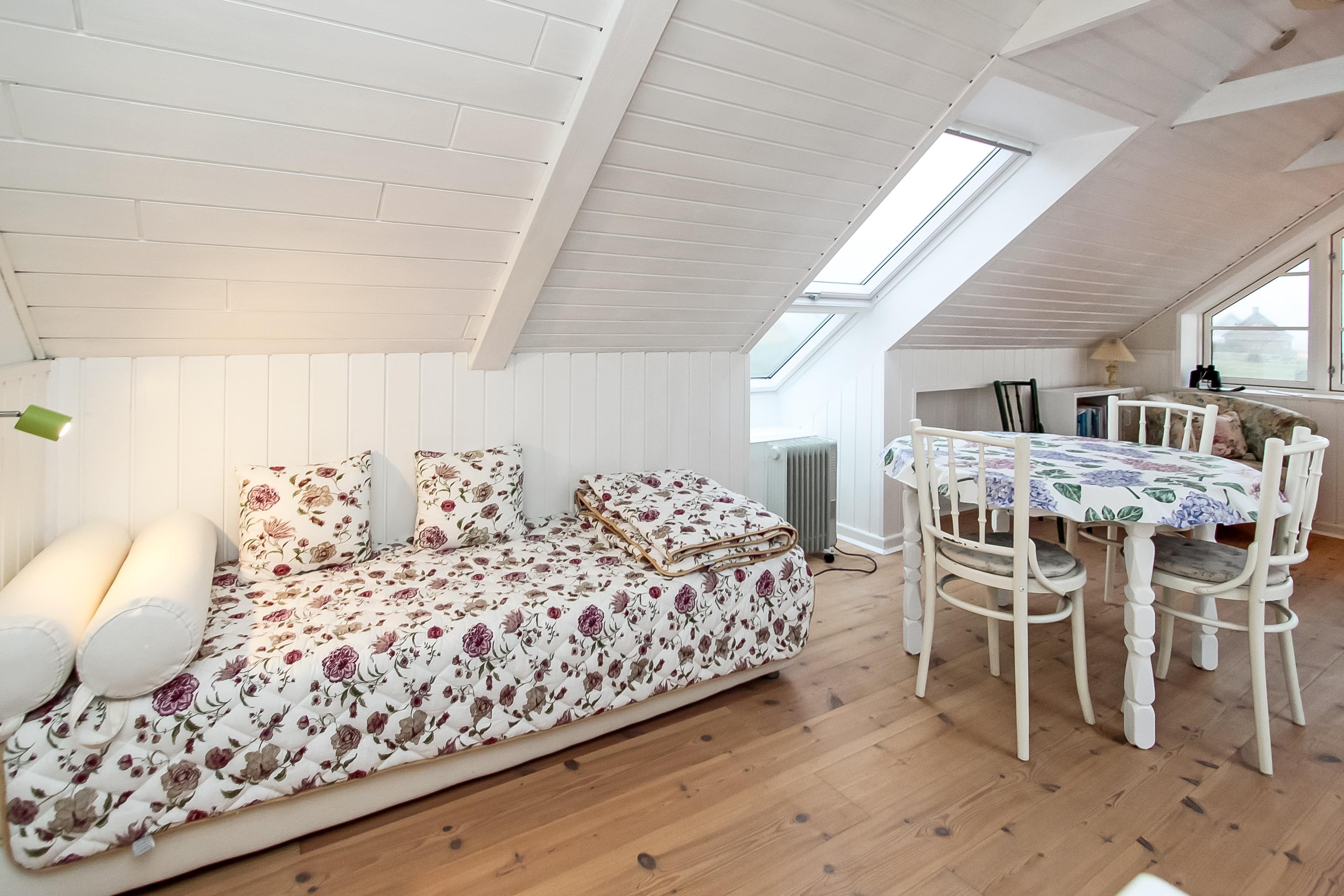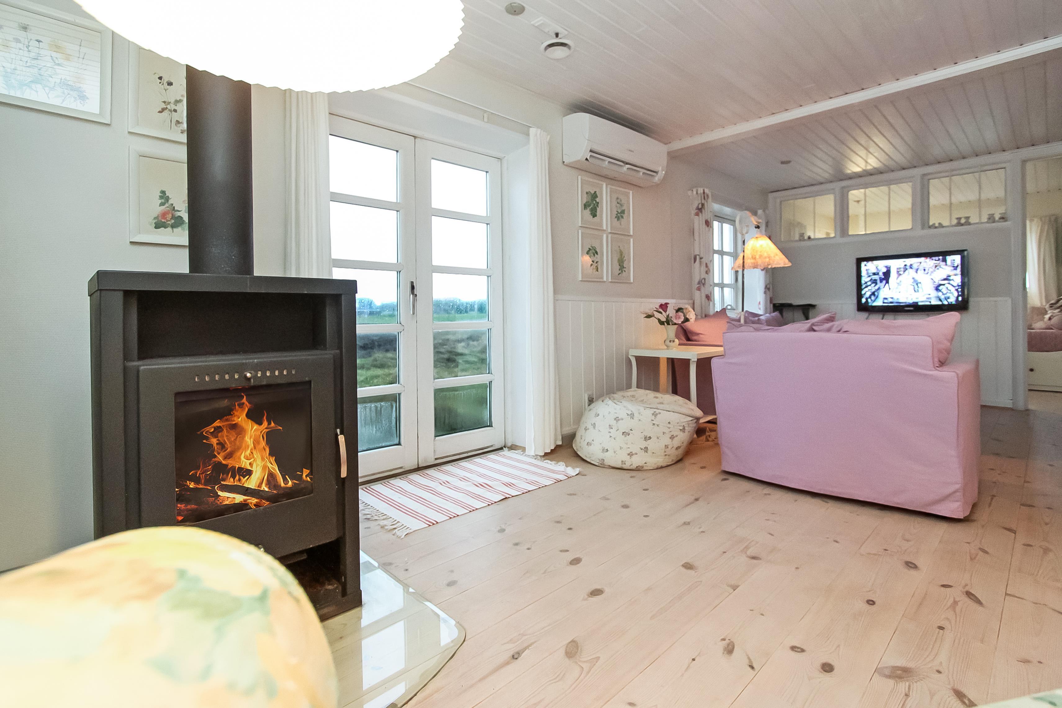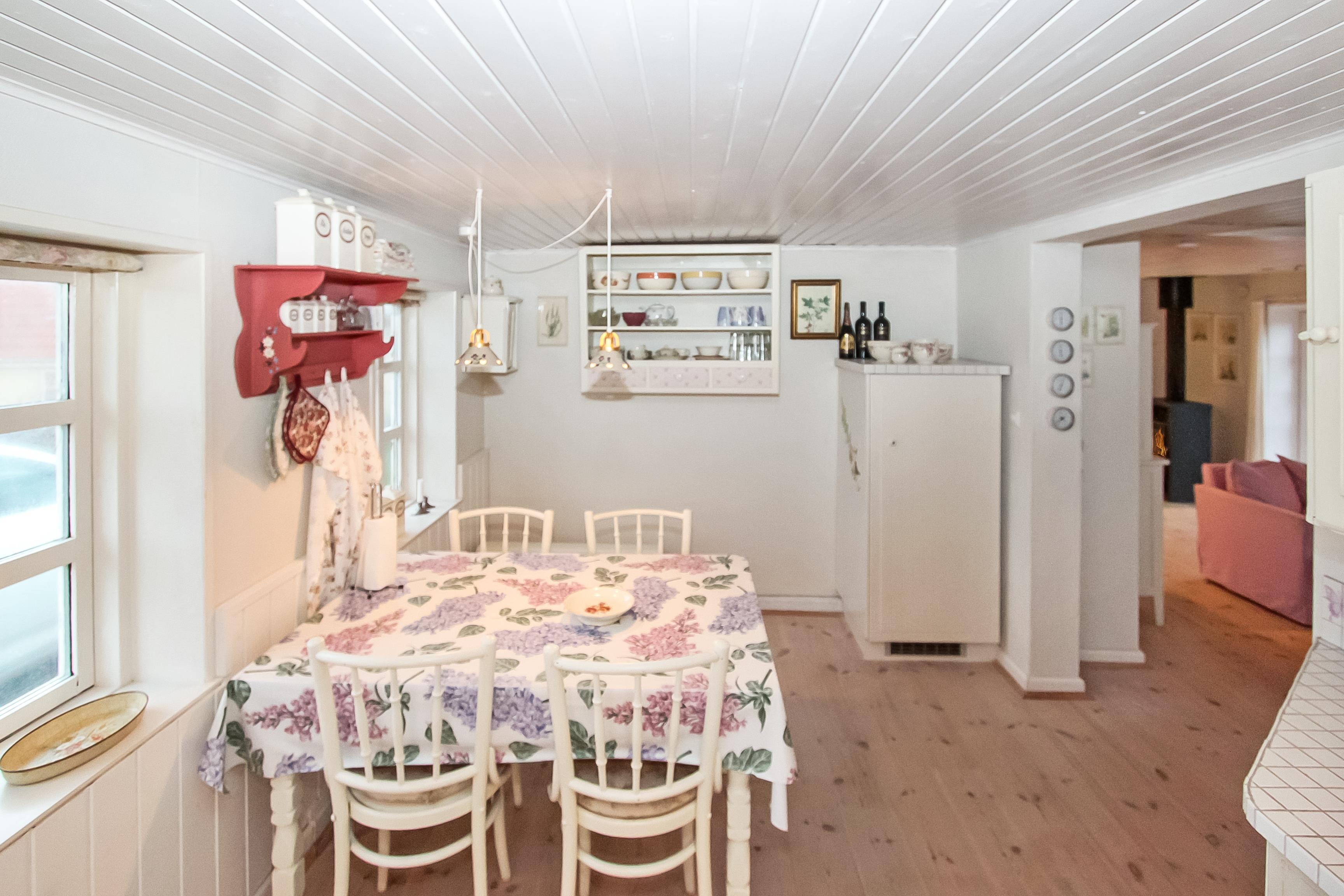Schönes 2-stöckiges Ferienhaus auf 110 m² mit 1 einem Schlafraum: (1DB). Ausserdem gibt es in Verbindung mit dem Wohnraum ein kleines Zimmer mit einer 1DB Schlafcouch. Parken Sie das Auto im Carport. Machen Sie die Tür auf zu dem kleinen Flur mit Waschmaschine und Gefriertruhe. Von hier gehen Sie in den gemütlichen Wohnraum mit Polstermöbeln, Fernseher mit dänischen, deutschen, norwegischen und schwedischen Programmen; es führt ein Zugang zum extra Zimmer mit der DB Schlafcouch. Kaminofen und Wärmepumpe sorgen für die schöne Wärme und extra ”hygge” nach einem Spaziergang in der Gegend. Offene und gut ausgestattete Landküche mit Esstisch, Gaskochplatten, eingebautem Ofen, Geschirrspüler, Mikrowelle und Kühlschrank. Die speziell angefertigte Küchentischplatte betont, dass hier für diesen Raum etwas extra gemacht worden ist. Kleines Badezimmer mit Toilette, Waschbecken, Dusche und Fliesenboden. 1. Stock: Schöner Treppenaufgang zum 1. Stock, wo es einen zusätzlichen Wohnraum mit Esstisch, Polstermöbeln und einem fantastischen Blick über die Nordseegegend und den Ferring See gibt . Nichtraucher-Haus. 2 Haustiere sind erlaubt.