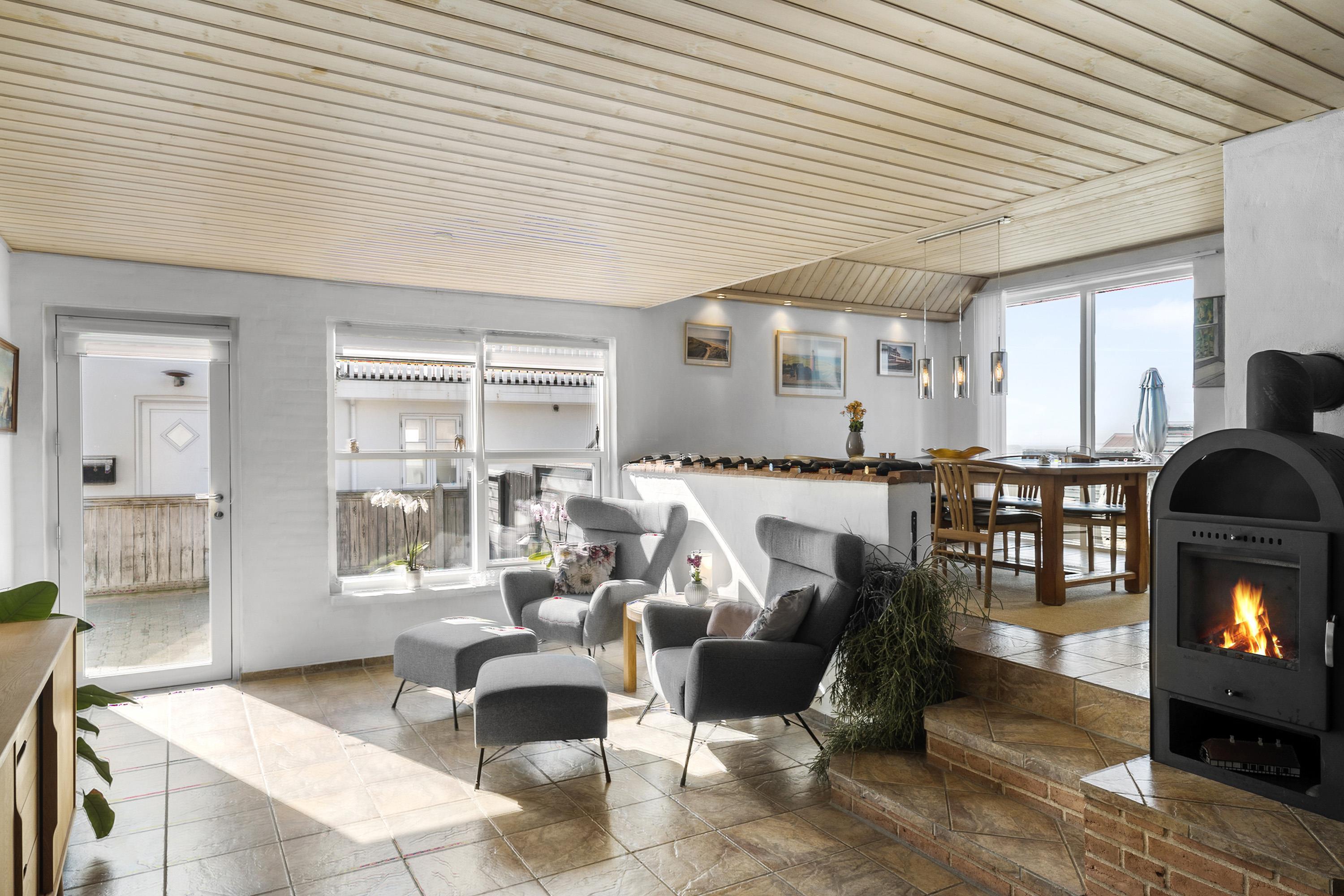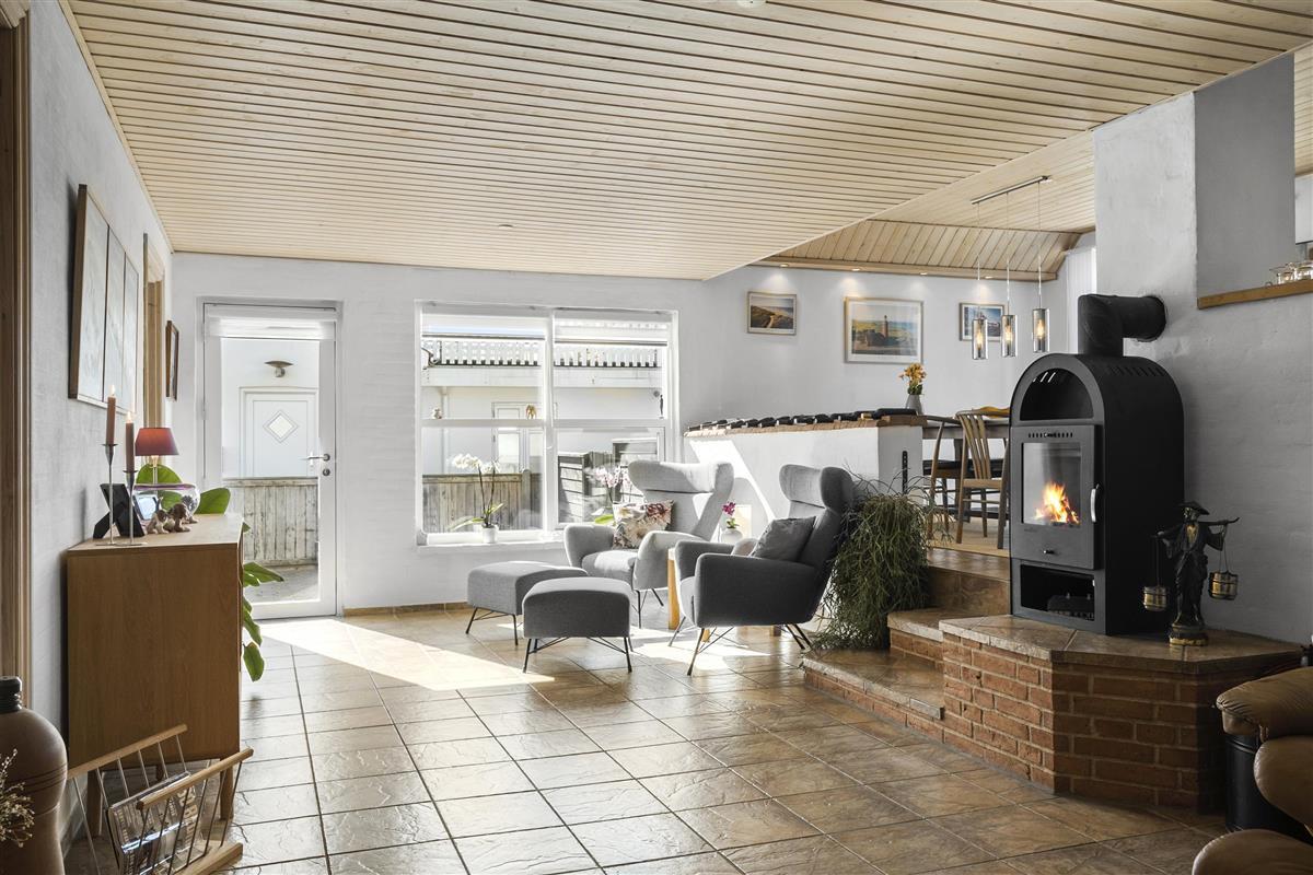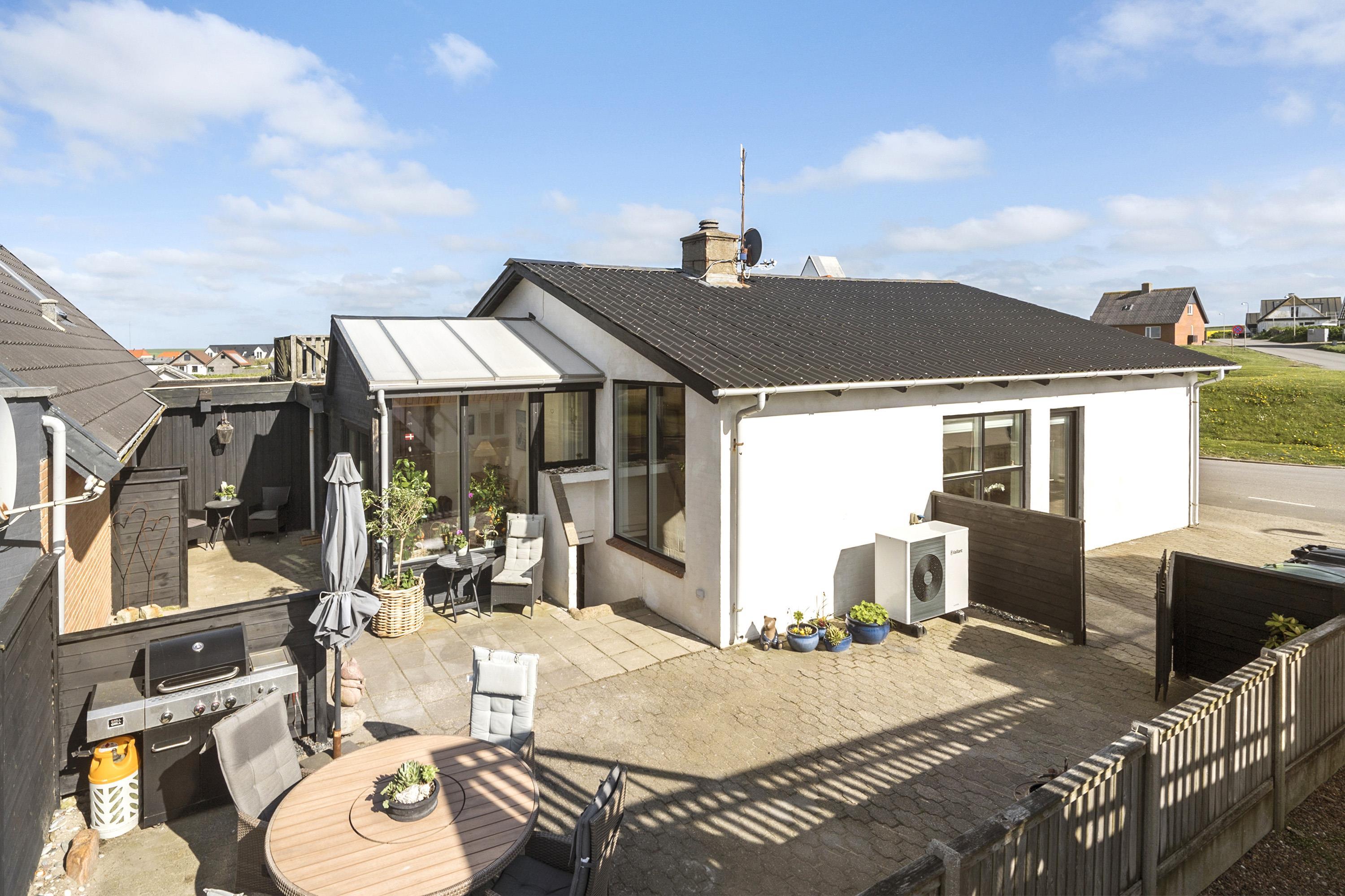Vom Wintergarten aus hat man Zugang zu einer schönen, umzäunten Terrasse im Innenhof mit Gartenmöbeln, Cafégarnitur und Kohlegrill. Das Haus liegt in der Nähe des Jens Søndergårds Museums und nicht weit vom Leuchtturm Bovbjerg. Genießen Sie einen fantastischen Spaziergang oder laufen Sie auf dem Weg, der direkt am Rande des Bovbjerg Klint mit Blick auf die Nordsee angelegt ist. Erleben Sie, dass die Nordsee jeden Tag eine neue Geschichte erzählt. Besuchen Sie die vielen Attraktionen und Erlebnisse, die Sie innerhalb von maximal 30 Minuten erreichen. Oder besuchen Sie das Fischerstädtchen Thyborøn oder das schöne Handelsstädtchen Lemvig mit vielen Fachgeschäften. Das perfekte Haus für maximal 4 Personen in einer einzigartigen Moränenlandschaft mit vielen Hügeln, die Abwechslung und Romantik bietet.