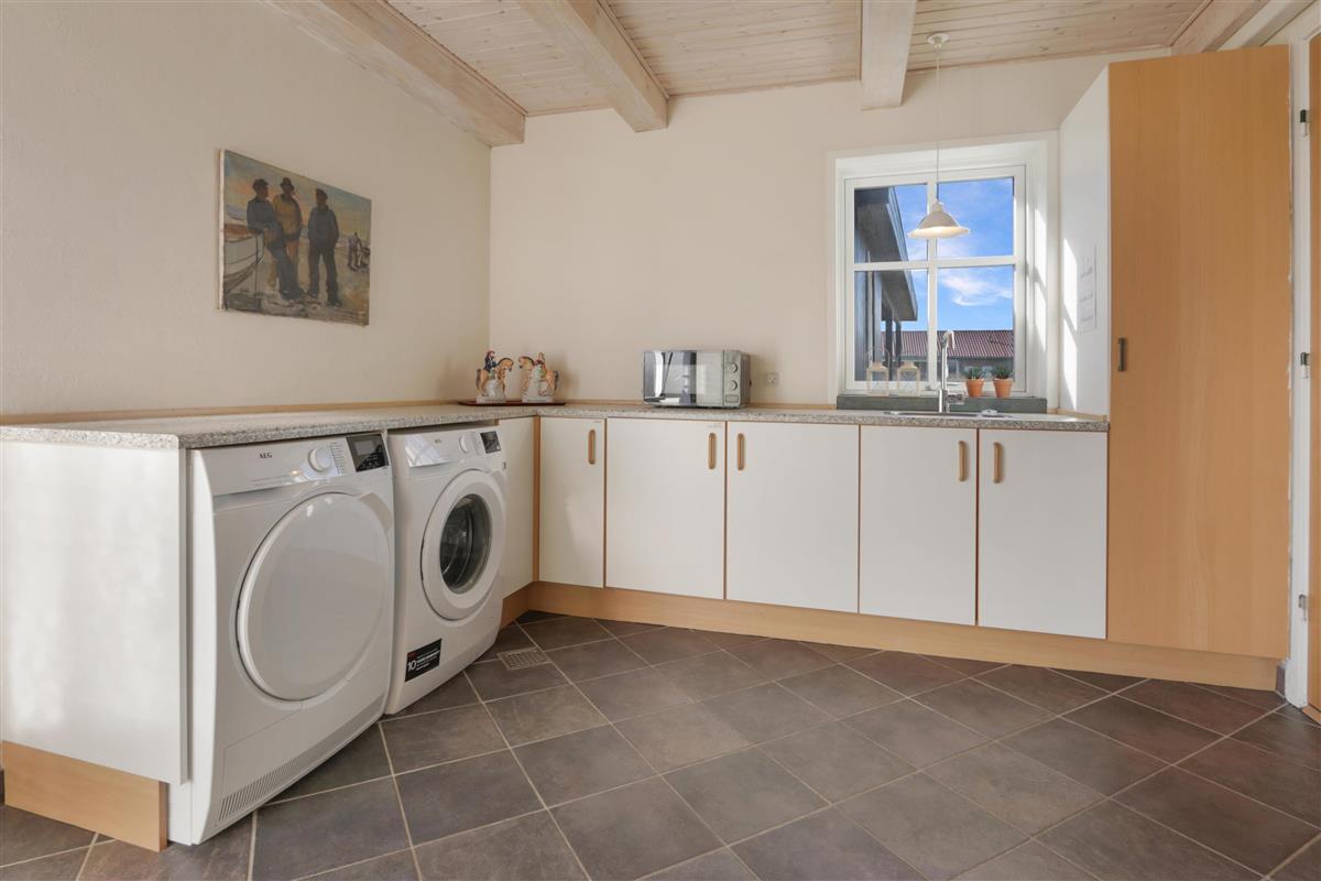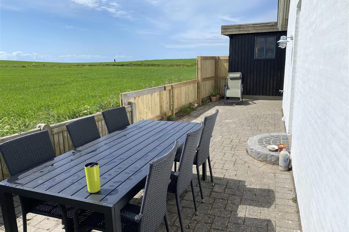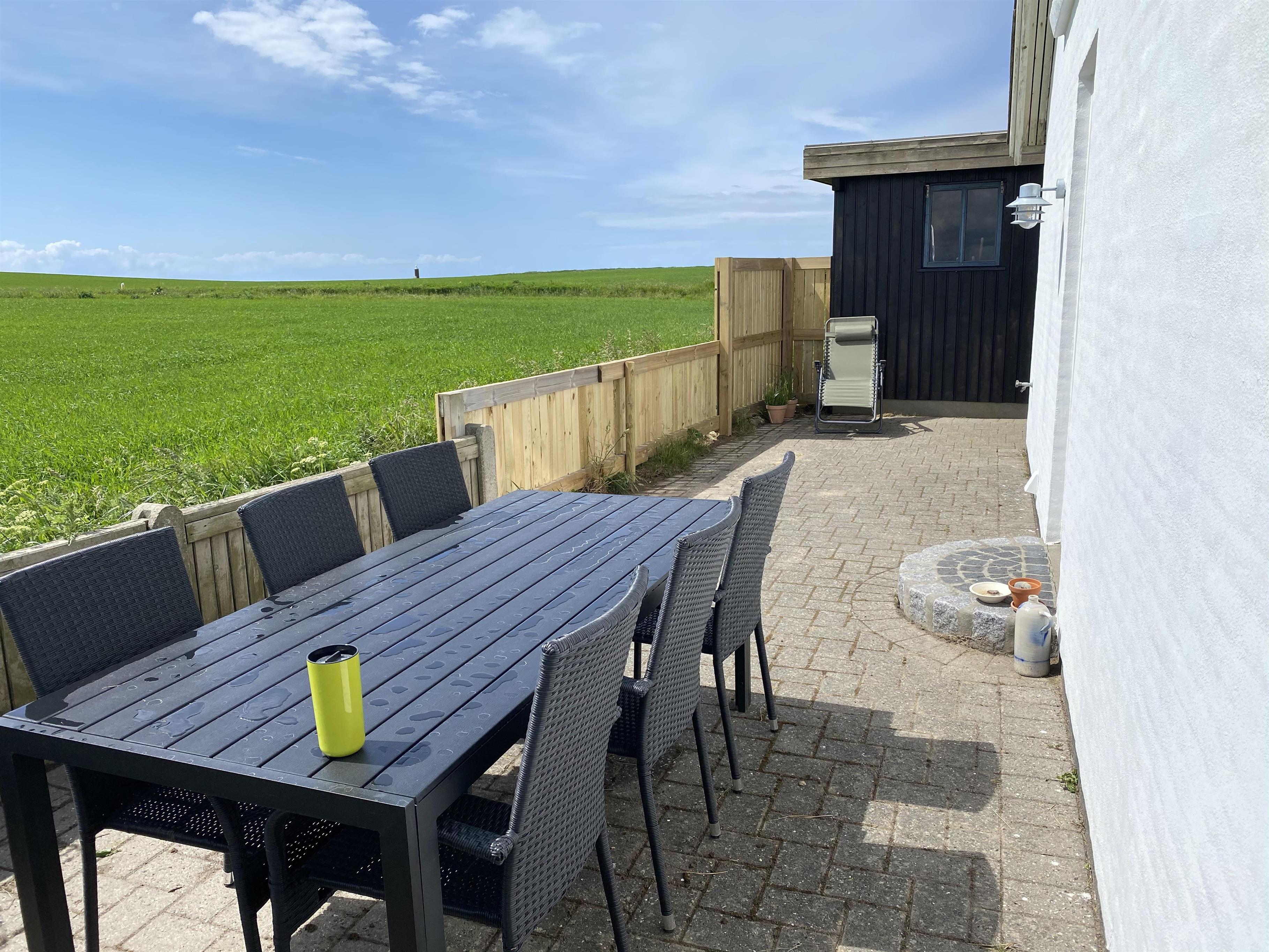 Dieses gepflegte eingezäunte Eckgrundstück ist etwa 967 qm groß. Vom Flur haben Sie Ausgang zu einer prachtvollen eingezäunten Terrasse/Sonnenhof mit Gartenmöbeln, Sonnenliegen und Grill. Perfekt für kleinere Kinder und ein Haustier. Beim Haus gibt es auch einen Carport. Ein gepflegtes und gemütliches Haus. Hier gibt es gute Möglichkeiten einen erholsamen und entspannten Urlaub in einer einmaligen Umgebung dicht an Bovbjerg Klingt, Nordsee, Ferringsee und Jens Søndergaards Museum zu haben. Innerhalb von 15-45 Minuten können Sie Aktivitäten und Einkaufsmöglichkeiten in Thyborøn oder Lemvig erreichen.