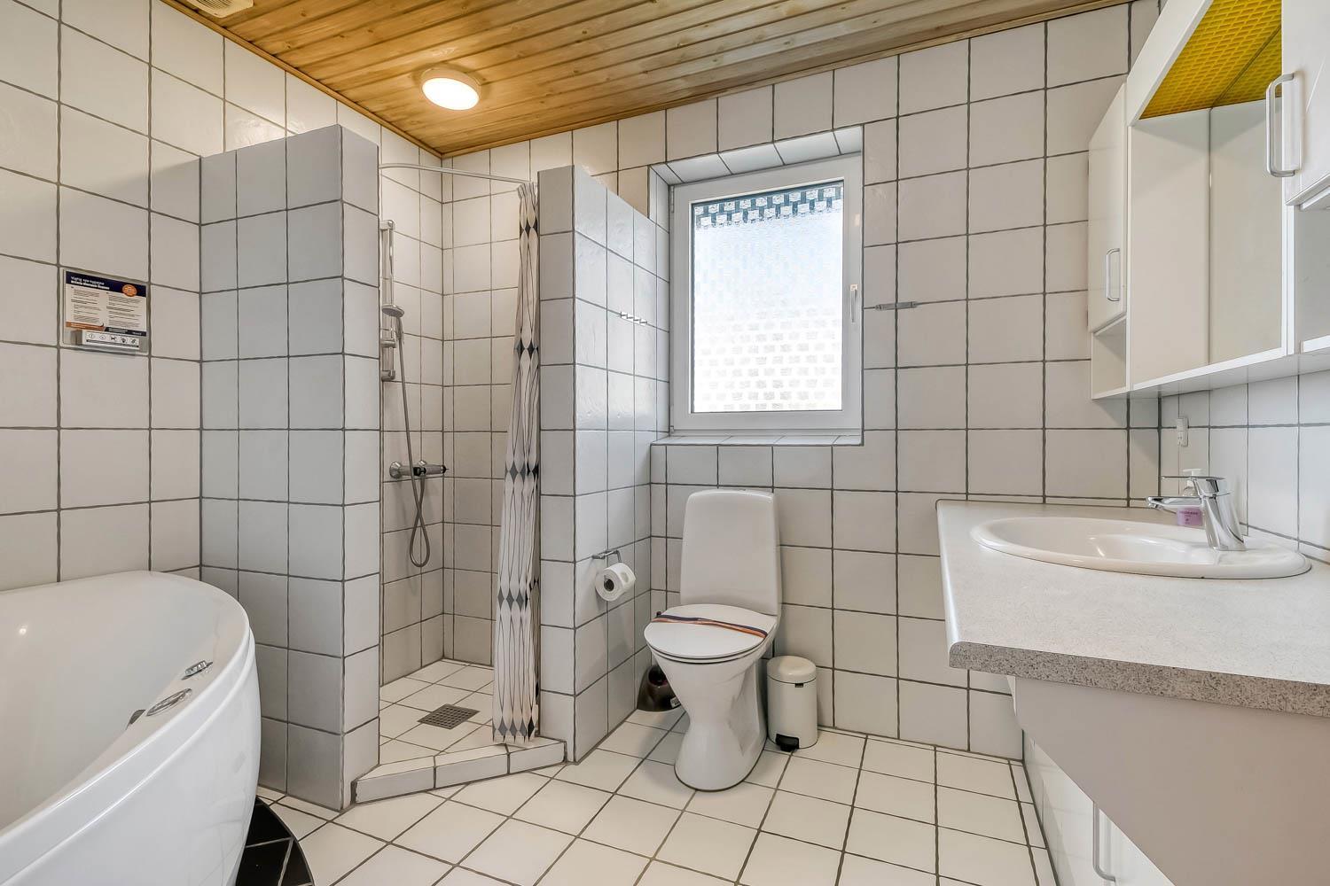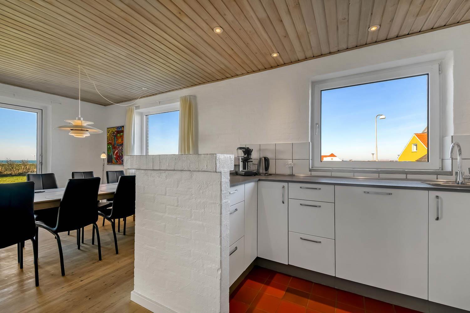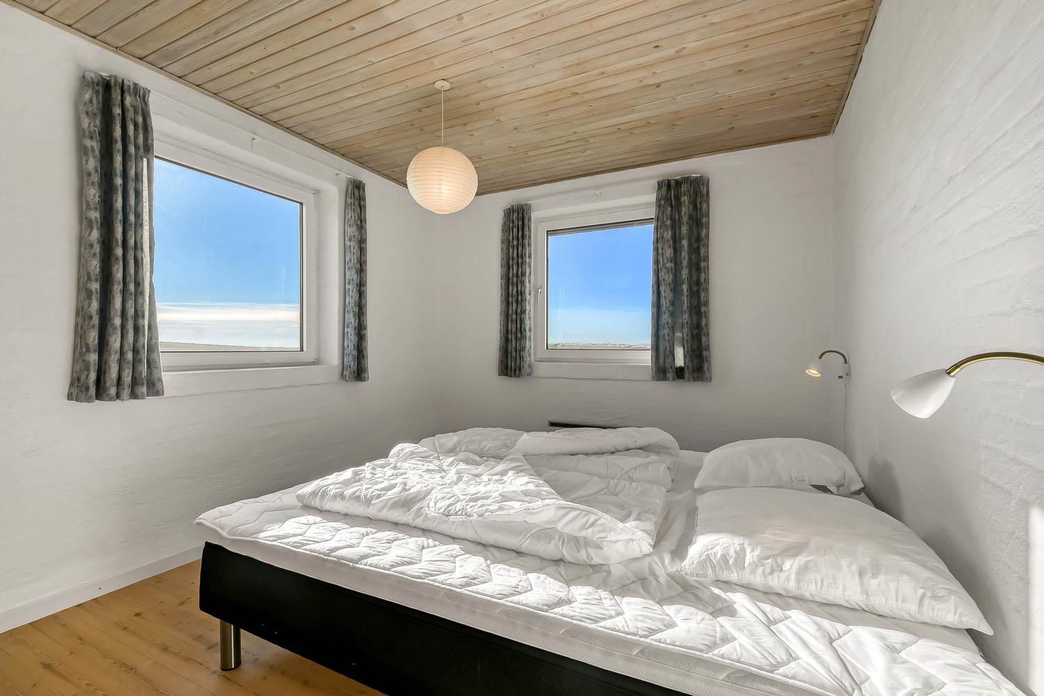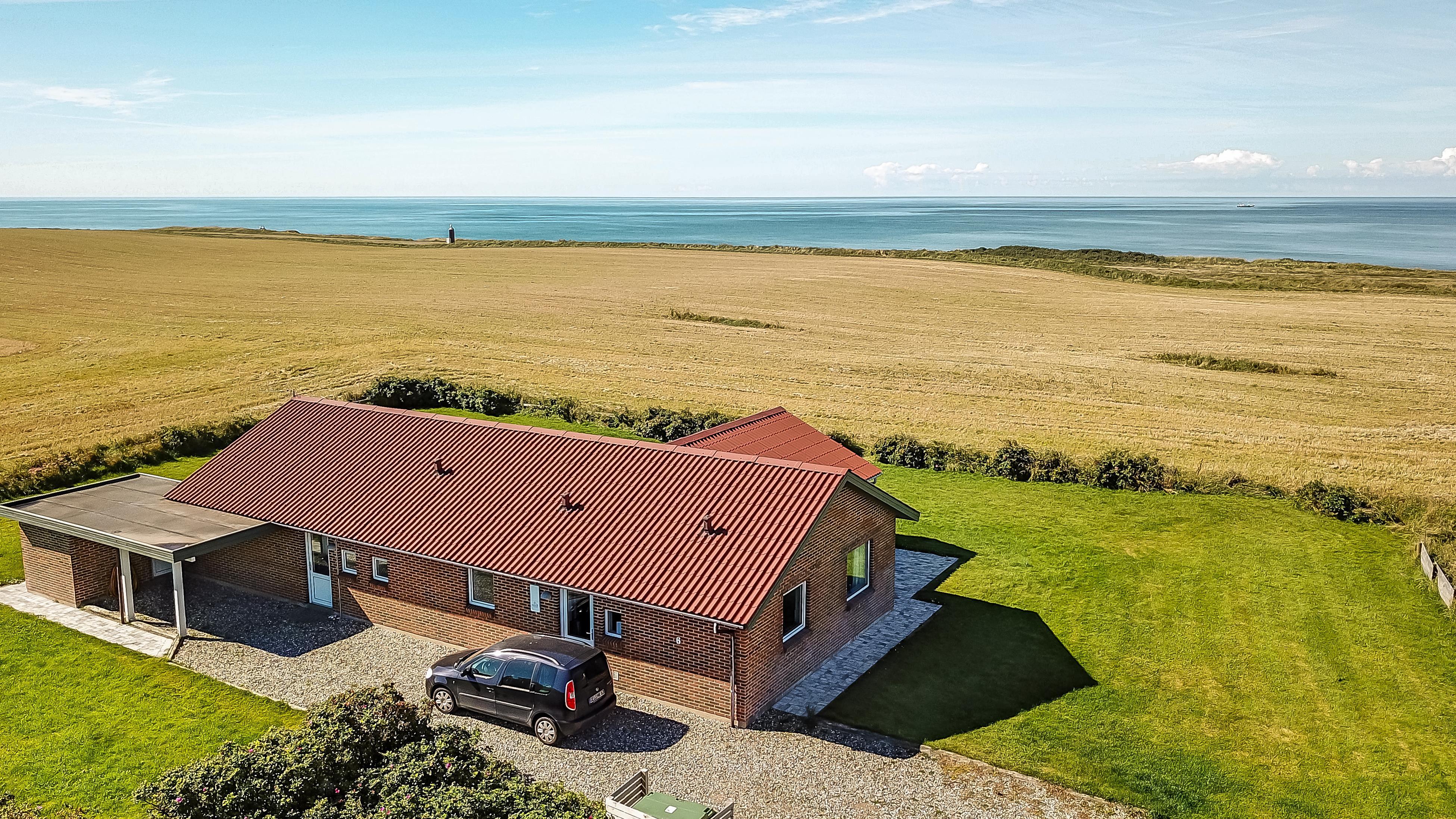 Nachdem Sie den Schlüssel im Büro in Vrist abgeholt haben, beginnt eine schöne Tour über kleine kurvenreiche Strassen nach Bovbjerg. Schon von weitem können Sie den Leuchtturm Bovbjerg sehen und in der wunderschönen hügeligen Landschaft haben Sie keinen Zweifel daran, dass Sie sich etwas Einzigartigem nähern. Parken Sie das Auto im Carport und räumen Sie es aus. Ein schöner Eingang heisst Sie wilkommen und schon hier haben Sie keine Zweifel daran, dass dieses Haus und seine Lage etwas ganz Besonderes sind. Das Haus ist 150 m² groß und hat 4 grosse Schlafräume: 1DB + 1DB + 1DB + 2B. Es gibt gute Schrankplätze in allen Schlafräumen. 2 von den Schlafräumen haben einen Blick über die Nordsee. Betreten Sie das gemütliche Wohnzimmer, das mit brandneuen und guten Möbeln ausgestattet ist. Es gibt viele Sitzgelegenheiten in den schönen Ledermöbeln, Smart-TV mit dänischen und deutschen Programmen, Radio und Streaming-Möglichkeiten. Ein schön gestalteter Esstisch mit Sitzgelegenheiten für alle Personen und ein einzigartiger Panoramablick auf die Nordsee runden das Erlebnis ab. Eine Wärmepumpe sorgt dafür, dass die Heizkosten zu jeder Jahreszeit günstig sind. Offene, gut ausgestattete Küchenecke mit Spülmaschine, Mikrowelle, Herd mit Cerankochfeld und Kühlschrank mit Gefrierfach. Geniessen Sie ein Glas Rotwein, wenn Sie in dieser neuen Küche kochen. Das Haus verfügt über praktische Holzböden im Wohn- und Schlafbereich. Grosses Badezimmer mit Fussbodenheizung, WC, Waschbecken, Dusche und Whirlpool für 2 Personen. Zusätzliches Badezimmer mit Fussbodenheizung, Toilette, Waschbecken und Dusche. Flur mit Waschmaschine und Trockner und extra Platz zum Lagern. Nichtraucher-Haus. Max. 1 Haustier ist erlaubt. Wenn Sie ein Elektroauto oder einen Plug-in-Hybrid haben, verfügt das Haus über eine CEE-Ladesteckdose.