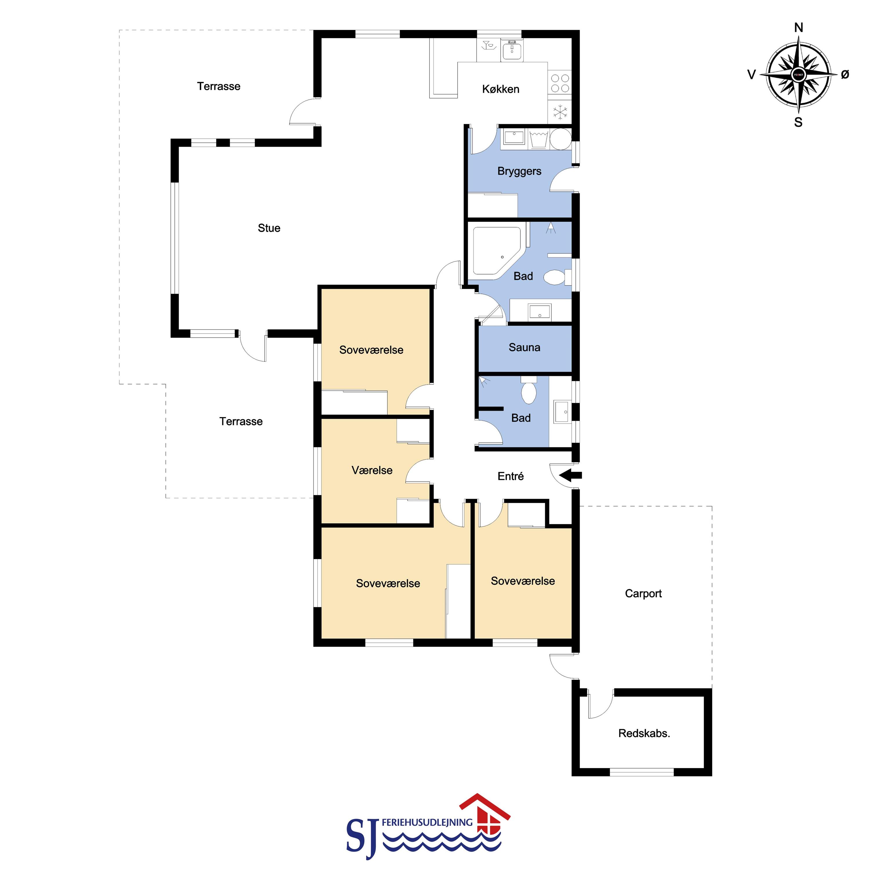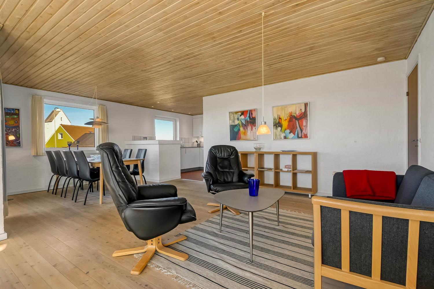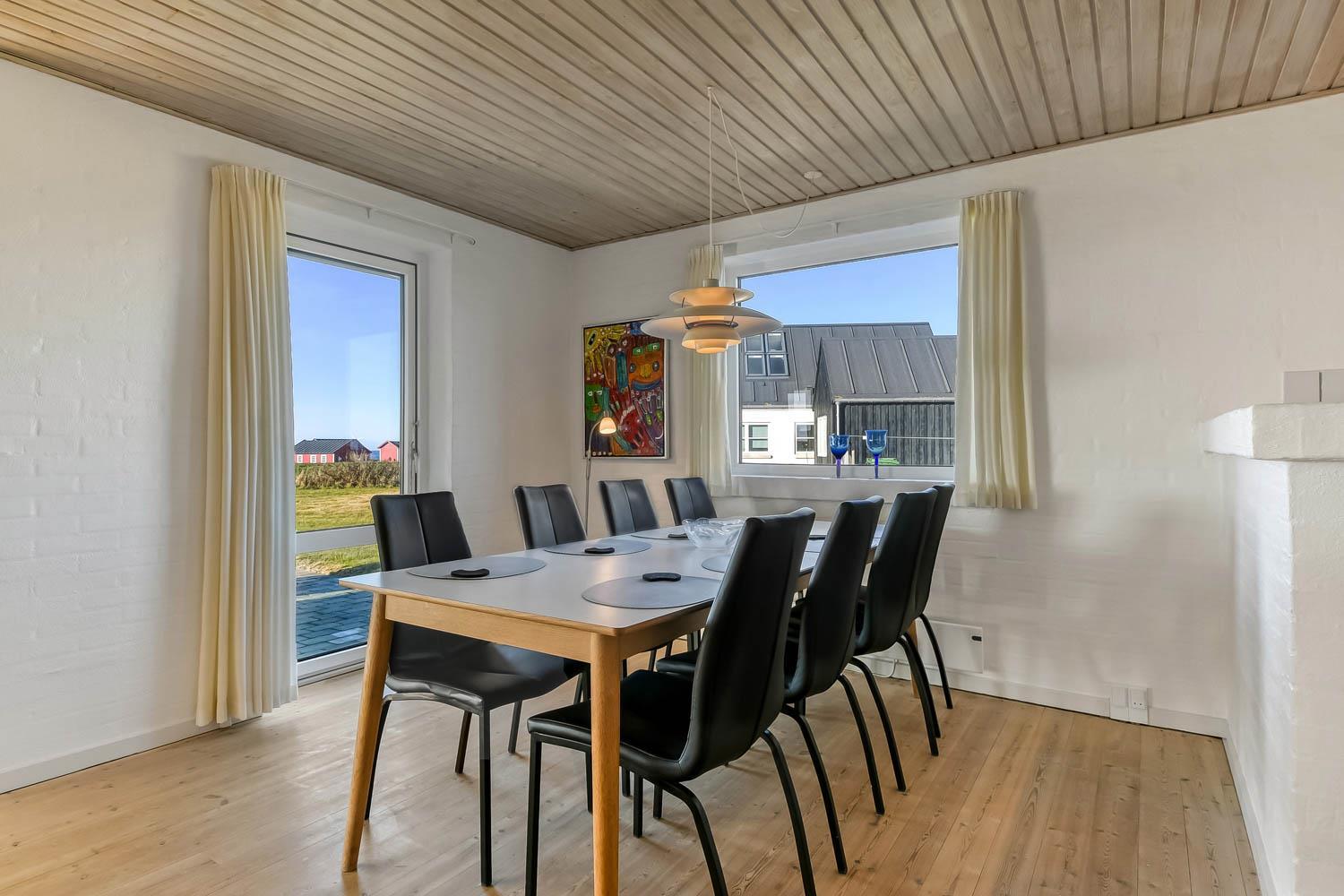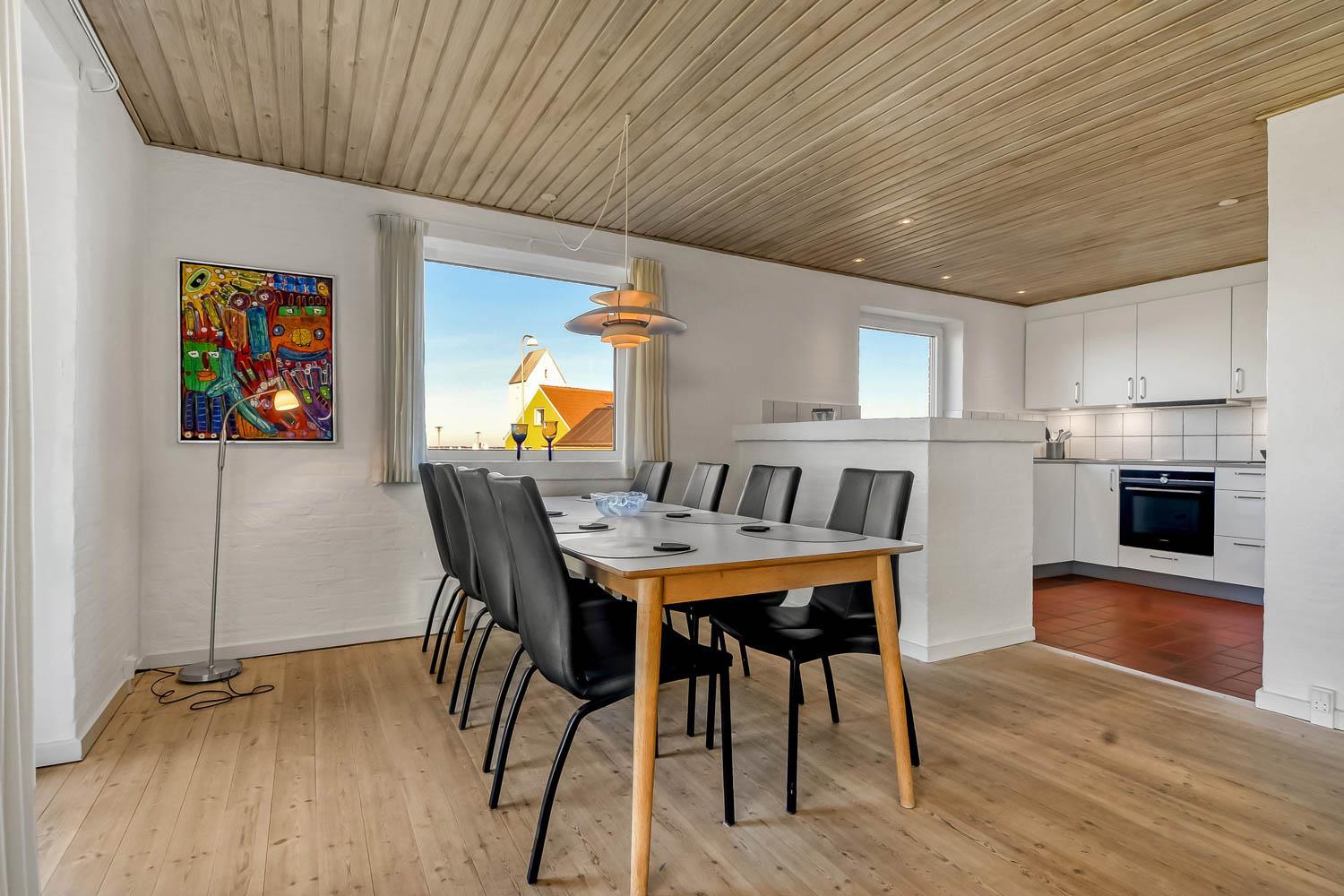 Nachdem Sie den Schlüssel im Büro in Vrist abgeholt haben, beginnt eine schöne Tour über kleine kurvenreiche Strassen nach Bovbjerg. Schon von weitem können Sie den Leuchtturm Bovbjerg sehen und in der wunderschönen hügeligen Landschaft haben Sie keinen Zweifel daran, dass Sie sich etwas Einzigartigem nähern. Parken Sie das Auto im Carport und räumen Sie es aus. Ein schöner Eingang heisst Sie wilkommen und schon hier haben Sie keine Zweifel daran, dass dieses Haus und seine Lage etwas ganz Besonderes sind. Das Haus ist 150 m² groß und hat 4 grosse Schlafräume: 1DB + 1DB + 1DB + 2B. Es gibt gute Schrankplätze in allen Schlafräumen. 2 von den Schlafräumen haben einen Blick über die Nordsee. Betreten Sie das gemütliche Wohnzimmer, das mit brandneuen und guten Möbeln ausgestattet ist. Es gibt viele Sitzgelegenheiten in den schönen Ledermöbeln, Smart-TV mit dänischen und deutschen Programmen, Radio und Streaming-Möglichkeiten. Ein schön gestalteter Esstisch mit Sitzgelegenheiten für alle Personen und ein einzigartiger Panoramablick auf die Nordsee runden das Erlebnis ab. Eine Wärmepumpe sorgt dafür, dass die Heizkosten zu jeder Jahreszeit günstig sind. Offene, gut ausgestattete Küchenecke mit Spülmaschine, Mikrowelle, Herd mit Cerankochfeld und Kühlschrank mit Gefrierfach. Geniessen Sie ein Glas Rotwein, wenn Sie in dieser neuen Küche kochen. Das Haus verfügt über praktische Holzböden im Wohn- und Schlafbereich. Grosses Badezimmer mit Fussbodenheizung, WC, Waschbecken, Dusche und Whirlpool für 2 Personen. Zusätzliches Badezimmer mit Fussbodenheizung, Toilette, Waschbecken und Dusche. Flur mit Waschmaschine und Trockner und extra Platz zum Lagern. Nichtraucher-Haus. Max. 1 Haustier ist erlaubt. Wenn Sie ein Elektroauto oder einen Plug-in-Hybrid haben, verfügt das Haus über eine CEE-Ladesteckdose.