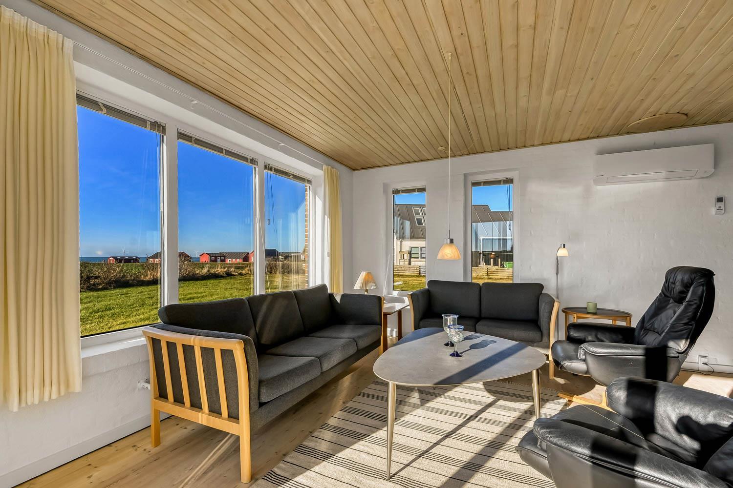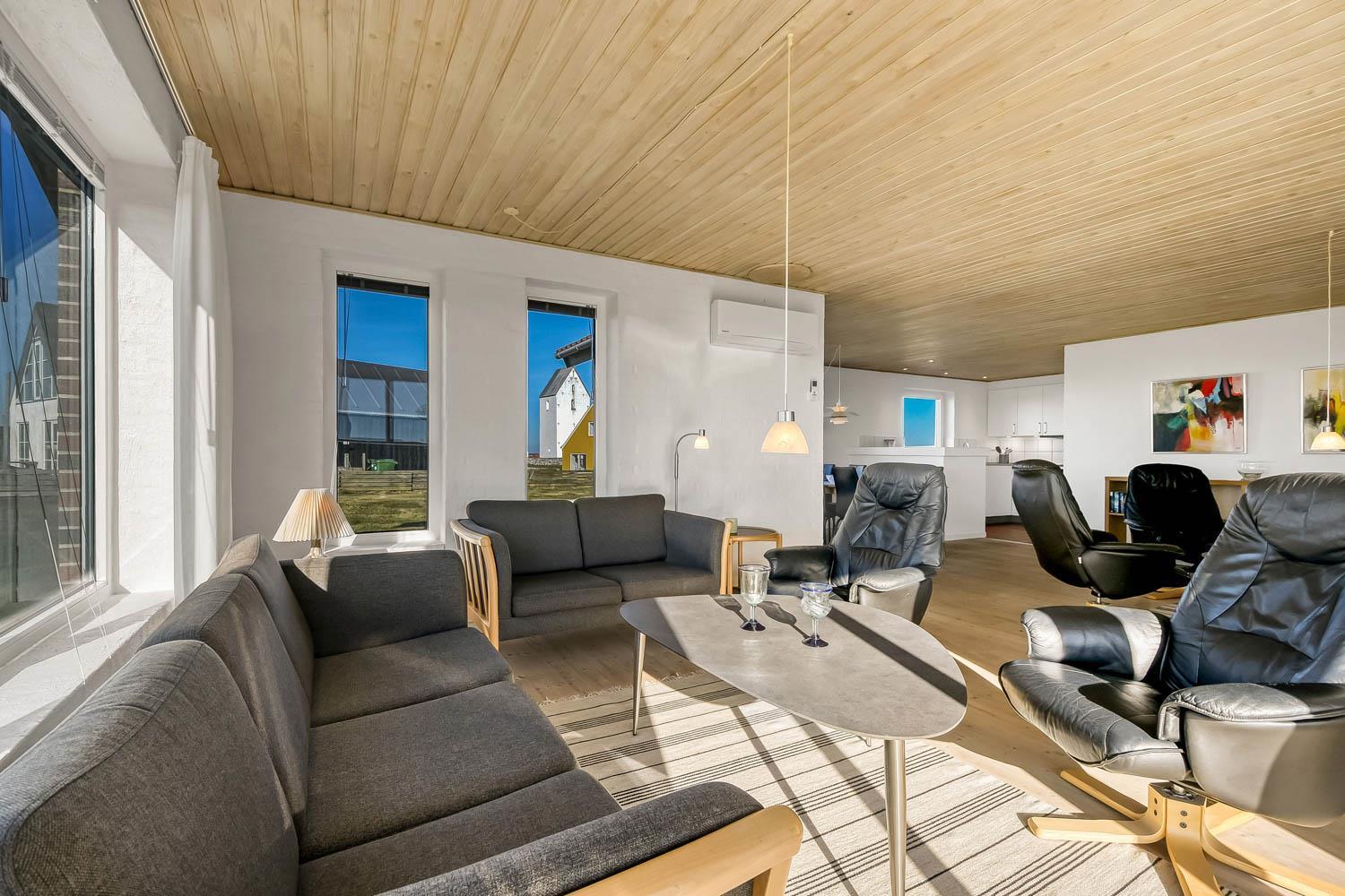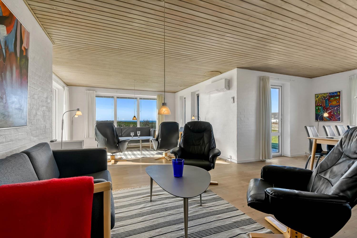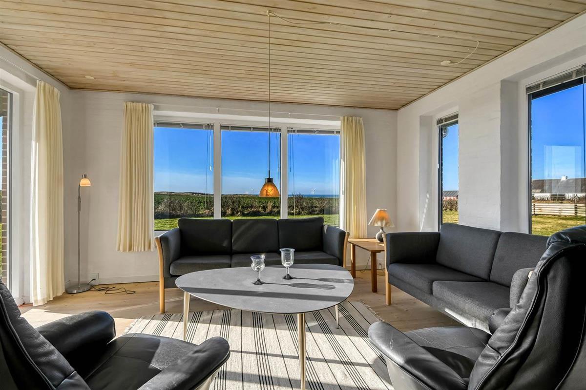Total neurenoviertes, geräumiges und fantastisch gelegenes Steinferienhaus mit Panorama Blick über die Nordsee. Das Haus liegt dicht an der Kirche in Bovbjerg und auch dicht an Bovbjerg Fyr. Freies WLAN.