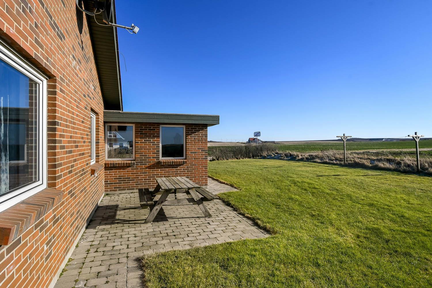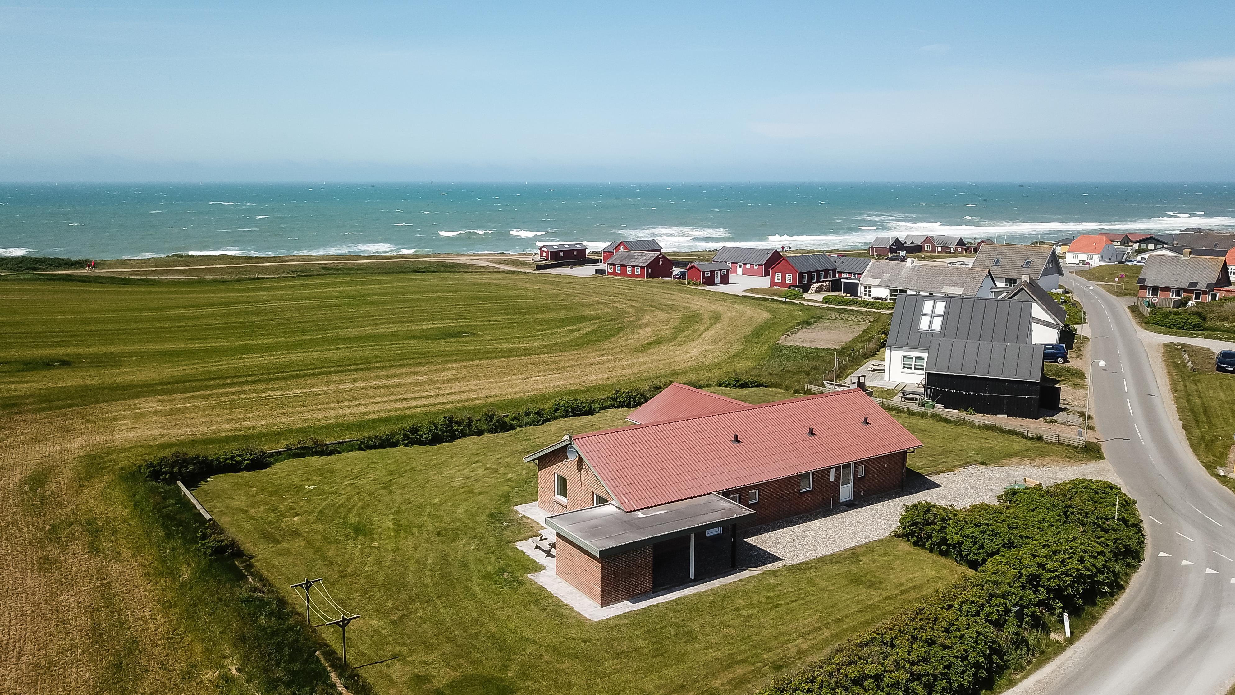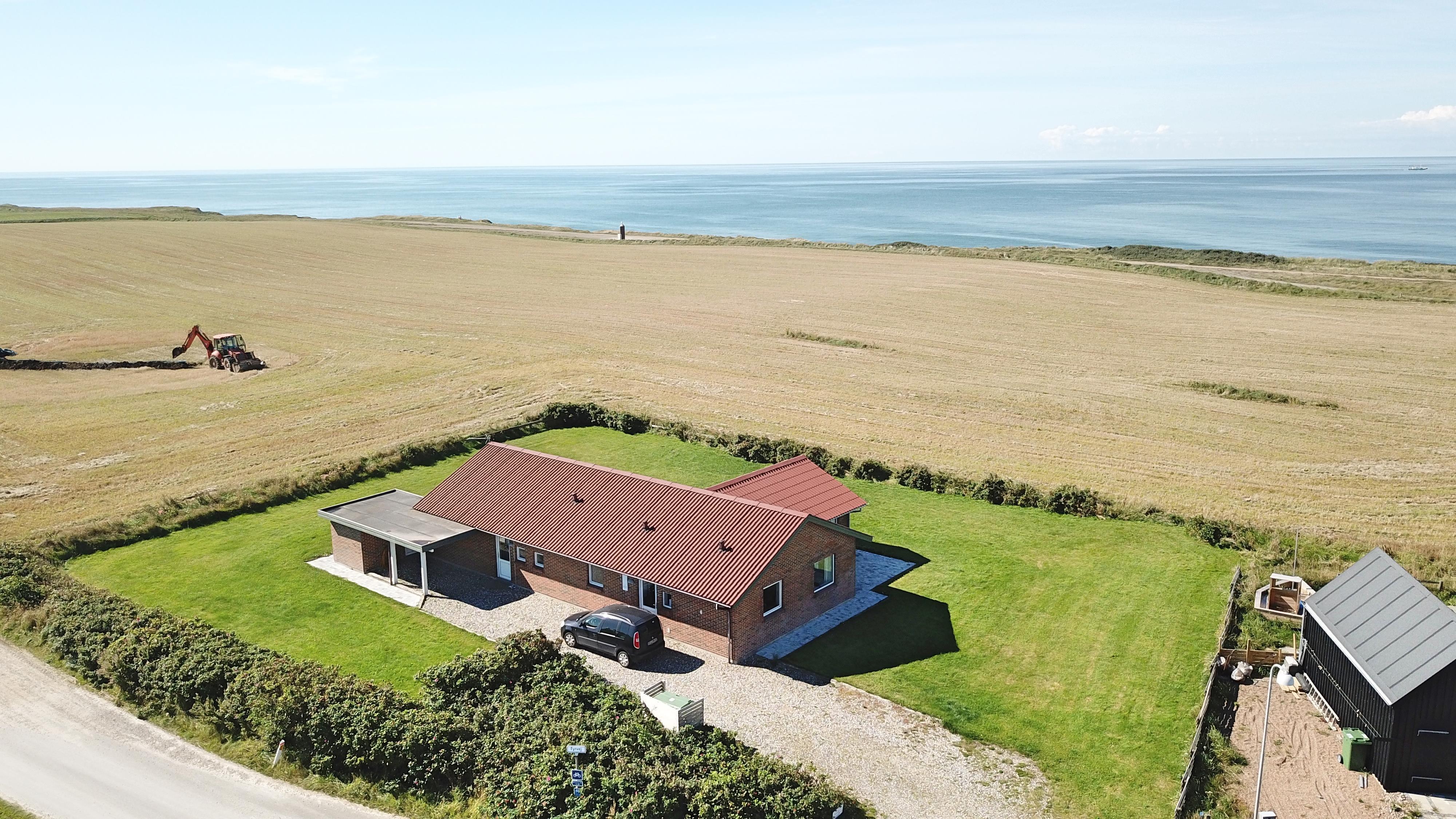 Das Grundstück ist etwa 1.400 m² gross. Es gibt eine schöne Terrasse mit Gartenmöbeln, Sonnenliegen und Grill. Von hier haben Sie einen einmaligen Blick über die Nordsee, die nur 125 m vom Haus entfernt ist. Hinter dem Haus läuft der Kiesweg zum Bovbjerg Fyr und ganz aussen beim Bovbjerg Klint gibt es einen schönen Weg direkt am Wasser, wo man laufen oder Fahrrad fahren kann. Ein fantastisches, einmaliges und neurenoviertes ganzjähriges Haus, wo Paare oder Familien bis zu 8 Personen die Möglichkeit haben, einen erholsamen Urlaub in einzigartiger Umgebung dicht an Bovbjerg Klint, der Nordsee, dem Ferring See und Jens Søndergårds Museum zu verbringen. Innerhalb von 30-45 Minuten sind mehr Aktivitäten und Einkaufsmöglichkeiten erreichbar.