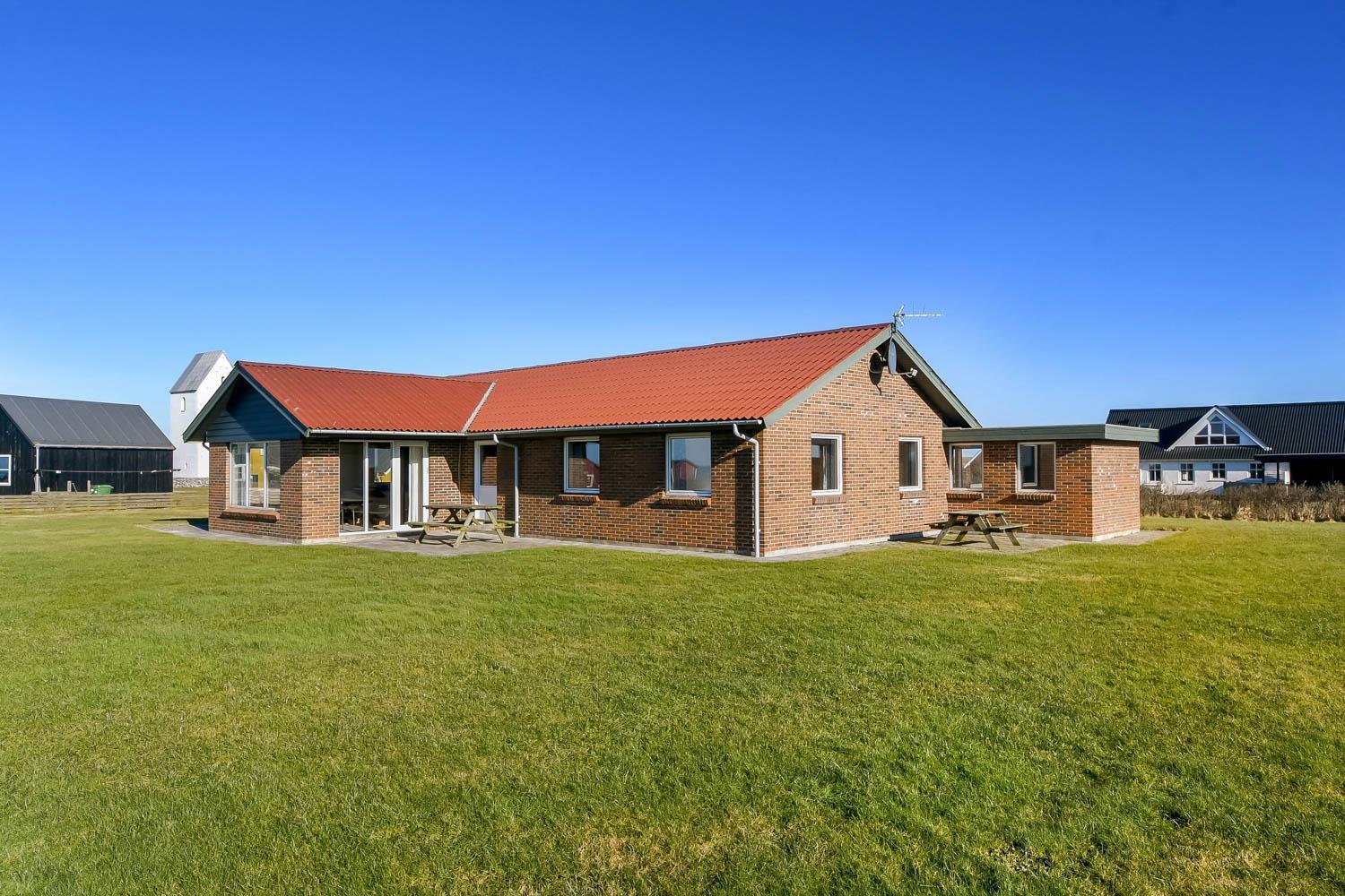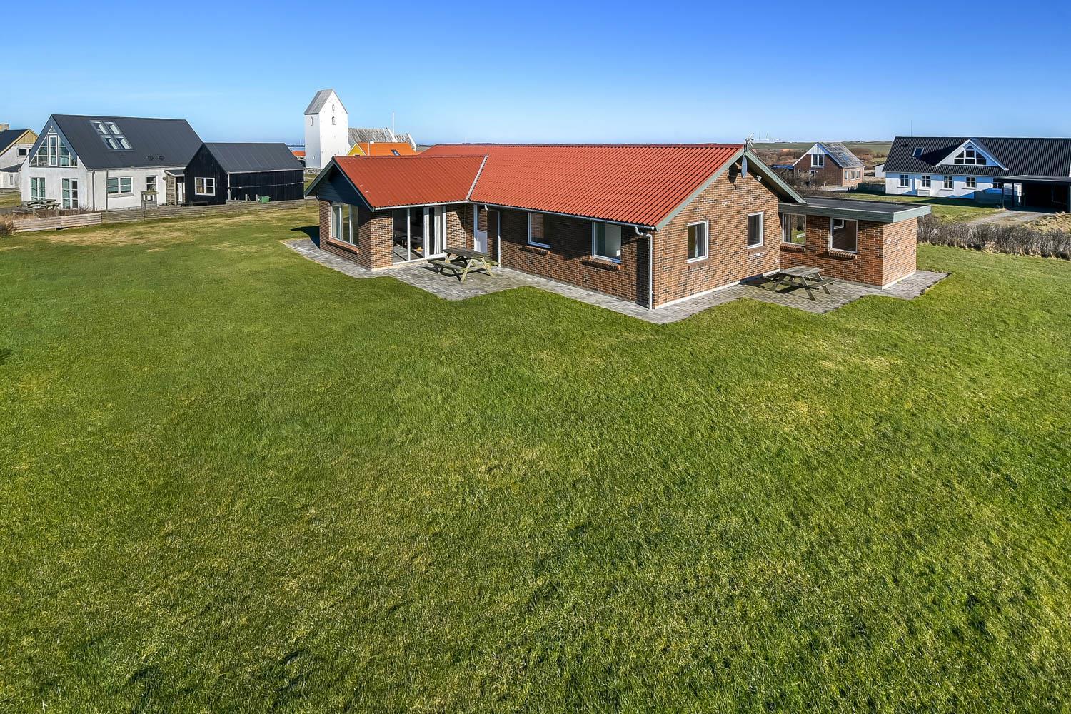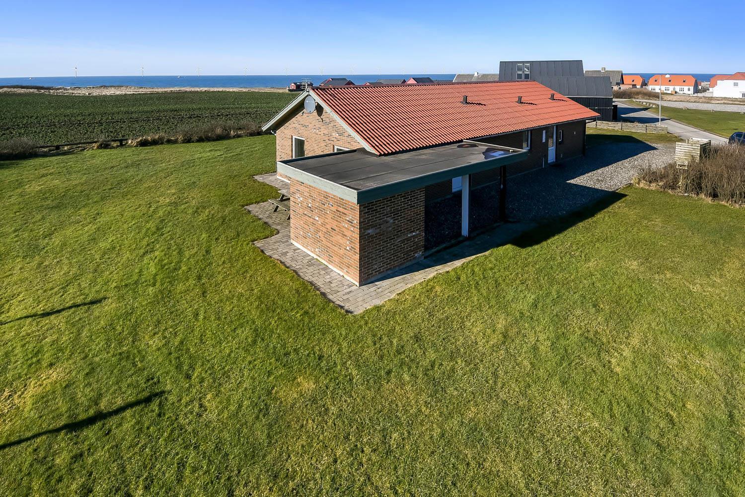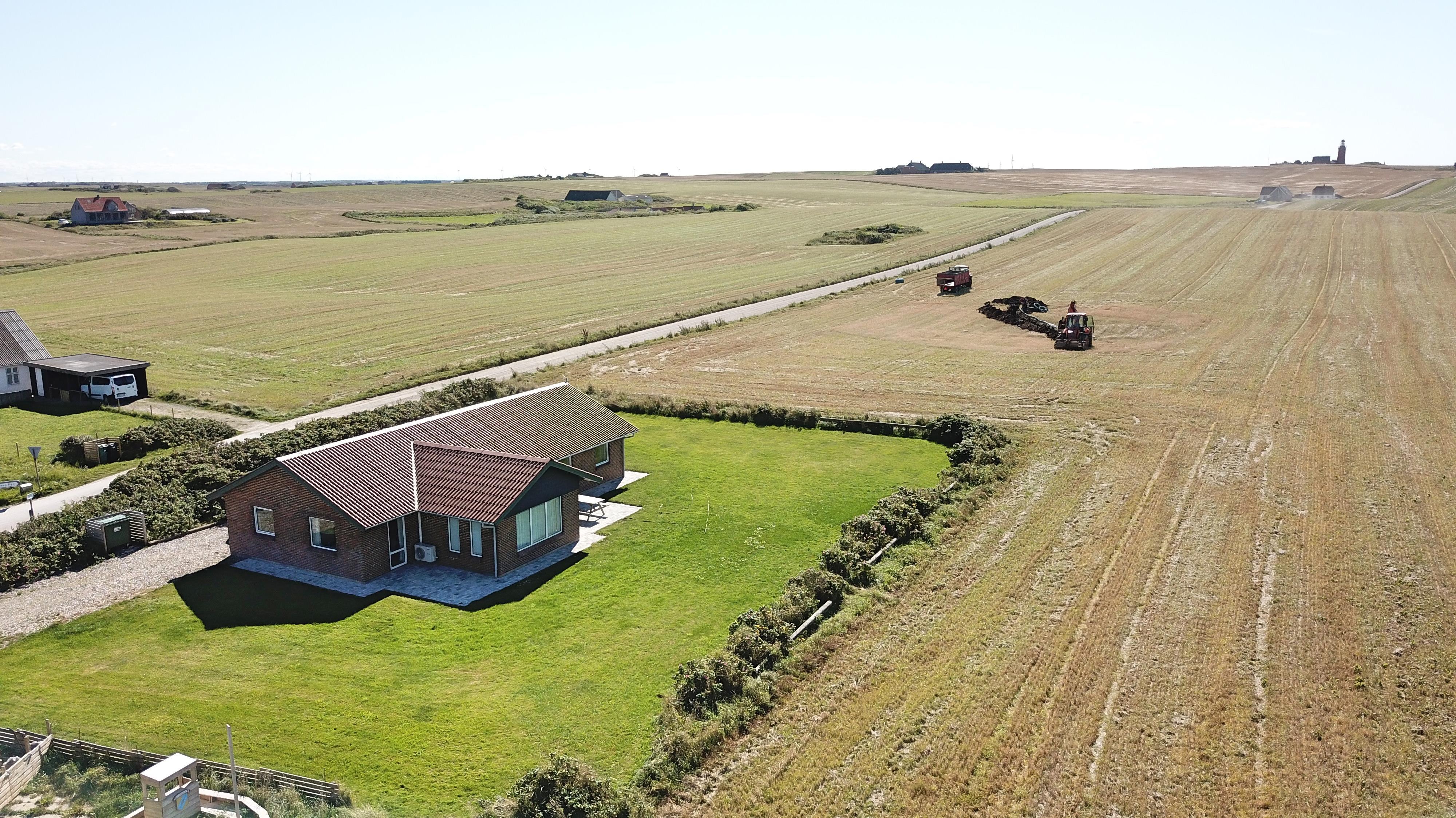 Das Grundstück ist etwa 1.400 m² gross. Es gibt eine schöne Terrasse mit Gartenmöbeln, Sonnenliegen und Grill. Von hier haben Sie einen einmaligen Blick über die Nordsee, die nur 125 m vom Haus entfernt ist. Hinter dem Haus läuft der Kiesweg zum Bovbjerg Fyr und ganz aussen beim Bovbjerg Klint gibt es einen schönen Weg direkt am Wasser, wo man laufen oder Fahrrad fahren kann. Ein fantastisches, einmaliges und neurenoviertes ganzjähriges Haus, wo Paare oder Familien bis zu 8 Personen die Möglichkeit haben, einen erholsamen Urlaub in einzigartiger Umgebung dicht an Bovbjerg Klint, der Nordsee, dem Ferring See und Jens Søndergårds Museum zu verbringen. Innerhalb von 30-45 Minuten sind mehr Aktivitäten und Einkaufsmöglichkeiten erreichbar.