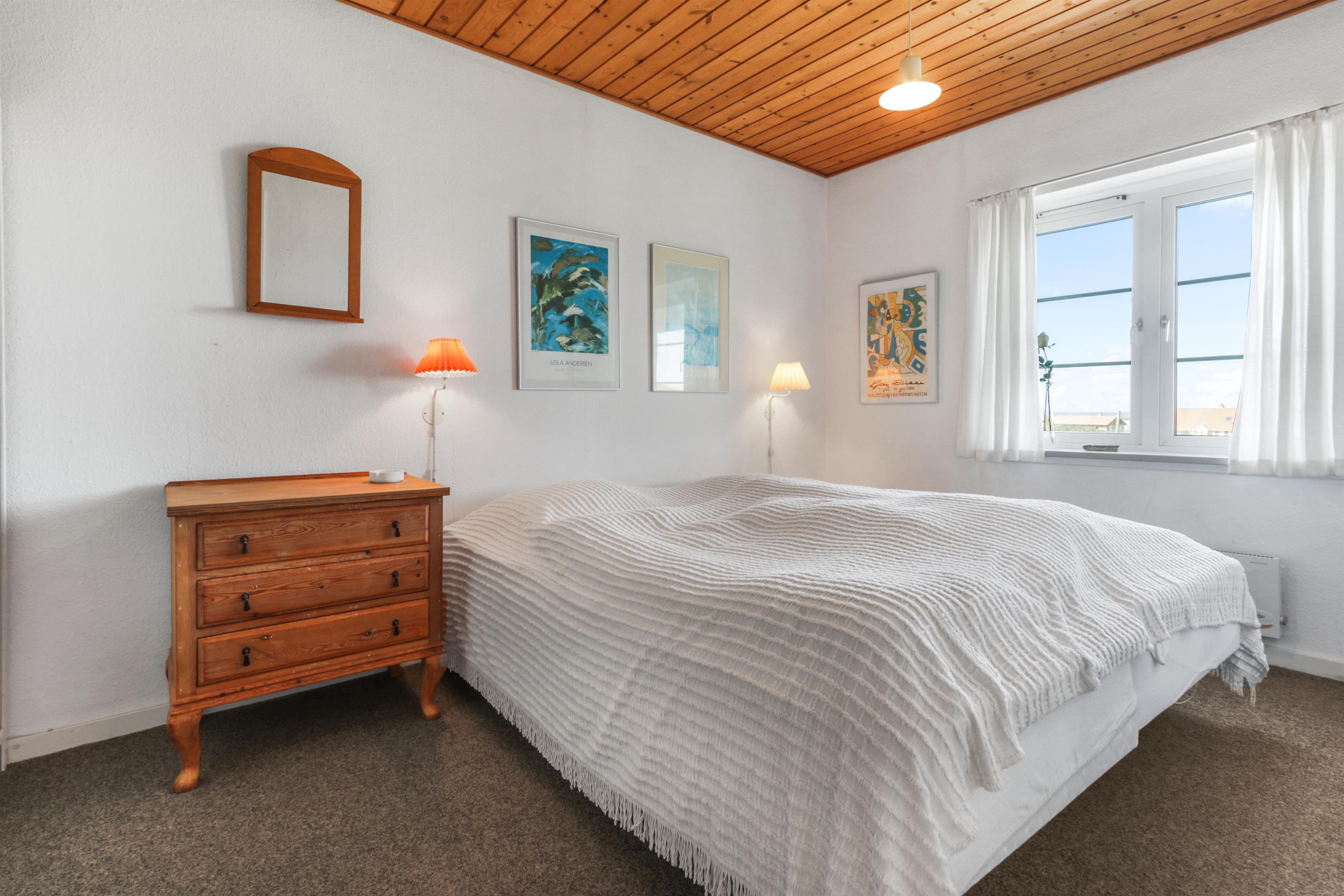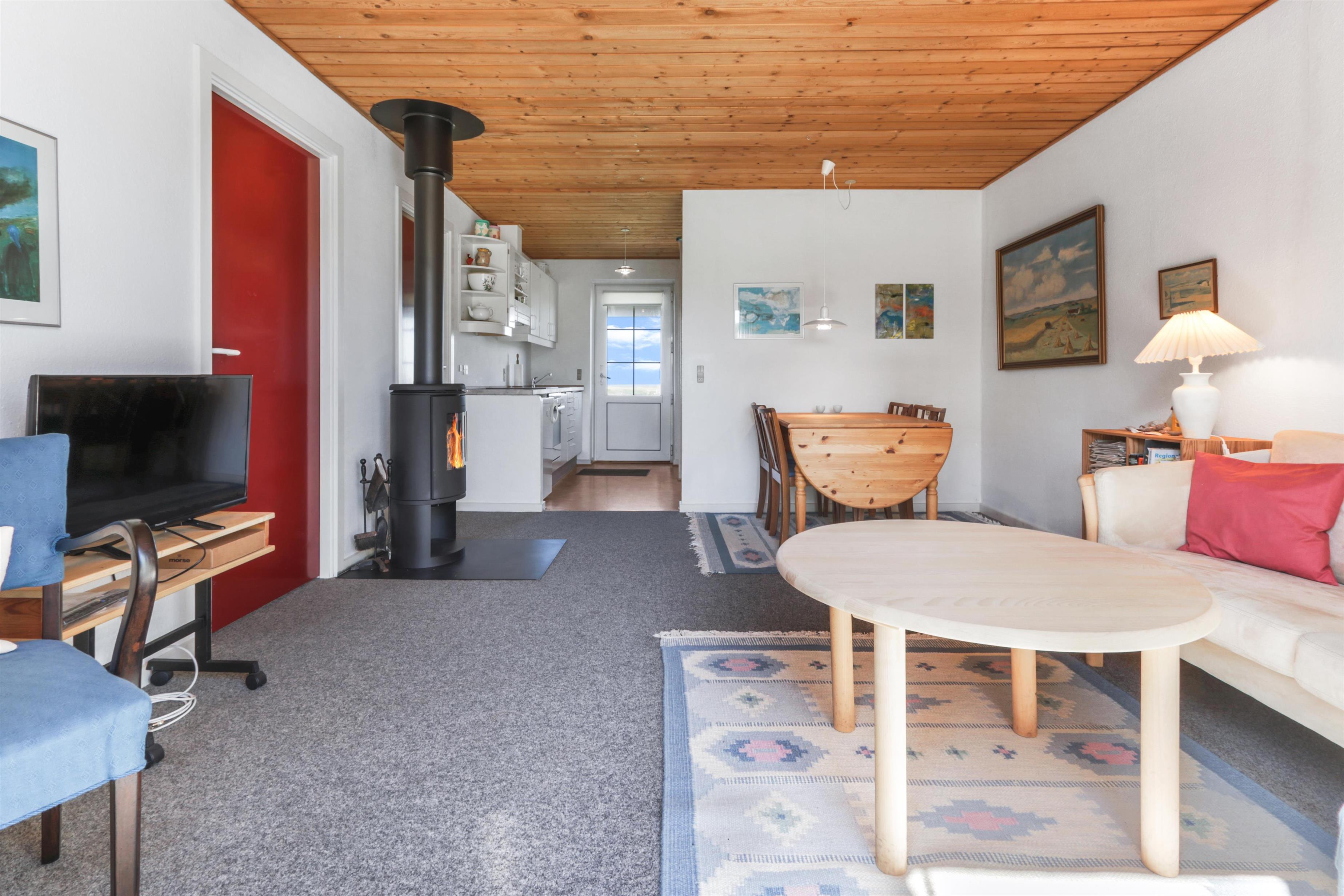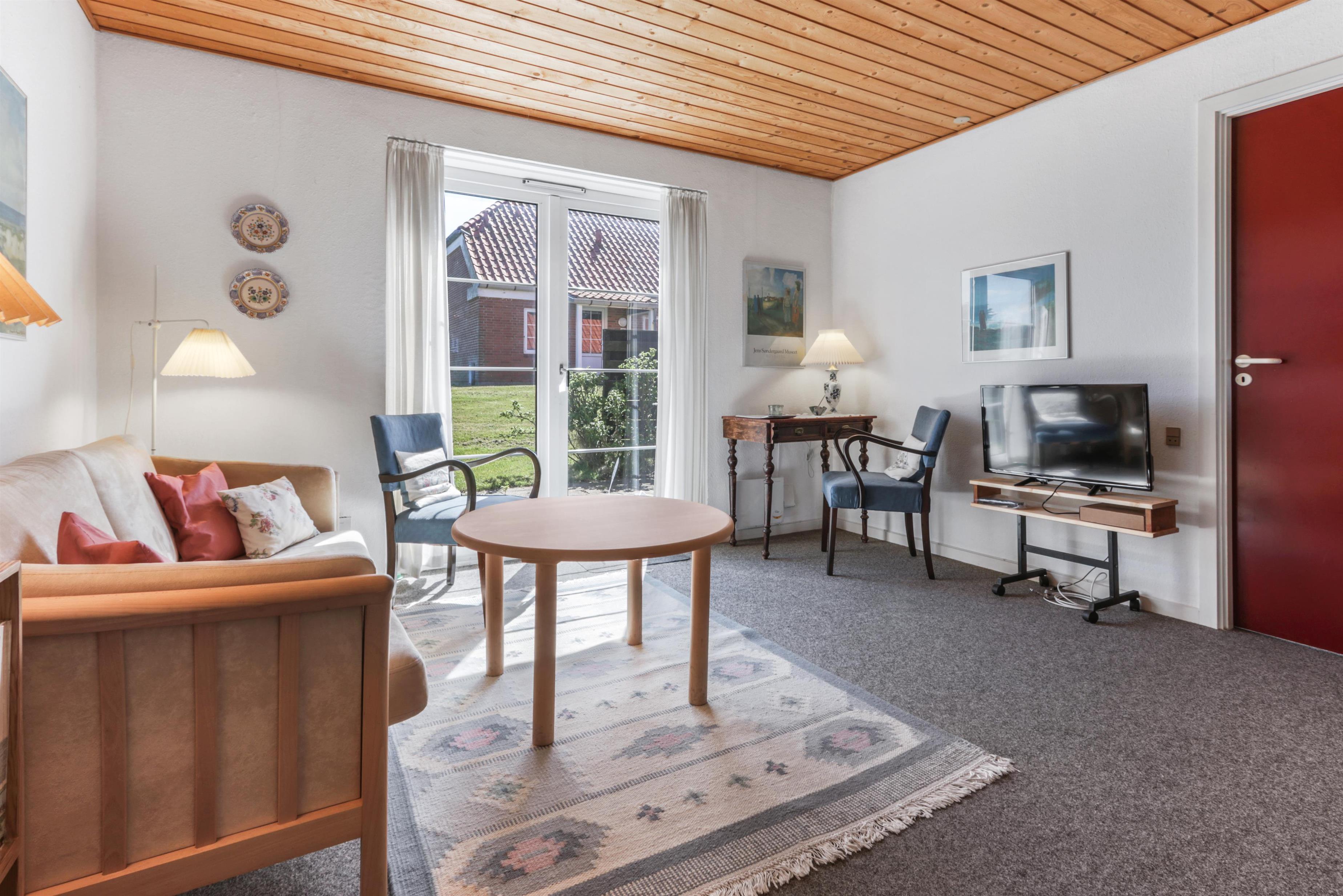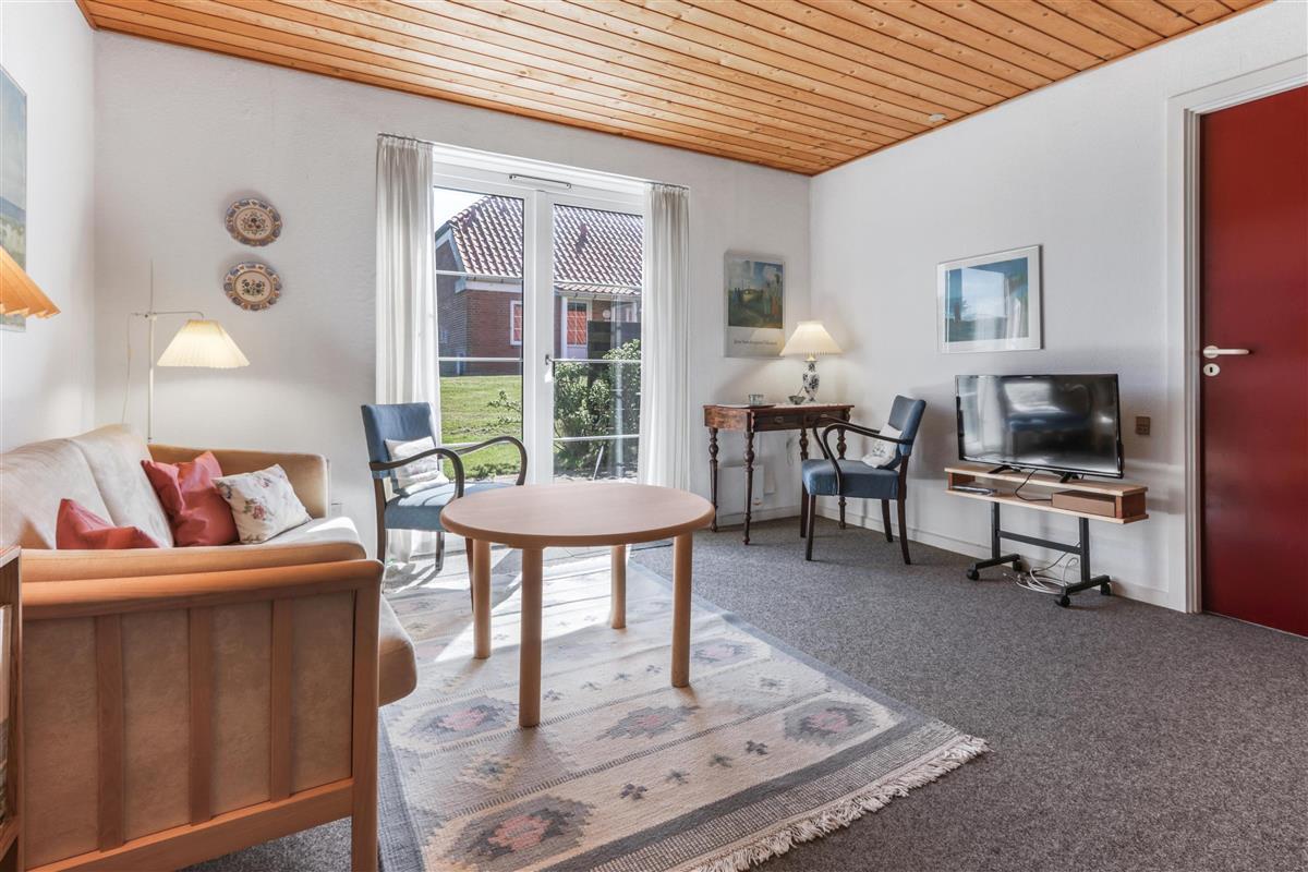 Diese Ferienwohnung ist sehr funktional eingerichtet und gut möbliert. Das Wohnzimmer verfügt über einen Kaminofen, TV, Stereoanlage mit CD-Player. Es gibt DR1- und DR2-Programme im Fernsehen, der Boden ist mit Teppichboden ausgelegt. Die Küche ist mit Herd, Kühl-/Gefrierschrank und Mikrowelle ausgestattet. Küche und Wohnzimmer sind kombiniert. Großes Badezimmer mit Toilette, Waschbecken und Dusche sowie gefliestem Boden. 2 Schlafzimmer: 1 Doppelbett + 1 Doppelschlafsofa. Nichtraucherhaus. 1 Haustier ist erlaubt.