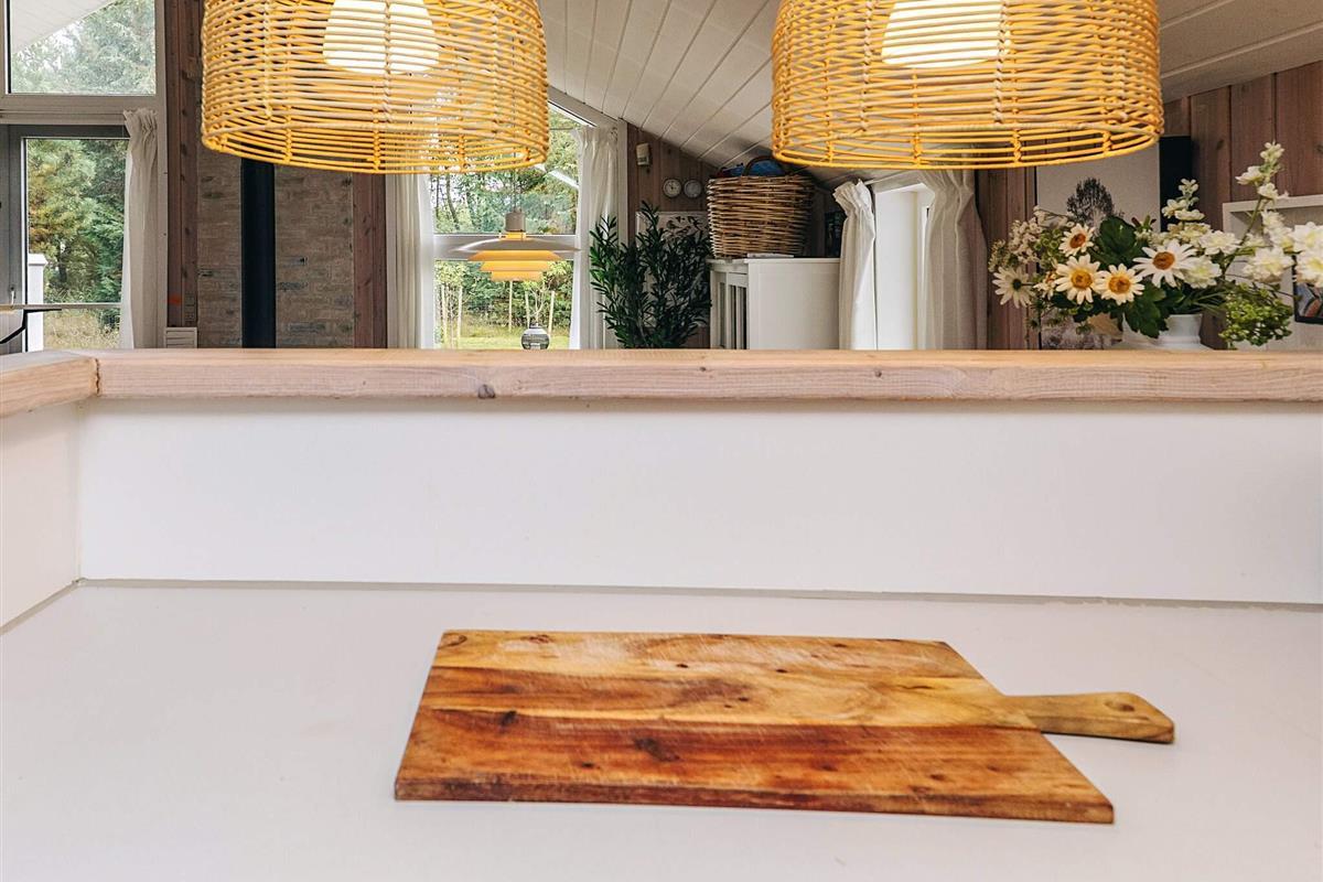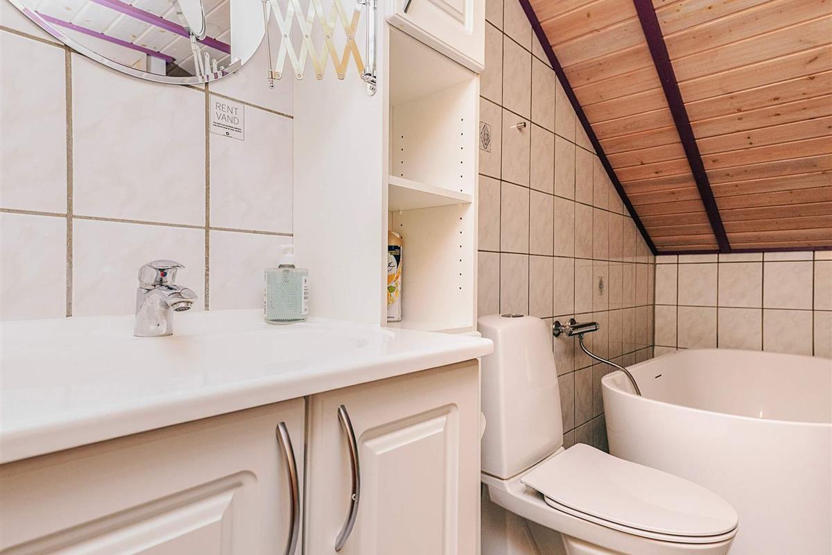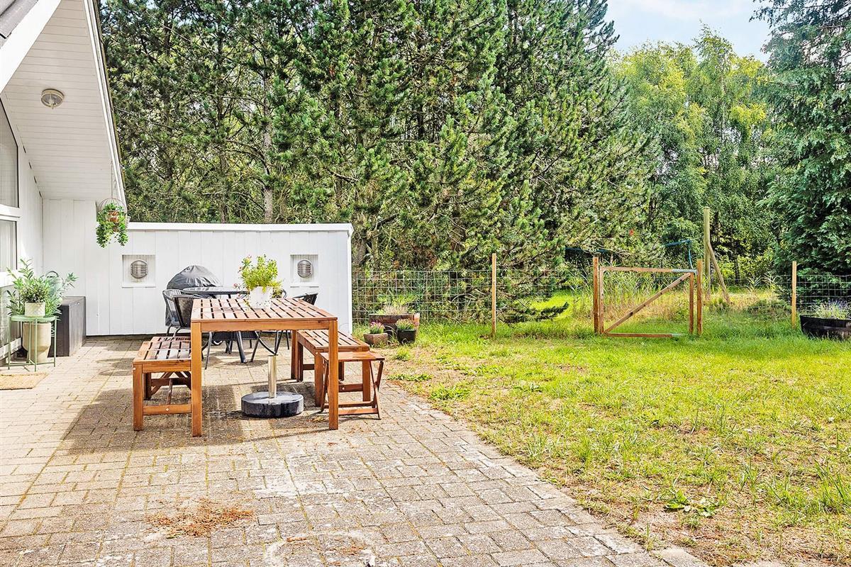 Das Haus besitzt eine große und helle Küche, die offen mit dem Eckwohnzimmer verbunden ist, sodass auch diejenigen, die kochen, weiterhin am Gespräch mit der Familie teilnehmen können. Es gibt zwei Toiletten. Vom Wohnzimmer aus gelangt man direkt auf die schöne Terrasse des Hauses, auf der man die Sonne genießen und die Aktivitäten auf der großen, angelegten Rasenfläche beobachten kann. Im Garten stehen ein Trampolin und ein Volleyballnetz zur Verfügung – ideal für gemütliche Stunden mit Freunden und Familie.