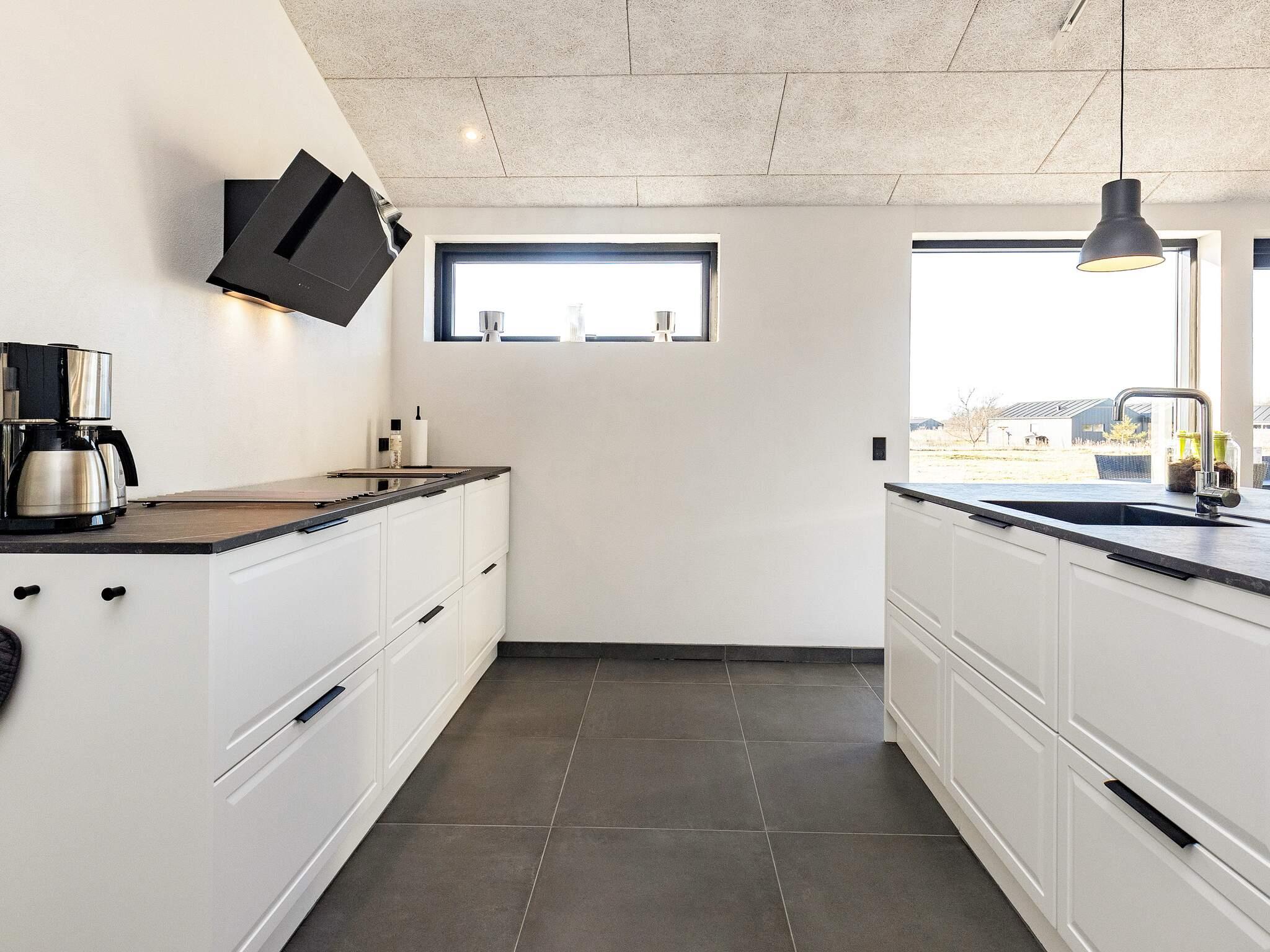 Das Herzstück des Ferienhauses ist ein großes, offenes Wohnzimmer mit guter Akustik, das mit der gut ausgestatteten Küche verbunden ist. Hier finden alle Platz zum gemeinsamen Kochen, Essen, Spielen, einem guten Film oder was auch immer Ihnen sonst noch einfällt. Der Raum hat große Fenster, durch die das faszinierende Licht Nordjütlands hereinflutet, und an warmen Tagen können Sie die schöne Holzterrasse öffnen.