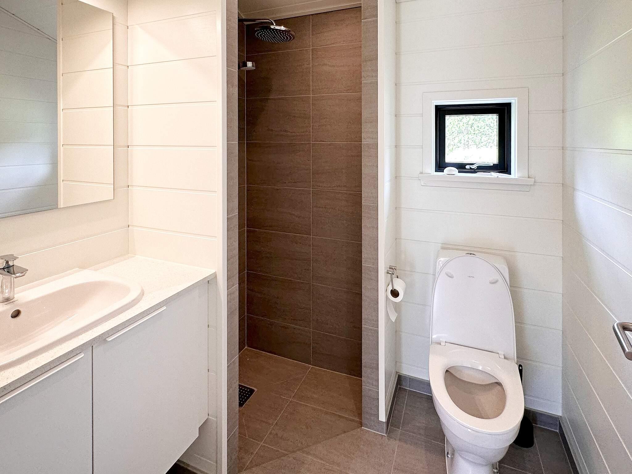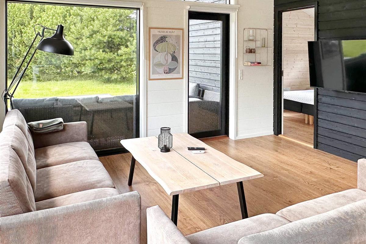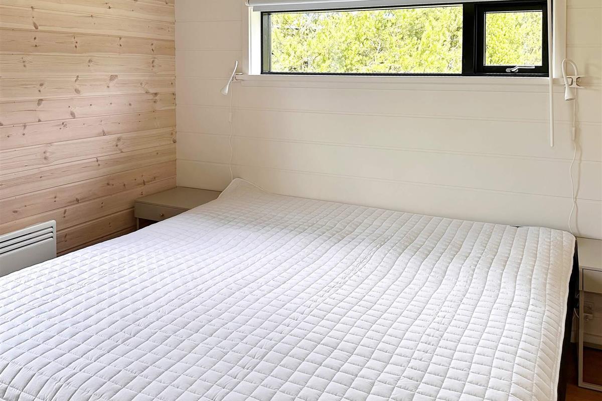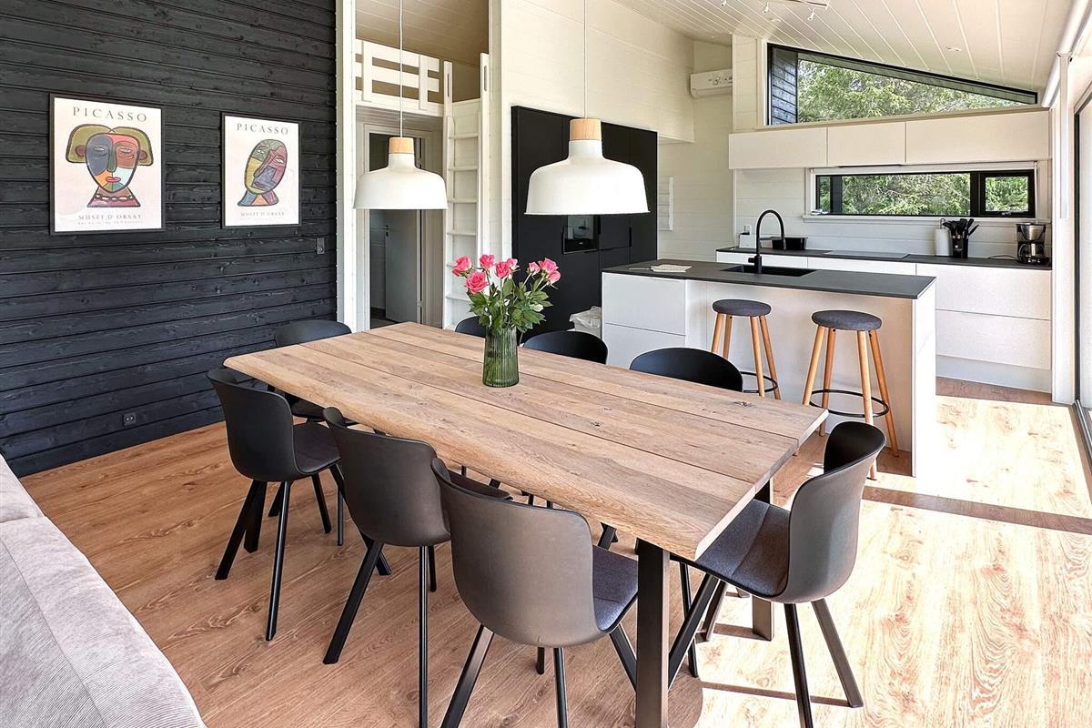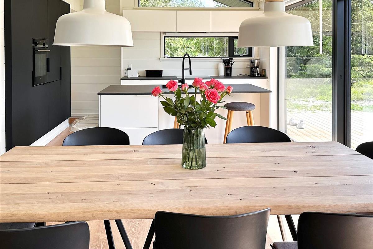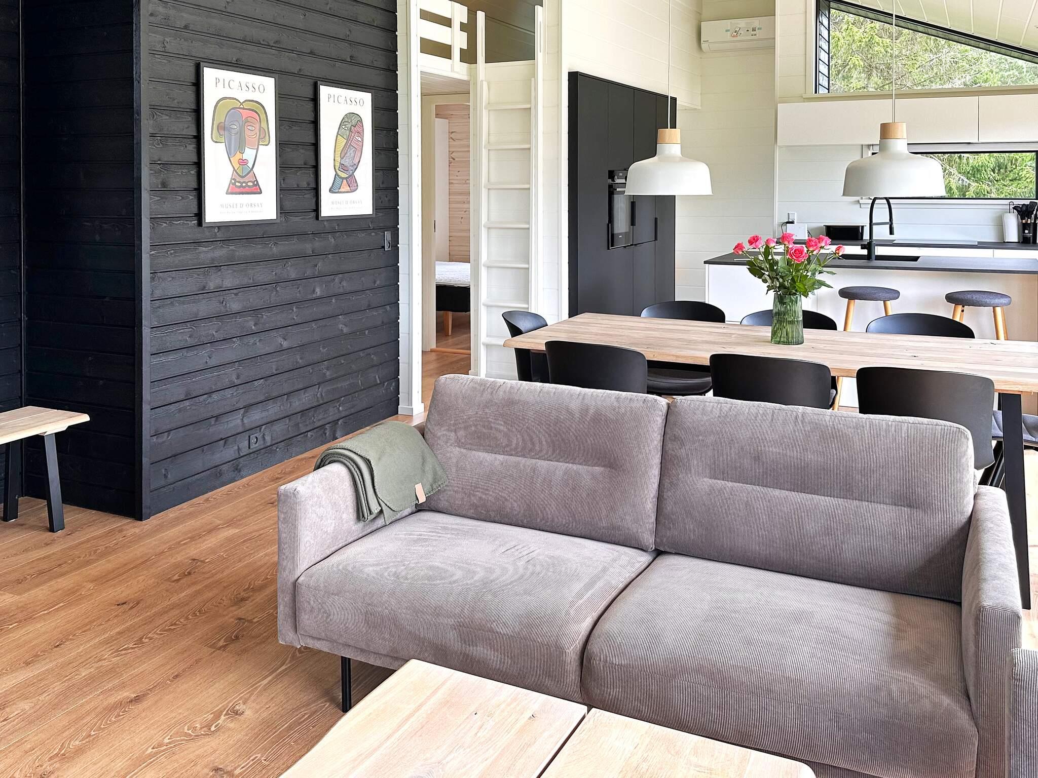 Ferienhaus ab 2023 in einem ruhigen Ferienhausgebiet im beliebten Bratten. Das Haus ist modern eingerichtet und bietet viel Platz und helle Räume. Die großen Fenster sorgen für viel Licht und bieten einen Blick auf die Bäume des Naturgrundstücks.