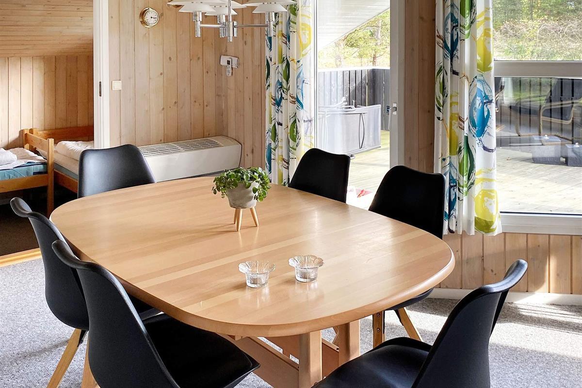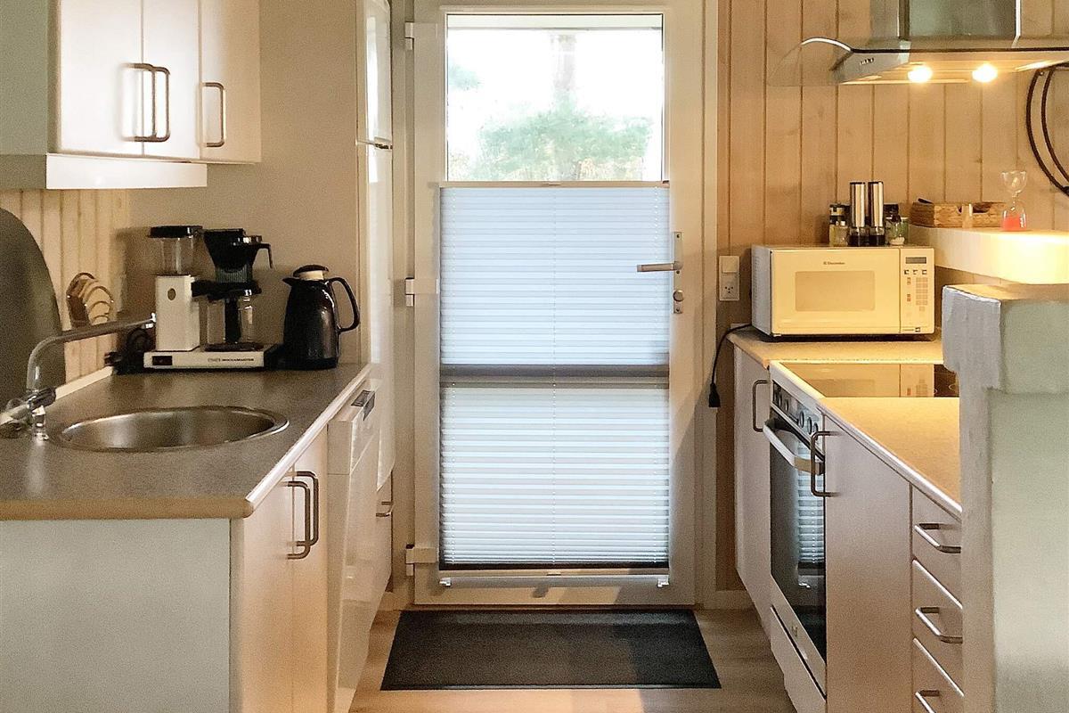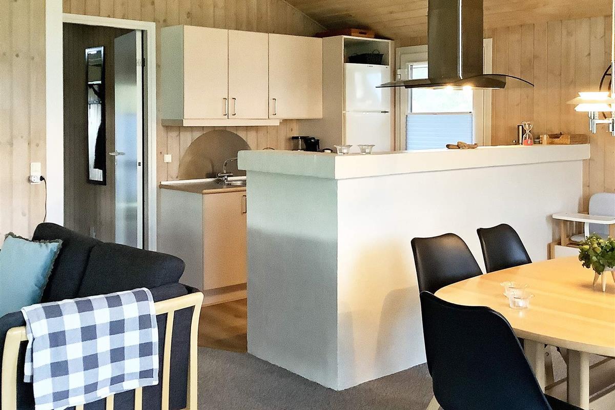 Das Ferienhaus ist sehr einladend eingerichtet und hat einen offenen Küchen-/Wohnbereich für das Familienleben. Dieser ist mit Essecke und Holzofen ausgestattet, der an kühleren Abenden wohlige Wärme verbreiten kann. Relaxen Sie hier mit einem guten Buch auf dem Sofa oder bereiten Sie alle zusammen das Mittagessen zu. Im Haus stehen drei Schlafzimmer zur Verfügung, die alle mit Betten ausgestattet sind. Außerdem steht ein zeitgemäßes Badezimmer mit Whirlpool und Sauna sowie angenehmer Fußbodenheizung, Waschmaschine und Wäschetrockner bereit.