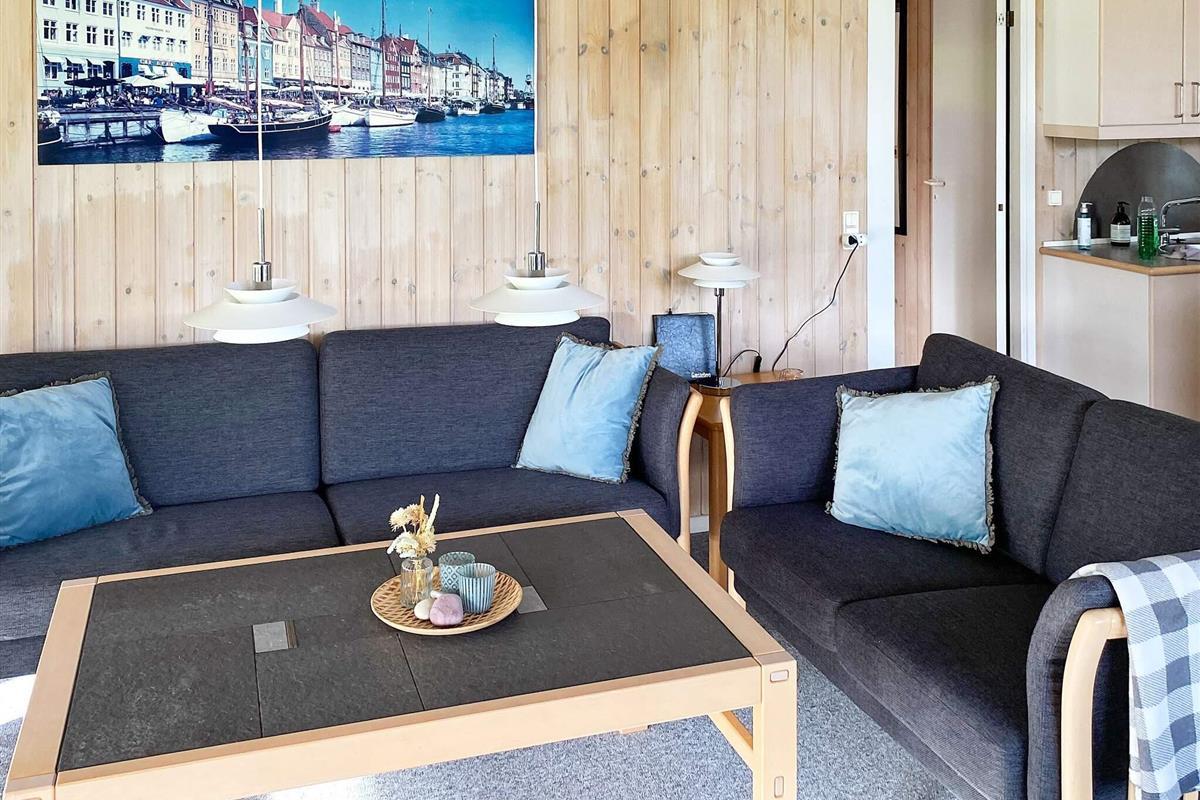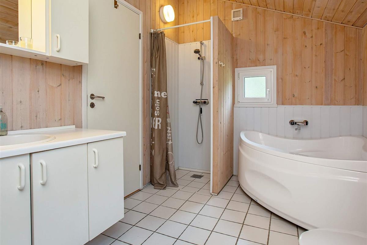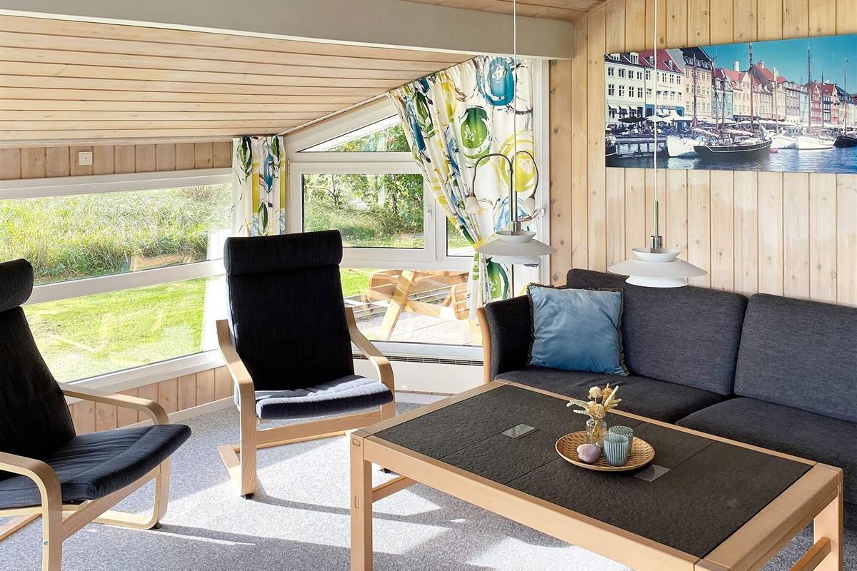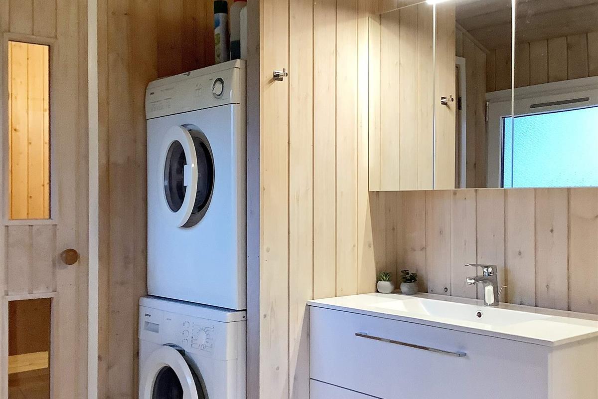 Das Ferienhaus ist sehr einladend eingerichtet und hat einen offenen Küchen-/Wohnbereich für das Familienleben. Dieser ist mit Essecke und Holzofen ausgestattet, der an kühleren Abenden wohlige Wärme verbreiten kann. Relaxen Sie hier mit einem guten Buch auf dem Sofa oder bereiten Sie alle zusammen das Mittagessen zu. Im Haus stehen drei Schlafzimmer zur Verfügung, die alle mit Betten ausgestattet sind. Außerdem steht ein zeitgemäßes Badezimmer mit Whirlpool und Sauna sowie angenehmer Fußbodenheizung, Waschmaschine und Wäschetrockner bereit.
