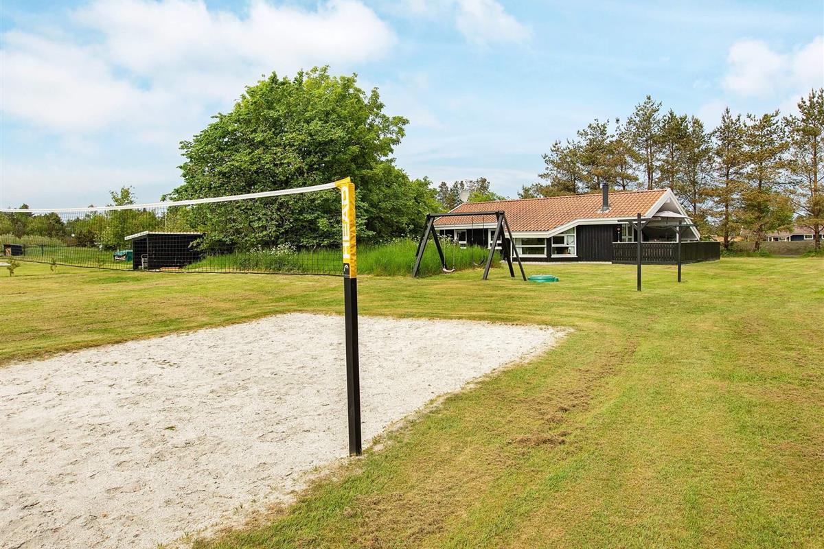 Im Außenbereich bietet das Naturgrundstück mit Bäumen gute Möglichkeiten zum Aktivsein an der frischen Luft, dazu laden auch der Beachvolleyballplatz, Fußballtor, Schaukel und Sandkasten ein. Die Terrasse hat mehrere gemütliche Ecken, von denen aus Sie die schöne Umgebung und die Sonnentage genießen können. Im Sommer findet man ganz in der Nähe ein kleineres Lebensmittelgeschäft und Café, Golfplätze, Minigolf und vieles mehr.