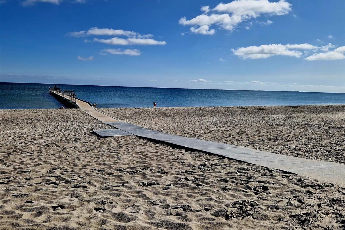 Zu Fuß erreichen Sie die Ortsmitte des gemütlichen, kleinen Fischerdorfes Strandby, in dem es Kaufmannsladen, Café, Gaststätten etc. gibt.