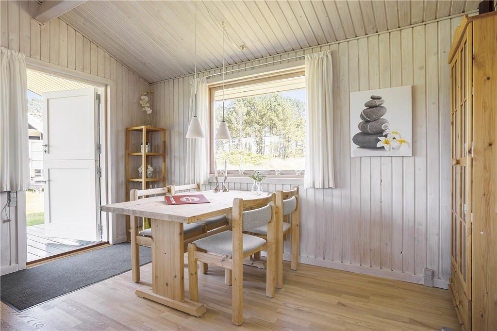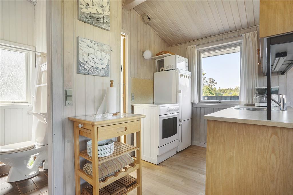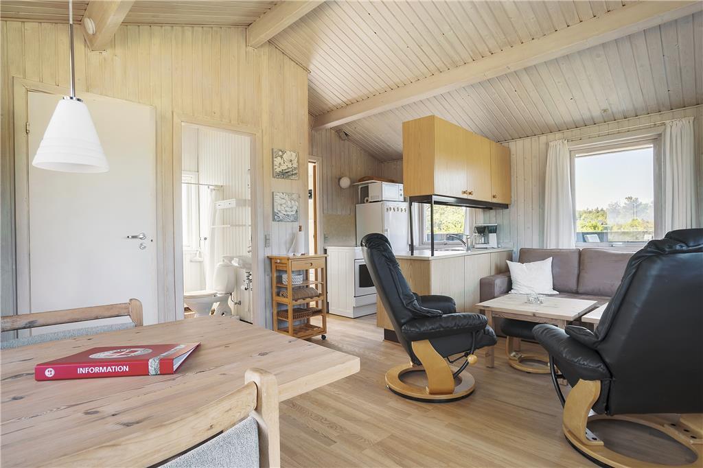 Beim Betreten dieses gemütlichen Sommerhauses wirst du von einer hellen und einladenden Atmosphäre empfangen, die sofort Urlaubsstimmung aufkommen lässt. Die Einrichtung verbindet klassische Sommerhausatmosphäre mit funktionalem Komfort. Die offenen Wohnbereiche laden zu entspannten Stunden und gemeinsamen Aktivitäten ein. Das Wohnzimmer ist der perfekte Ort, um den Abend ausklingen zu lassen, während die offene Küche in Verbindung mit dem Essbereich das Zubereiten von Mahlzeiten und das Beisammensein angenehm gestaltet. Die Schlafzimmer bieten Komfort und Ruhe, sodass du erholt in den Tag starten kannst.