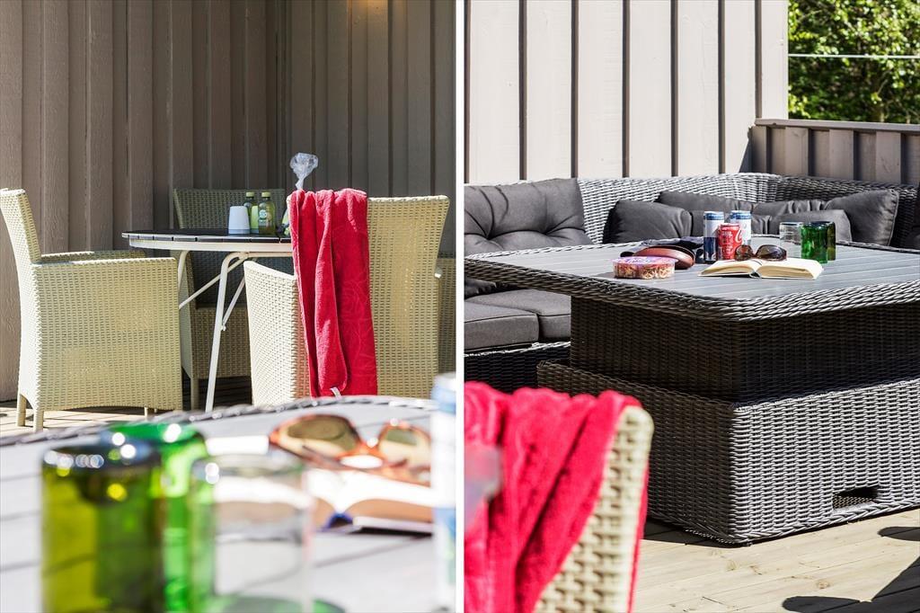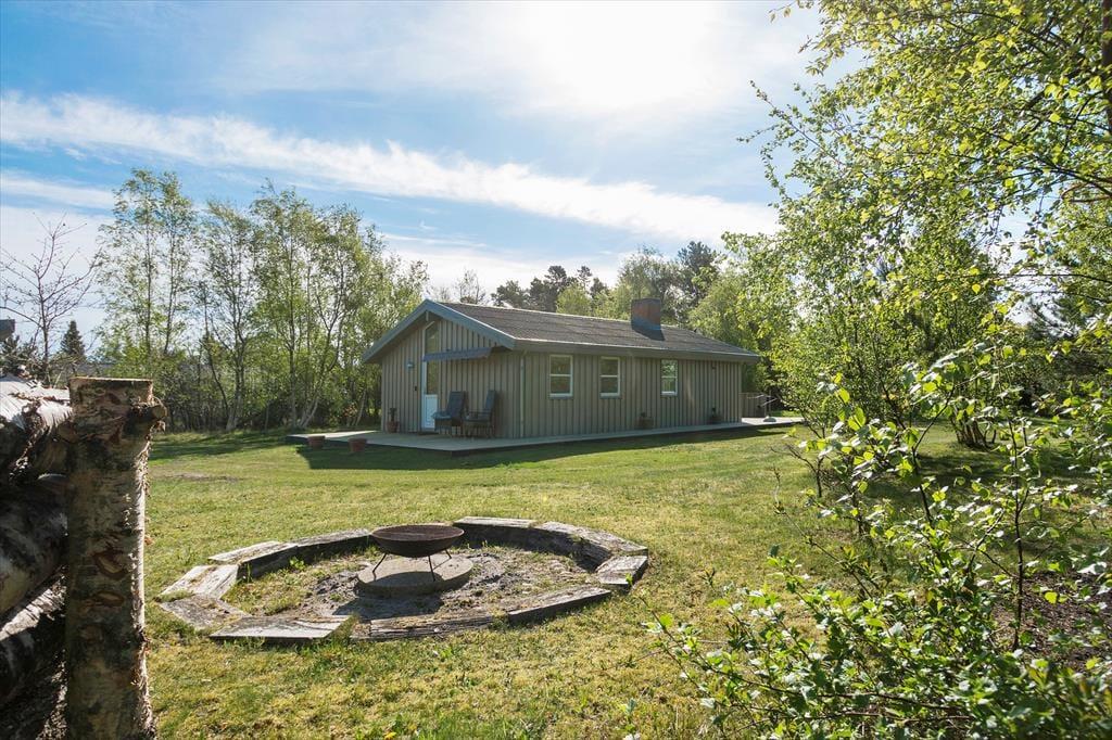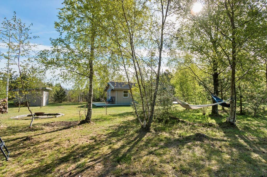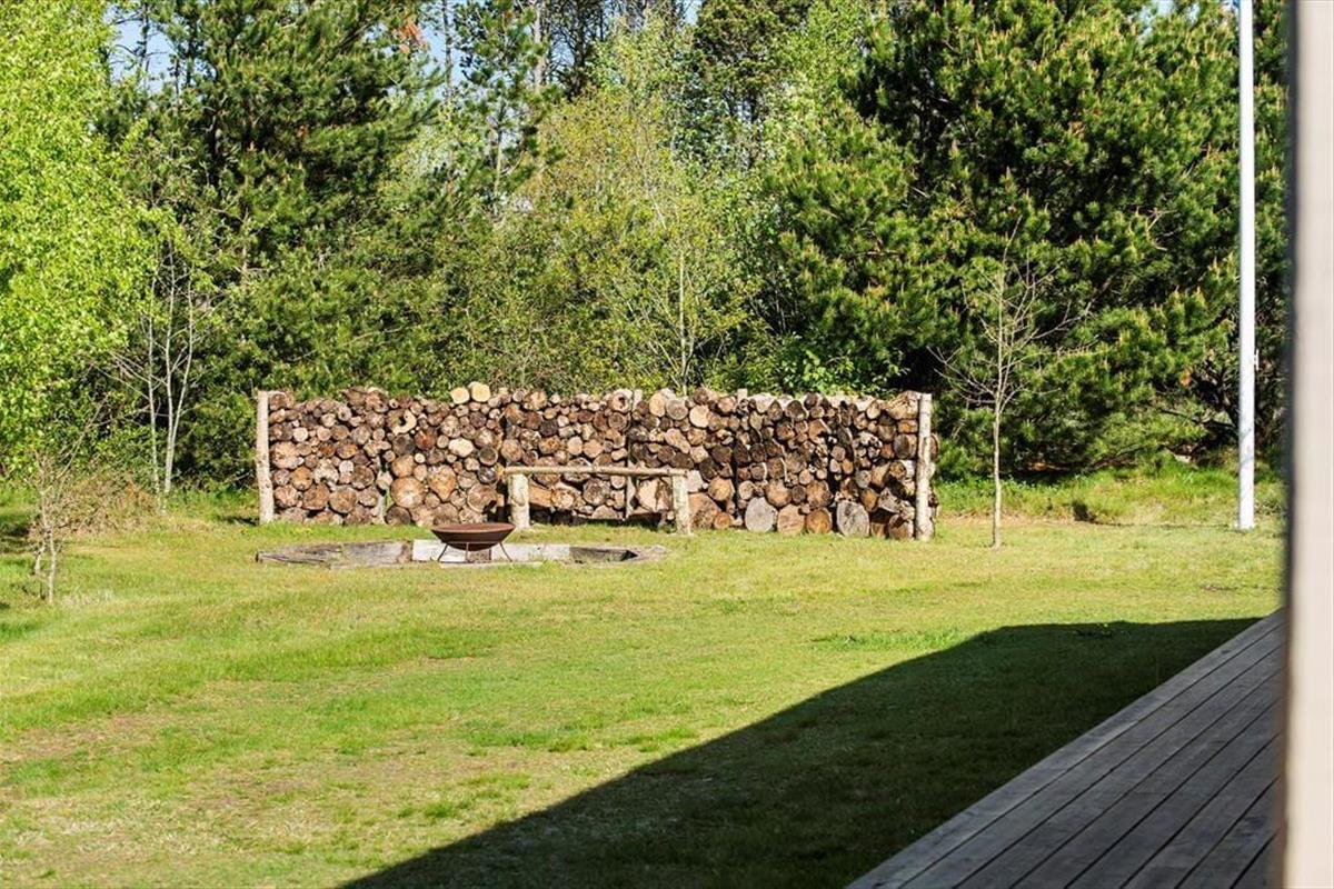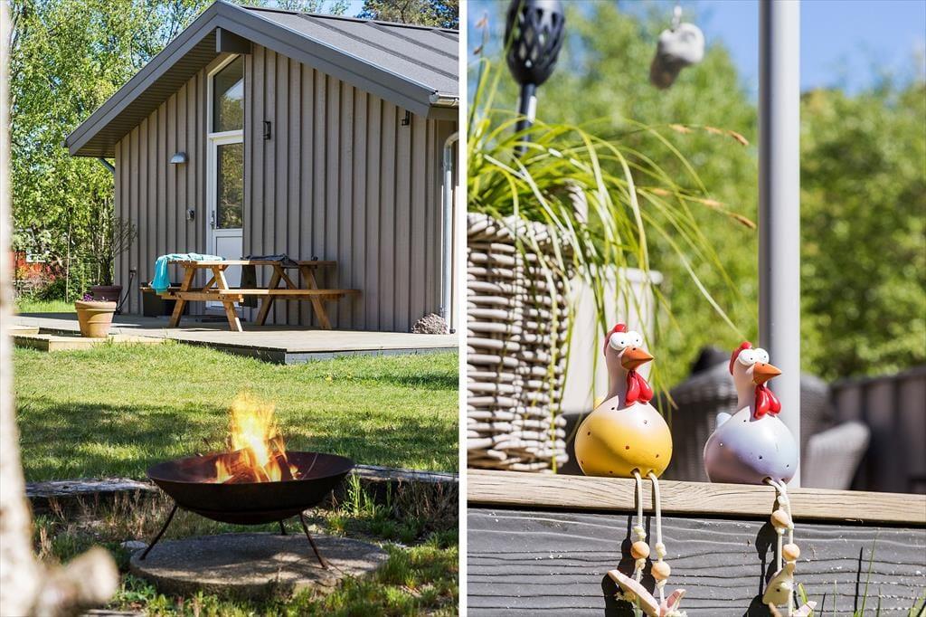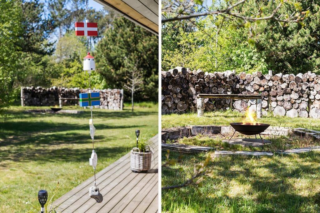 Draußen erwartet dich eine große Holzterrasse, die sich über drei Seiten des Hauses erstreckt. So findest du jederzeit ein sonniges oder schattiges Plätzchen – ganz nach deinem Wunsch. Hier kannst du stundenlang die Sonnenstrahlen genießen, sommerliche Mahlzeiten grillen und die Kinder auf dem 2.525 m² großen Grundstück frei spielen lassen. Auf dem Gelände gibt es außerdem eine Feuerstelle, an der ihr euch um die Flammen versammeln und Marshmallows rösten könnt, während die Dunkelheit langsam hereinbricht. Die Natur ist ganz nah, und die ruhige Lage macht es leicht, abzuschalten und die Urlaubsstimmung voll und ganz zu genießen.