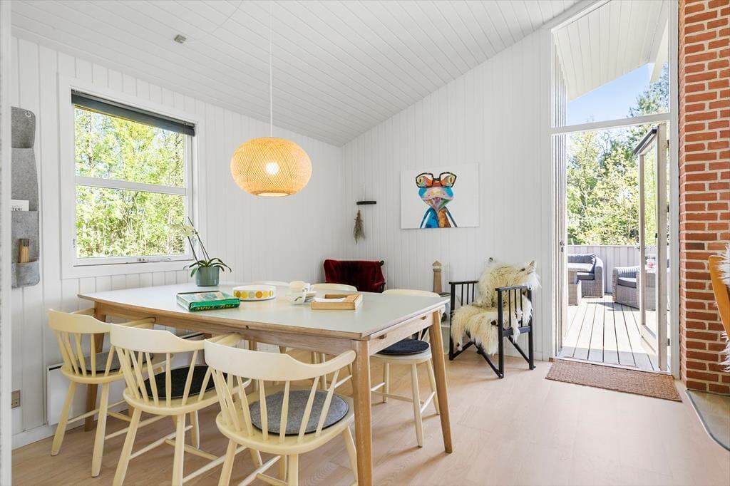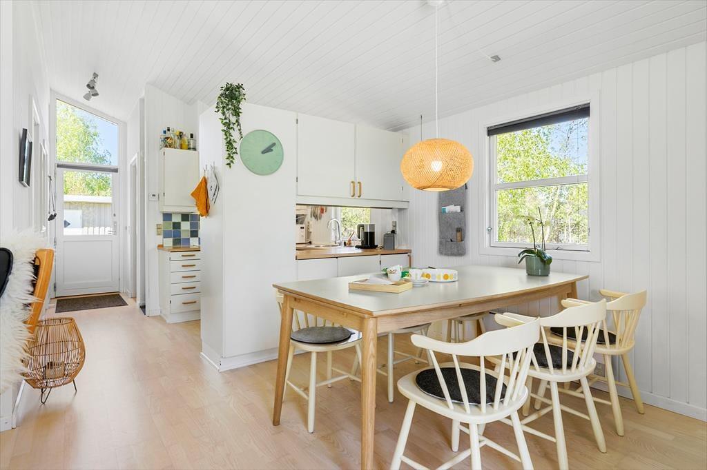 Das Ferienhaus empfängt dich mit einer hellen und einladenden Atmosphäre, in der die Räume harmonisch ineinander übergehen. Küche und Wohnzimmer sind offen miteinander verbunden, sodass sich die Urlaubsstimmung frei entfalten kann – egal, ob du gerade in der Küche ein leckeres Mittagessen zubereitest oder mit einem guten Buch auf dem Sofa entspannst. Die großen Fenster lassen viel Licht herein und schaffen eine angenehme Verbindung zwischen drinnen und draußen. Hier fühlt man sich schnell wie zu Hause – besonders, wenn der Tag in aller Ruhe beginnt und mit gemütlichen Abenden in guter Gesellschaft endet.