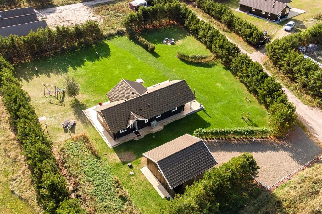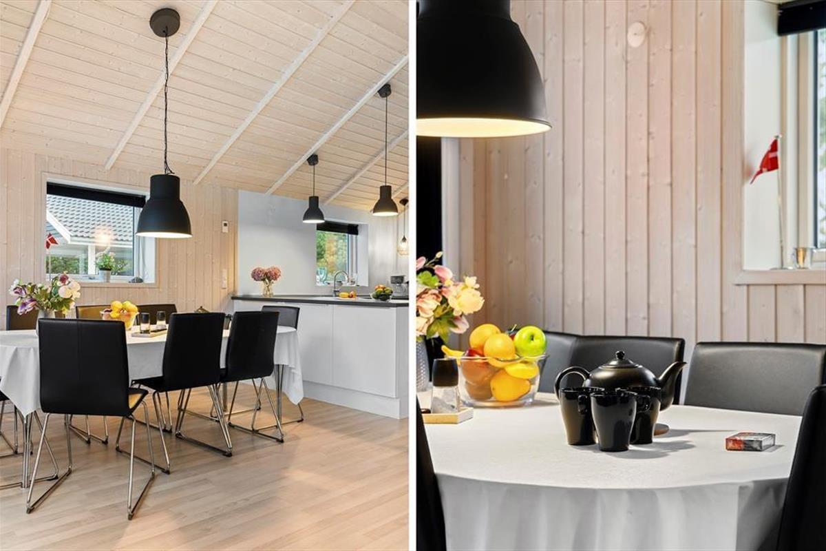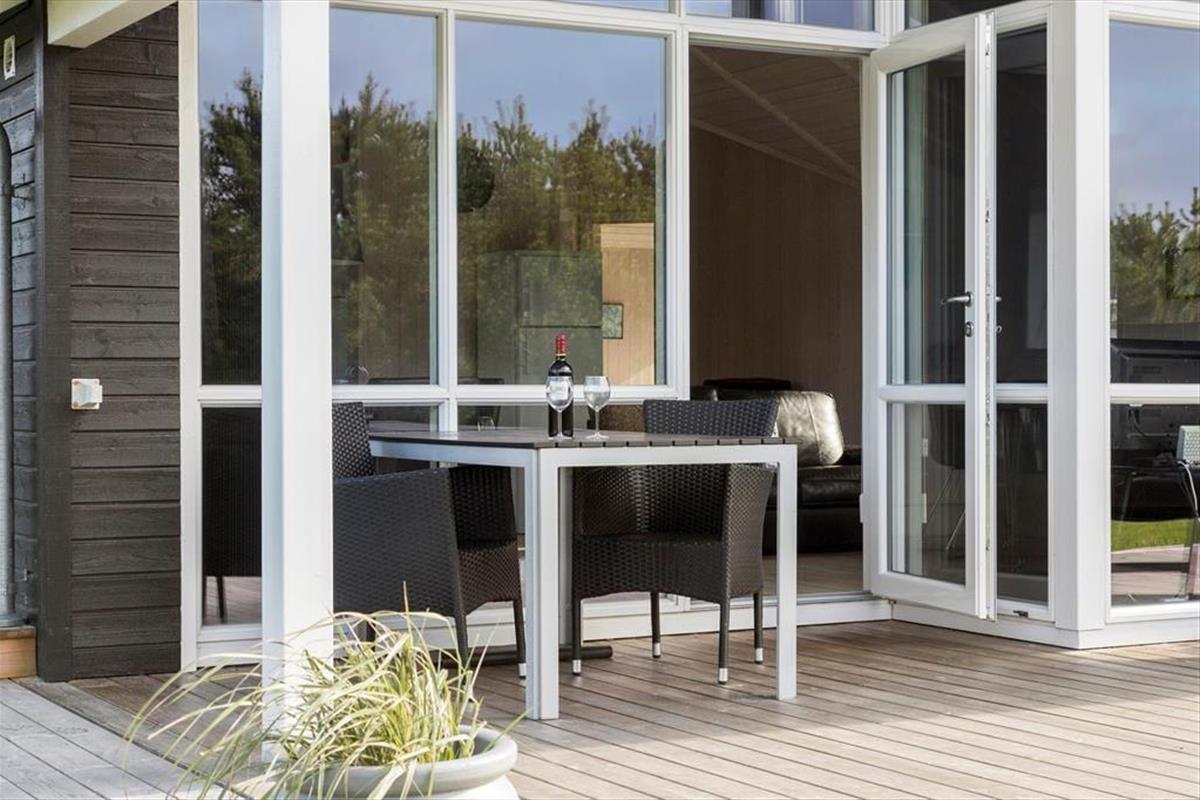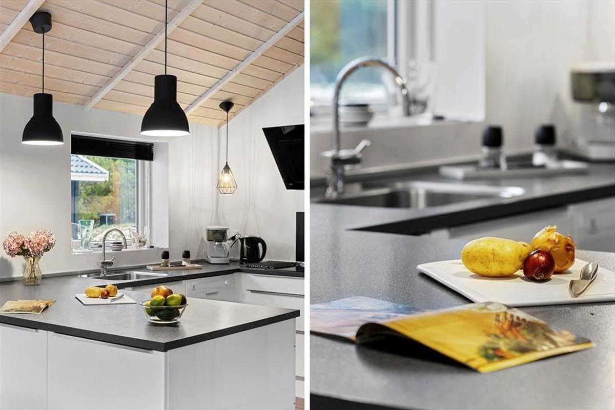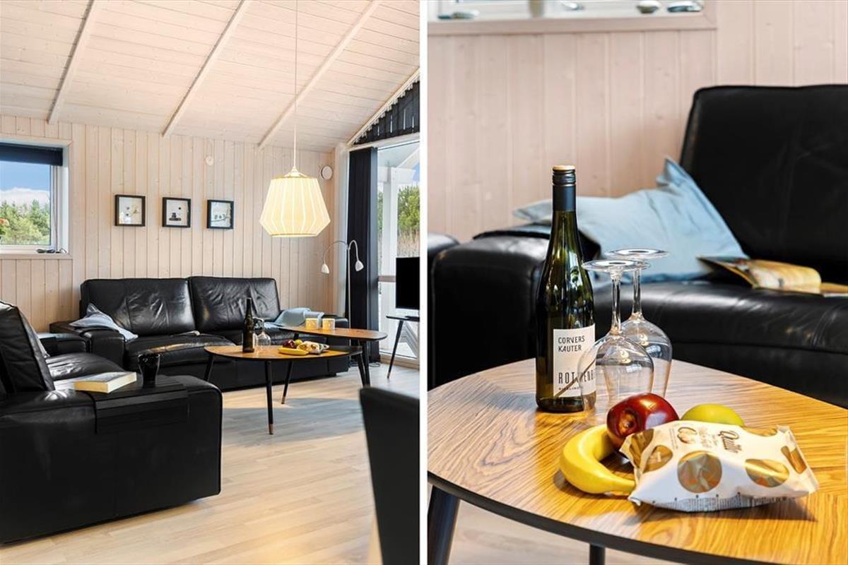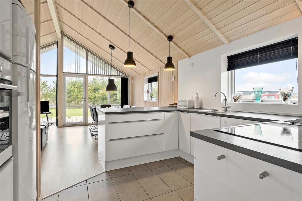 Das Ferienhaus ist mit Fokus auf Gemütlichkeit und Komfort eingerichtet. Die großen Fenster sorgen für ein schönes Licht, und der offene Grundriss schafft eine angenehme Atmosphäre. Die gut ausgestattete Küche ist offen mit dem Wohnbereich verbunden, der viel Platz für Entspannung und gemeinsame Mahlzeiten bietet. Mit zwei Badezimmern ist das Haus ideal für Paare und Familien, die zusätzlichen Komfort schätzen.
