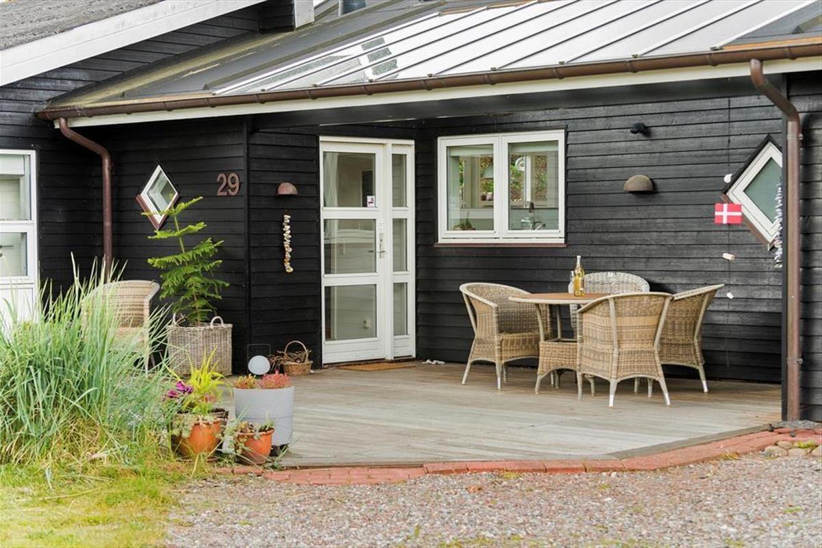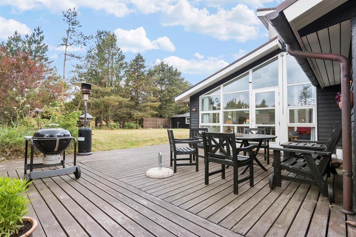 Draußen findest du mehrere schöne Terrassenbereiche, auf denen du die ruhige Umgebung genießen kannst. Die große Holzterrasse ist der perfekte Ort zum Sonnenbaden am Tag und für entspannende Abendessen unter freiem Himmel am Abend. Hier kannst du den Vögeln beim Singen zuhören, die frische Luft genießen und deine Gedanken schweifen lassen. Das wunderschöne Naturgrundstück ist ideal zum Entspannen und Spielen, und durch die Lage des Hauses hast du einen fantastischen Ausblick auf die Landschaft, der das Gefühl vermittelt, vollkommen mit der Natur verbunden zu sein. Und mit nur 250 Metern zum Strand kannst du schnell ein erfrischendes Bad im klaren Wasser nehmen oder einen langen Spaziergang entlang der Küste machen.