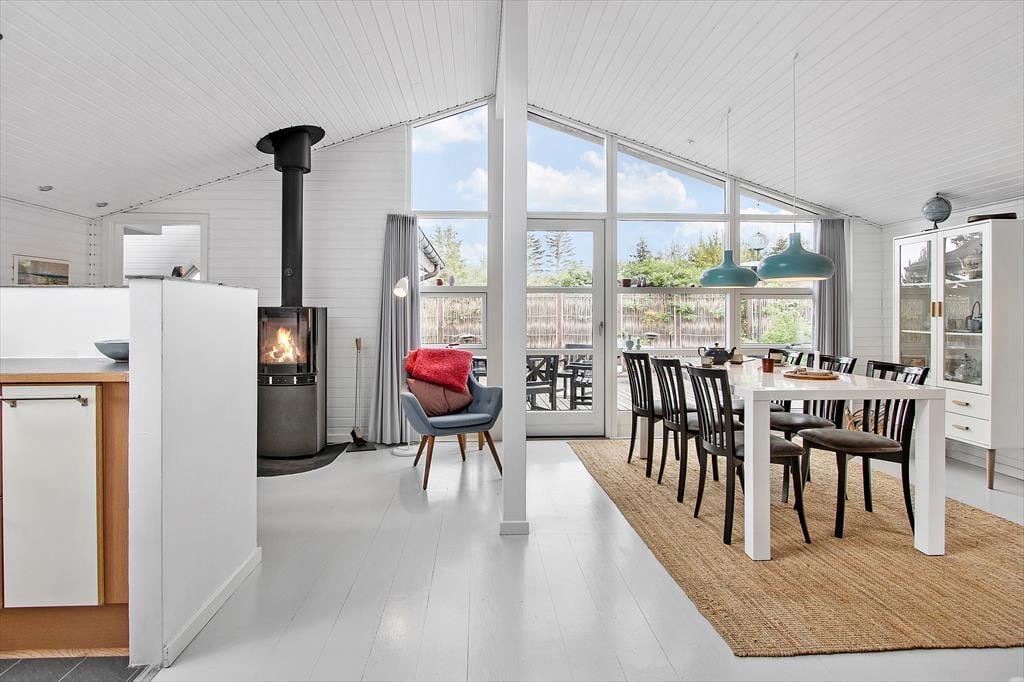 Im Inneren bietet das Ferienhaus eine warme und einladende Atmosphäre. Die hellen Räume sind mit viel Liebe zum Komfort und Gemütlichkeit eingerichtet, sodass du dich sofort wie zu Hause fühlst. Im Wohnzimmer kannst du die knisternde Wärme des Holzofens genießen, während du auf die wunderschöne Natur blicken kannst. Wenn du noch mehr Entspannung suchst, kannst du dich mit einem Whirlpool im Innen-Wellnessbereich verwöhnen. Die gemütlichen Räume bieten viel Platz für gemeinsame Zeit mit Familie und Freunden, und der wunderschöne Ausblick aus den Fenstern macht es noch verlockender, drinnen zu bleiben und sich in der hellen Umgebung zu entspannen.