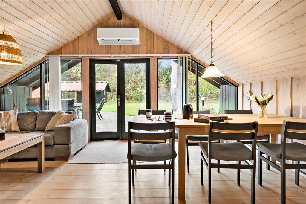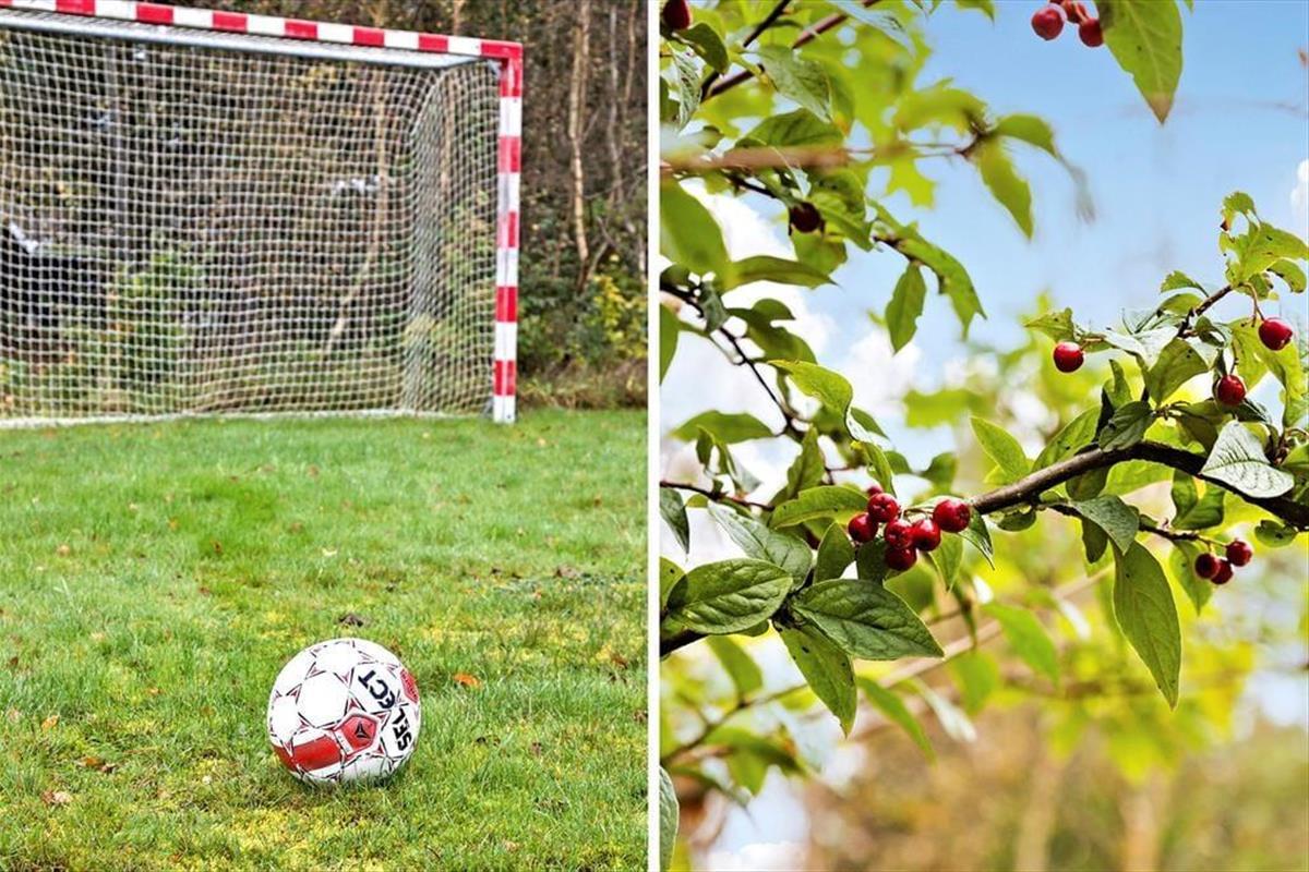 Das Haus liegt auf einem großen, privaten Grundstück, das ein Paradies für Kinder und Erwachsene ist. Der geräumige Garten lädt zum Spielen und Entspannen ein – die Kinder können in der Sandkiste Burgen bauen, Fußball spielen oder Marshmallows am Lagerfeuer rösten, während die Erwachsenen die Sonne auf den vielen Gartenmöbeln genießen. Die überdachte Terrasse ermöglicht es, bei jedem Wetter Zeit im Freien zu verbringen, und an warmen Abenden kann das Abendessen auf dem Grill zubereitet werden, während Vogelgesang die perfekte Hintergrundmusik bietet. Die Tierwelt rund um das Ferienhaus ist reichhaltig, und du kannst leicht Rehe und Vögel beobachten, die den friedlichen Garten besuchen.