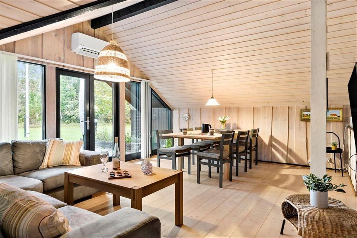 Im Inneren erwartet dich eine helle und einladende Atmosphäre, die sofort Urlaubsstimmung verbreitet. Das Wohnzimmer ist das Herz des Hauses, wo ihr euch zu gemütlichen Abenden mit Gesellschaftsspielen oder Filmen versammeln könnt. Der Kamin sorgt für Wärme und Gemütlichkeit an kühleren Tagen, während große Fenster den Blick auf die grüne Umgebung freigeben. Die offene Küche macht es einfach, köstliche Mahlzeiten zuzubereiten, während der Rest der Familie in der Nähe entspannt. Die Schlafzimmer sind komfortabel eingerichtet, damit alle gut ausgeruht in den Tag starten können. Das Badezimmer ist hell und praktisch gestaltet, damit dein Urlaub so bequem wie möglich wird.