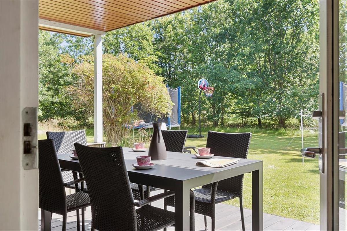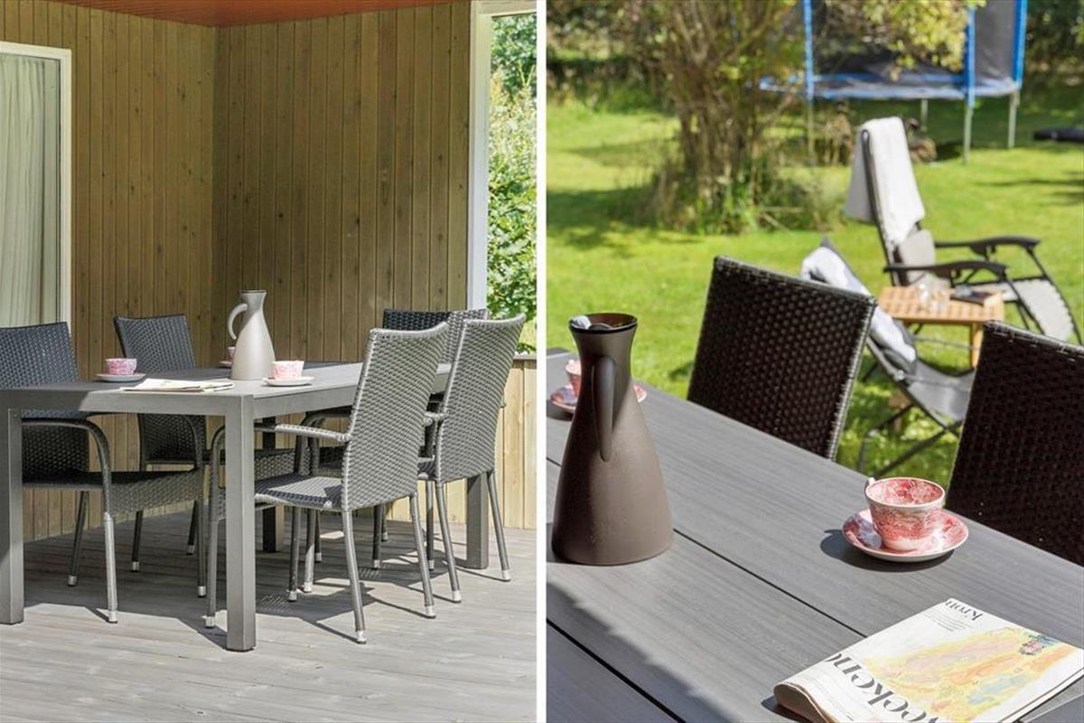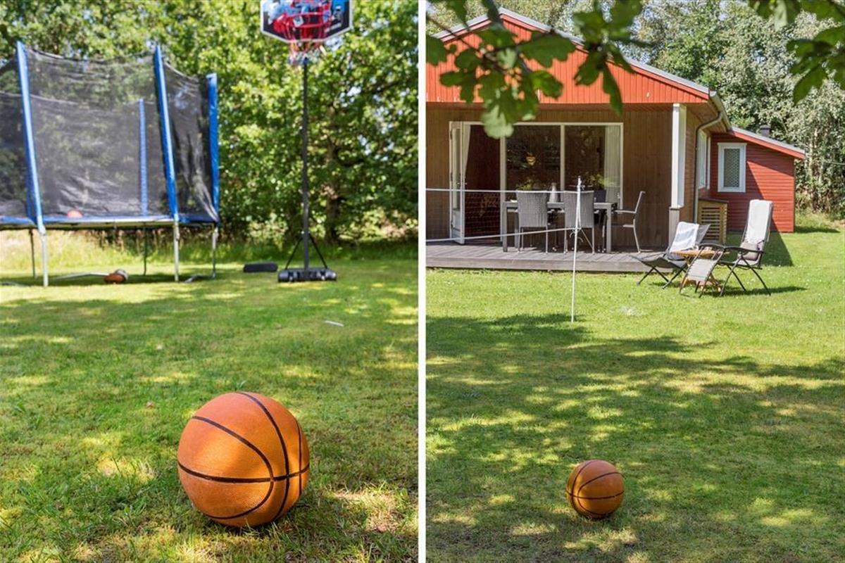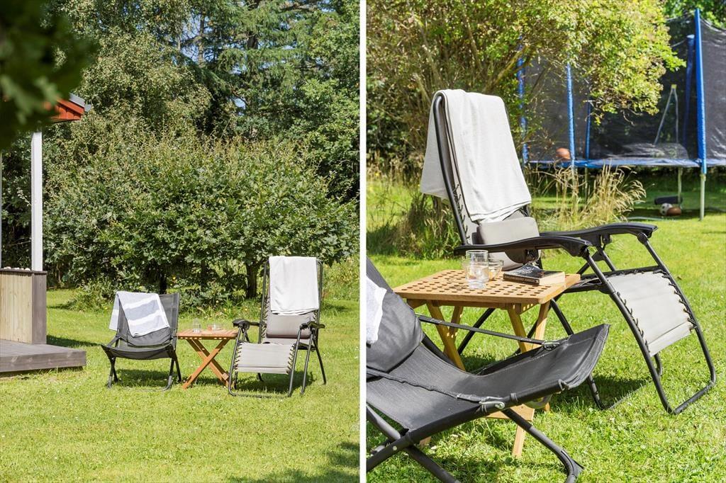 Das 2500 m² große Naturgrundstück ist eine herrliche Oase, wenn die Temperaturen mild sind und Ferienstimmung in der Luft liegt. Die teilweise überdachte Terrasse lädt dazu ein, das sonnige Wetter ganz entspannt zu genießen, und Sie können auch eine Tasse Kaffee und Ihr mitgebrachtes Buch mit auf den Rasen nehmen, um sich dort niederzulassen. Auf dem Rasen gibt es viel Platz für körperliche Aktivitäten, und die Familie kann sich unter anderem im Badminton und Basketball messen, während die Jüngsten auf dem Trampolin Energie abbauen können. Die hellen Sommerabende können ebenfalls draußen verbracht werden, und das letzte Essen des Tages kann ganz einfach auf dem Gasgrill zubereitet werden.