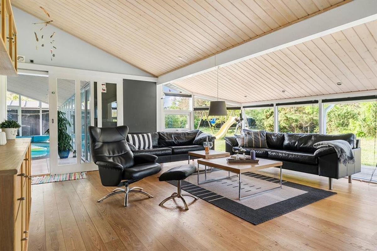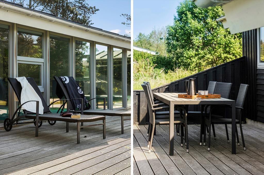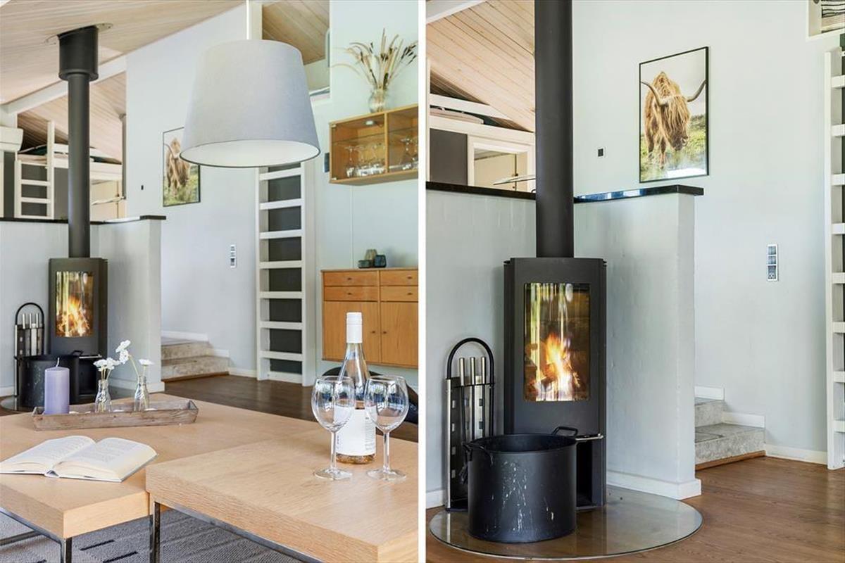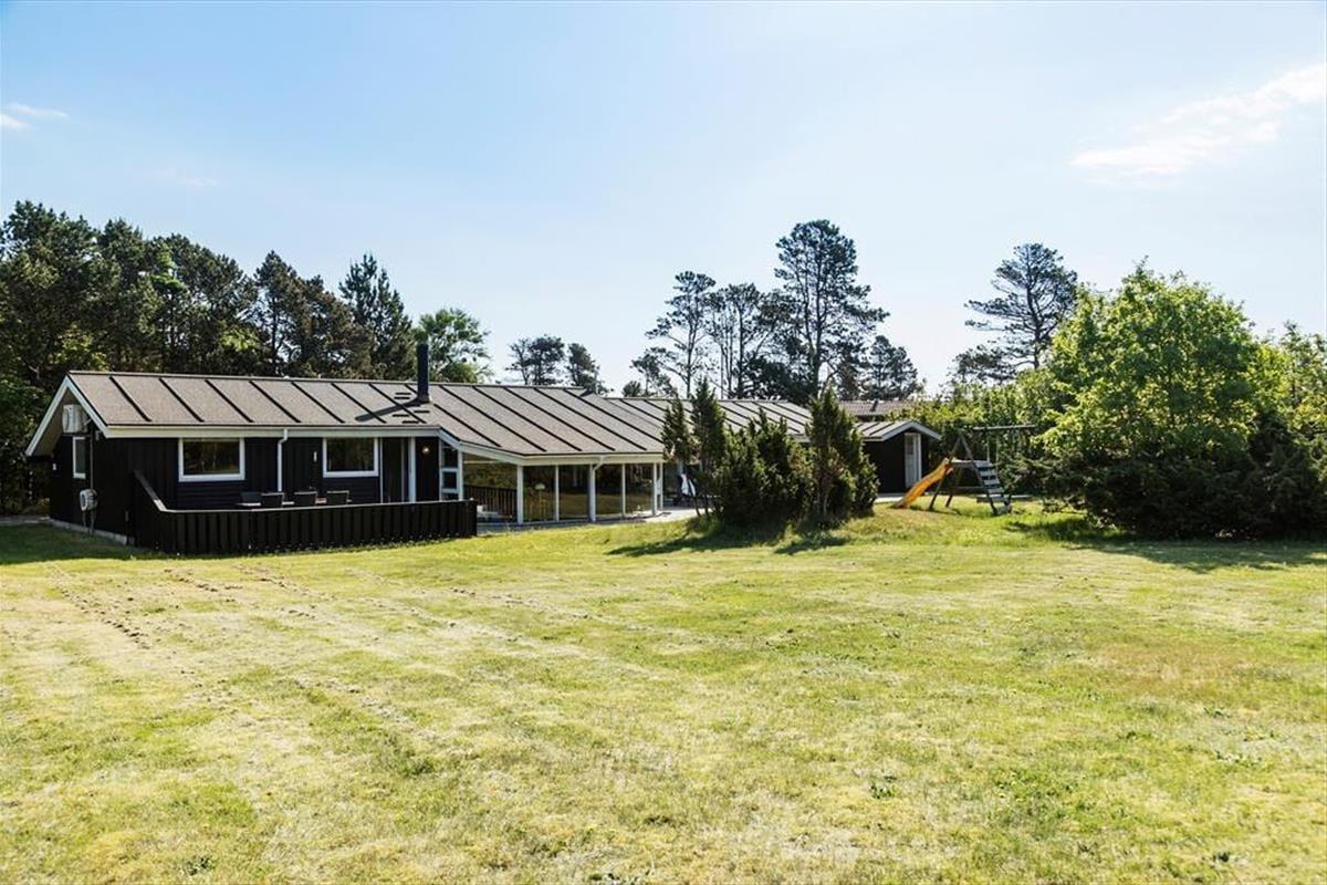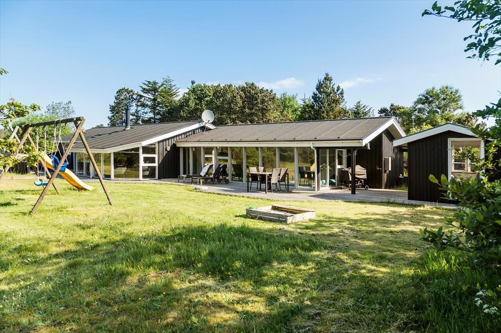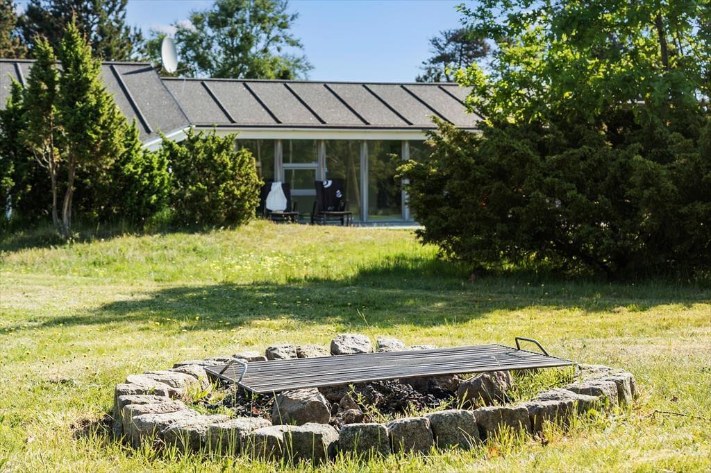 Das Ferienhaus befindet sich auf einem großen abgelegenen Naturgrundstück, das von Bäumen und Sträuchern umgeben ist. Auf insgesamt 2.500 m² können sich die Erwachsenen mit einem guten Buch im Liegestuhl entspannen, während die Kinder ihren eigenen Spielplatz genießen. Eine große Holzterrasse umgibt das Ferienhaus, sodass es einfach ist, einen Sonnenstrahl oder ein schönes schattiges Plätzchen in einer der vielen gemütlichen Ecken zu finden. Für Sommerabende steht ein Grill bereit, und wenn du die Kleinen in deiner Familie verwöhnen willst, kannst du einige deiner Mahlzeiten an der Feuerstelle zubereiten, wo ihr es euch mit Stockbrot und Marshmallows unter dem Sternenhimmel gemütlich machen könnt.