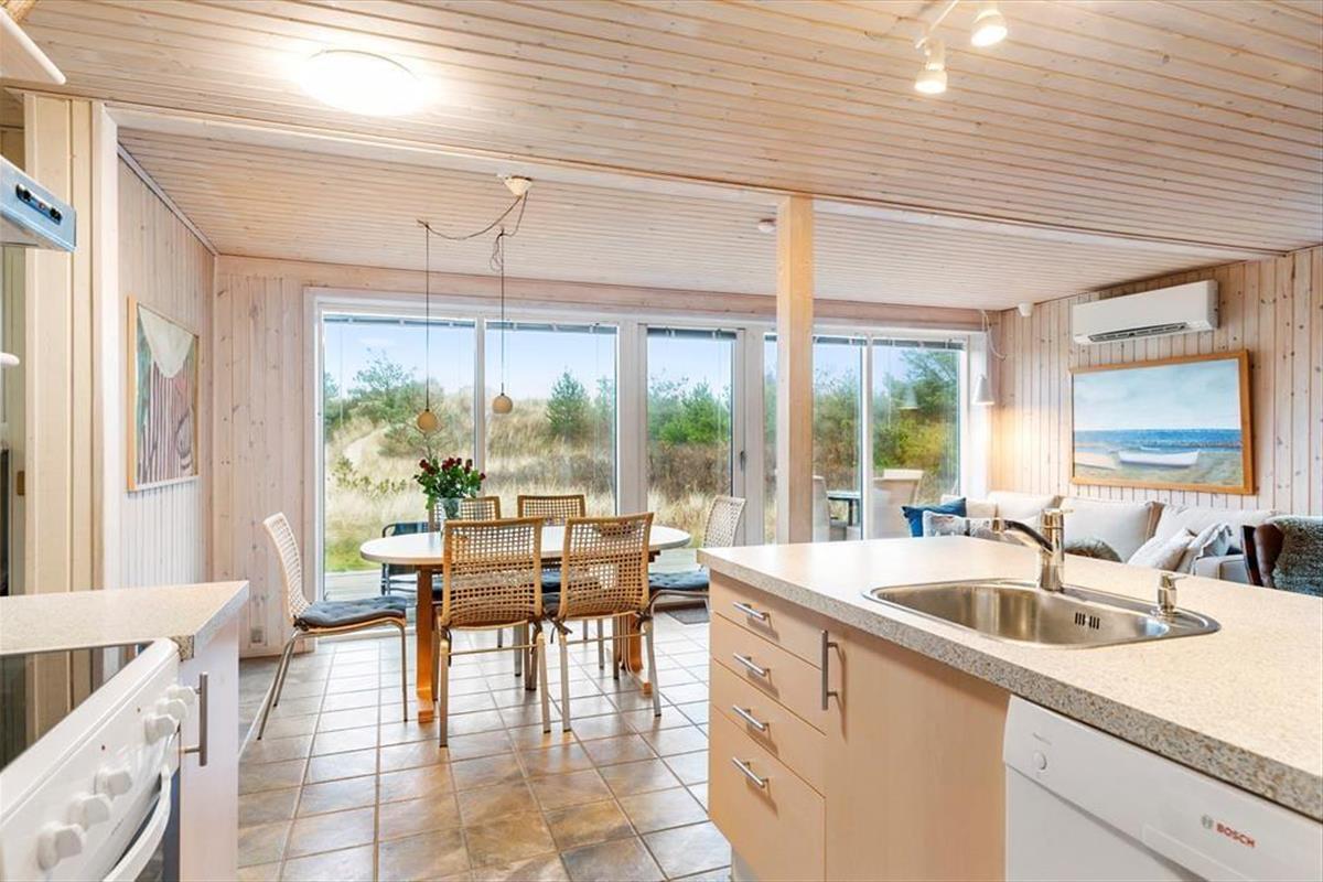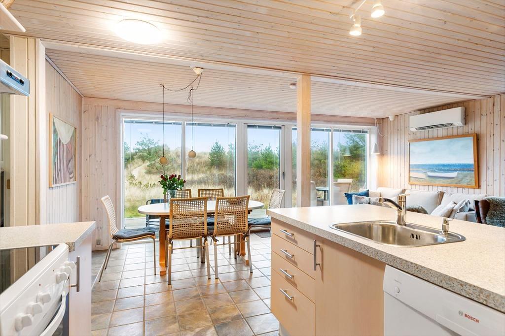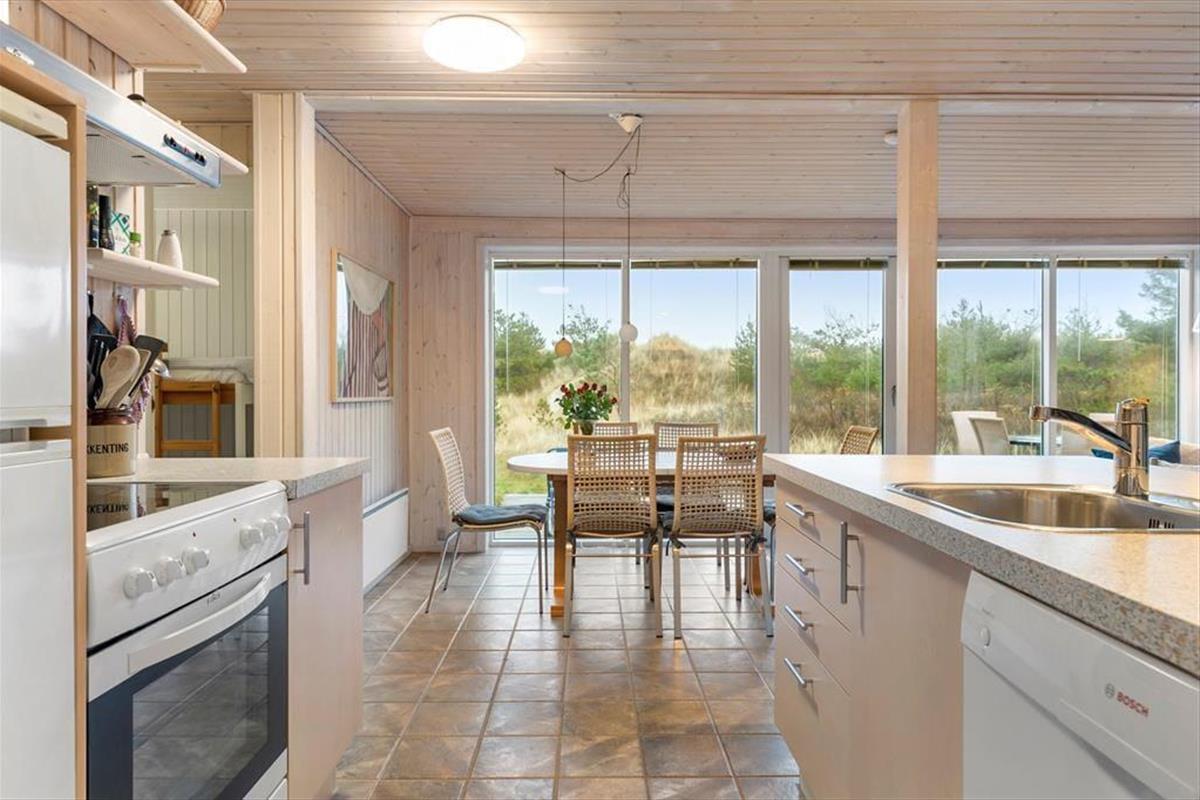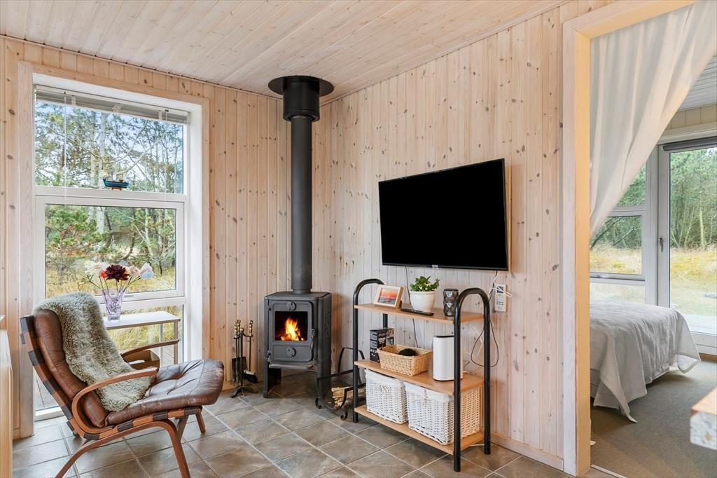 Dieses gemütliche Ferienhaus begrüßt dich mit einer hellen und einladenden Atmosphäre, in der du dich sofort wohlfühlst. Das geräumige Wohnzimmer ist mit bequemen Möbeln und einem Kamin ausgestattet, der an kühleren Abenden für gemütliche Stunden sorgt. Die offene Verbindung zwischen Küche und Wohnzimmer ermöglicht es, während der Essenszubereitung weiter zu plaudern und zusammen zu sein. Das Haus wurde mit einem Fokus auf Ruhe und Gemütlichkeit gestaltet, und die Schlafzimmer bieten Raum für Erholung und erholsamen Schlaf. Das Badezimmer lädt zu einer erfrischenden Morgendusche ein, und als besonderes Highlight kannst du dich nach einem Strandbesuch unter der Außendusche abspülen – perfekt nach einem Tag am Meer.