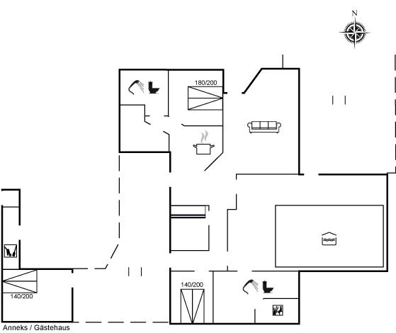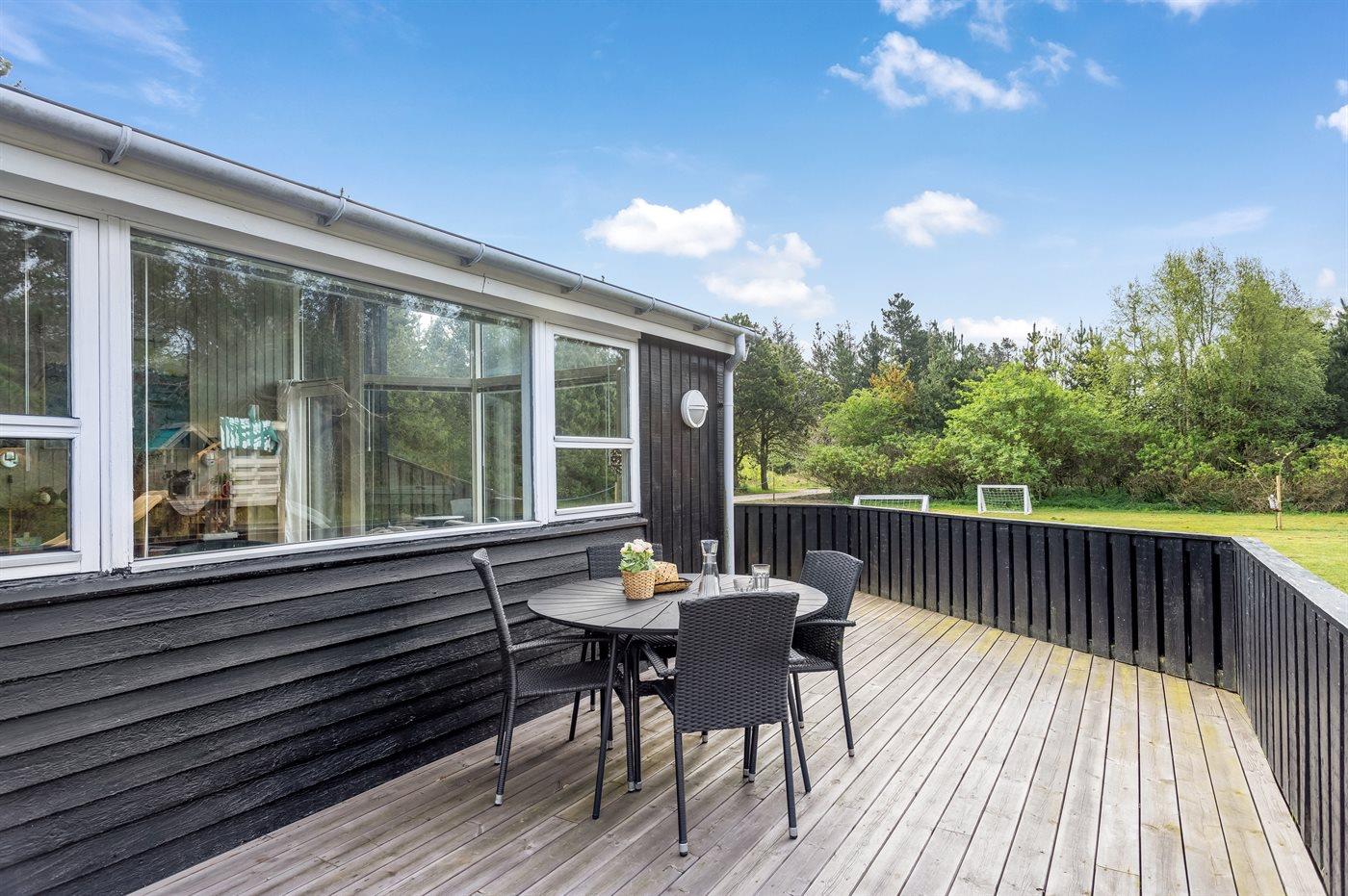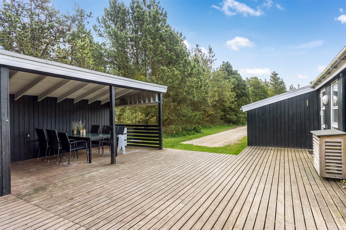 De vakantiewoning is gelegen op een 2500 m² groot natuural grond. Afstand tot de zee 250 m. Dichtstbijzijnde winkel 400 m. Bij de vakantiewoning hoort 105 m² terras. Daarnaast is er een 20 m² groot overdekt terras. Gereedschapsruimte. Schommel. Zandbak. Speelhuisje. Speeltoren. Glijbaan. Voetbaldoel.