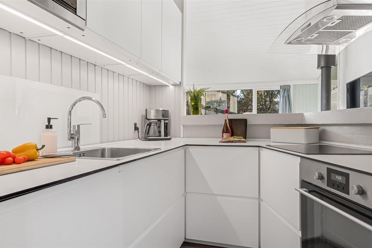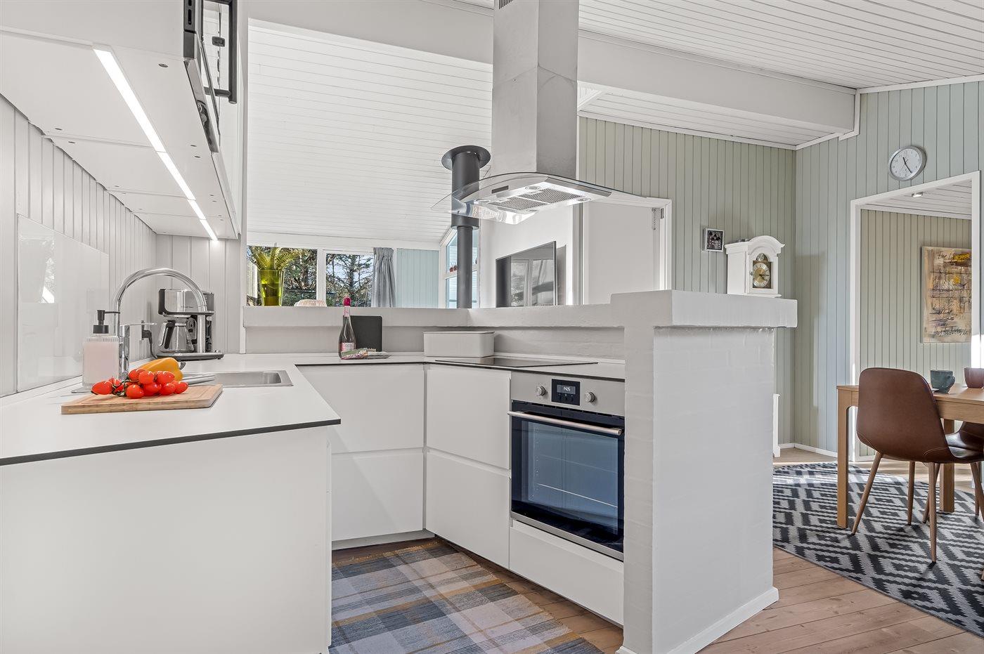De keuken is uitgerust met koelkast Er is 4 inductiekookplaten, bakoven, magnetron en vaatwasser.