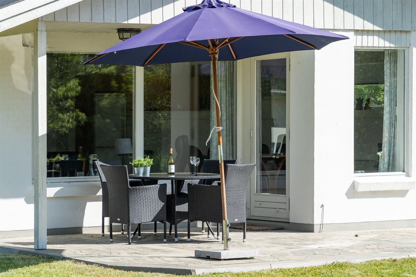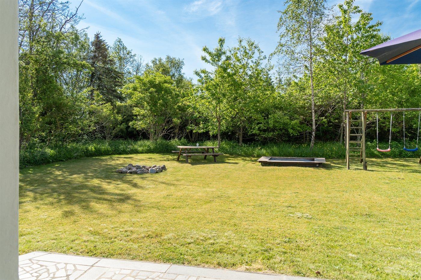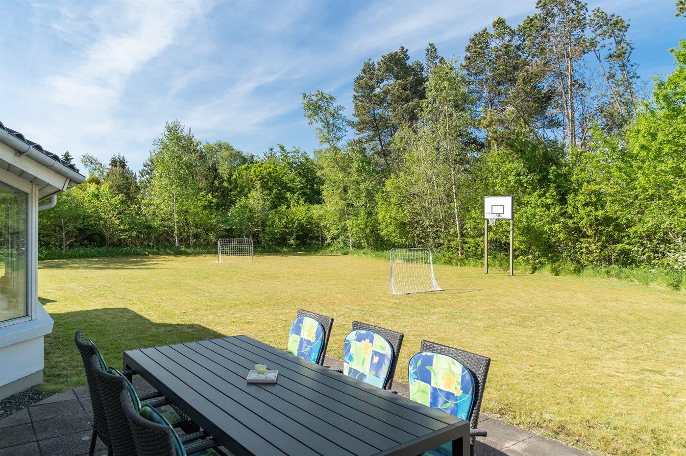 De vakantiewoning is gelegen op een 2500 m² groot natuural grond. Afstand tot de zee 600 m. Dichtstbijzijnde winkel 500 m. Bij de vakantiewoning hoort 50 m² terras - waarvan in totaal 7 m² overdekt terras. Gereedschapsruimte. Schommel. Zandbak. Glijbaan. Voetbaldoel.Vuurplaats. Barbecue.Garage ter beschikking. Het huis heeft een stopcontact voor het opladen van een elektrische auto. Met 11 kW-laadvermogen. Parkeerplaats bij het huis.
