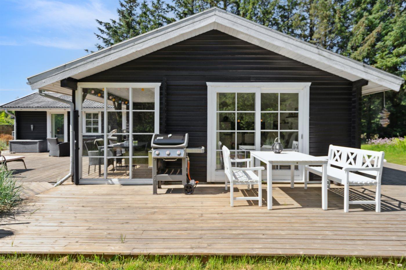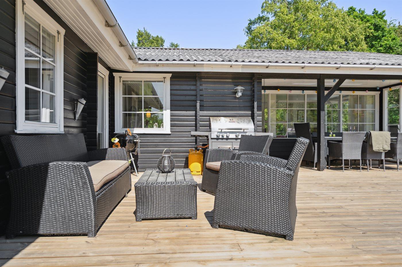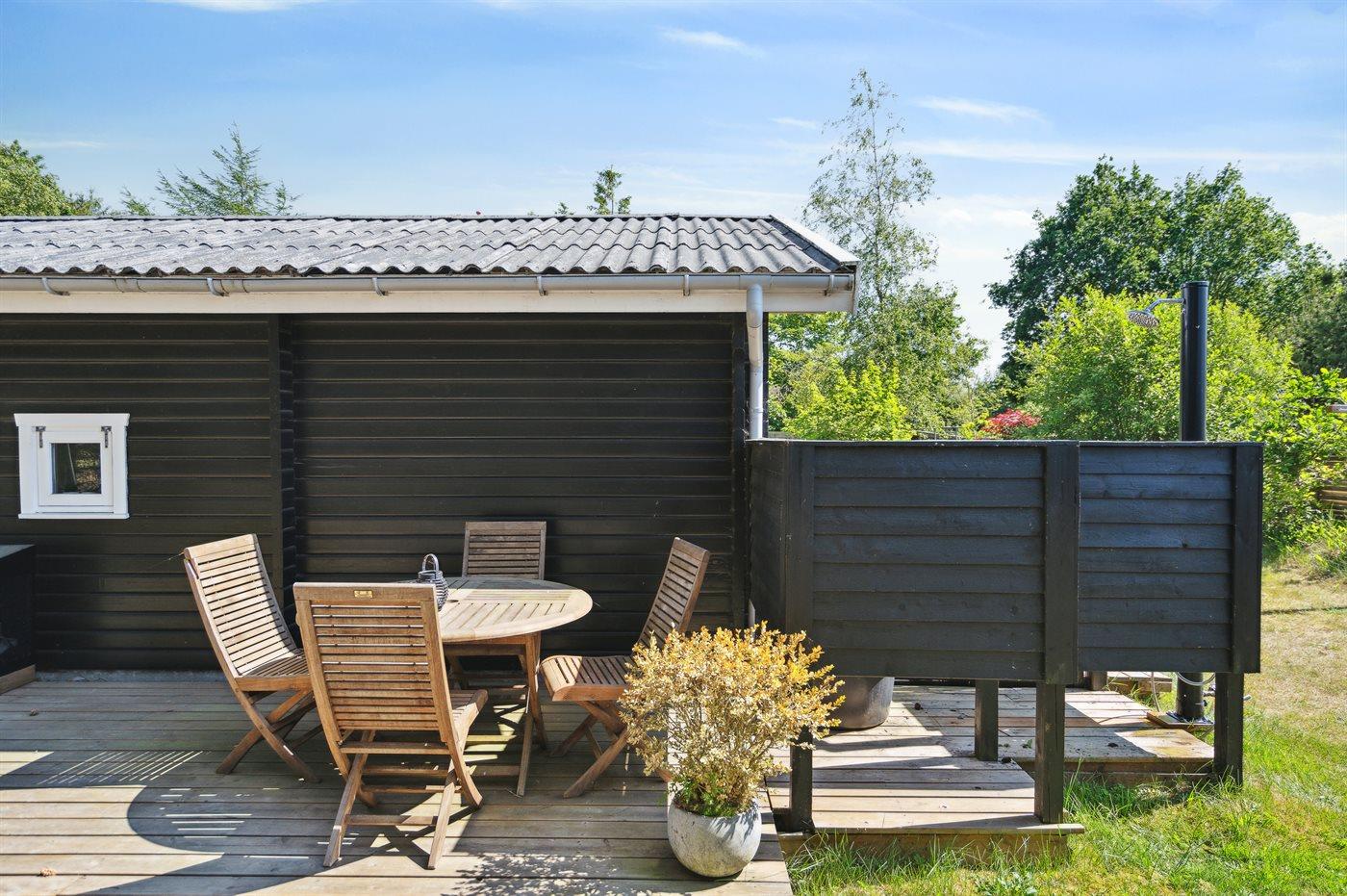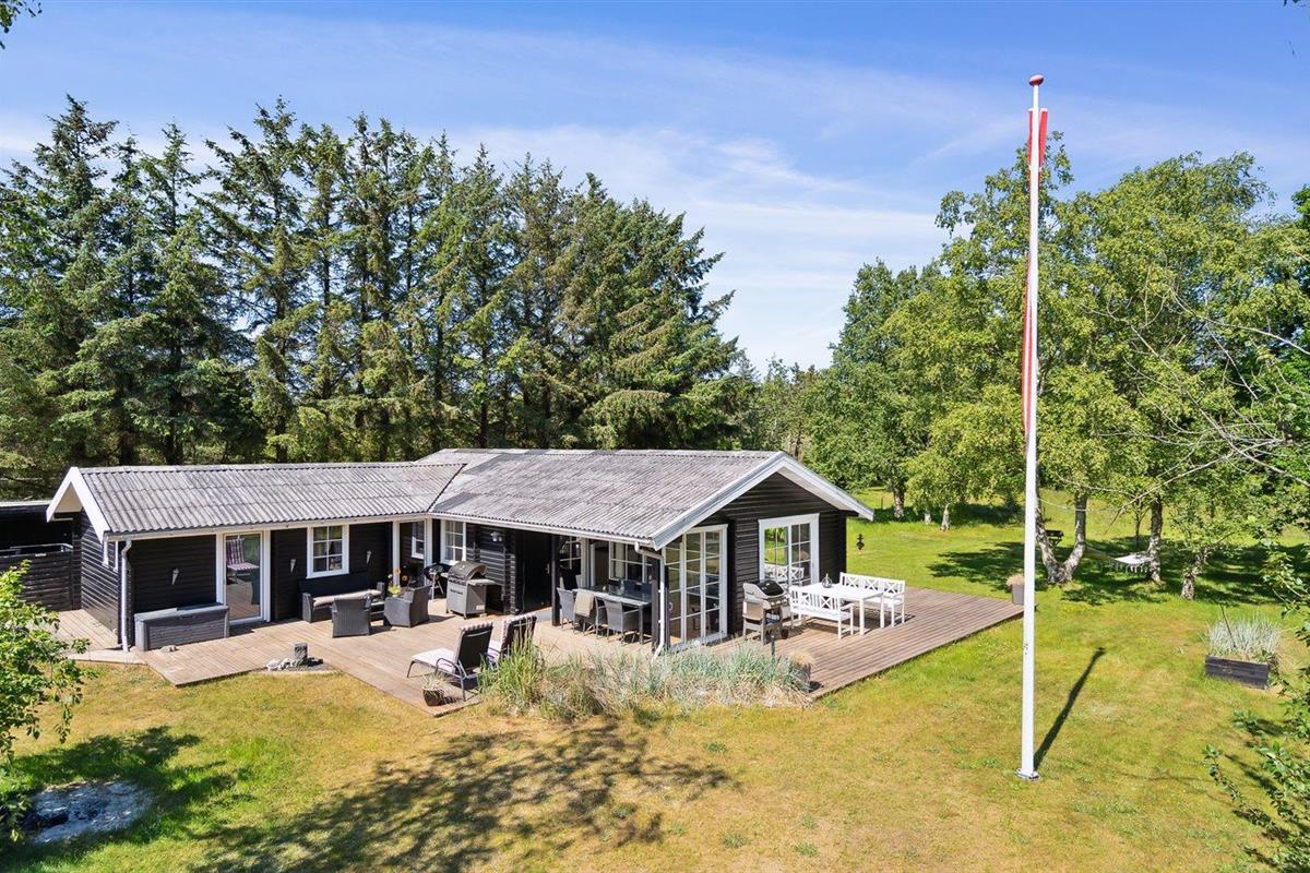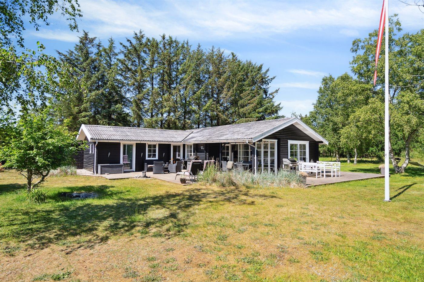 De vakantiewoning is gelegen op een 2909 m² groot natuural grond. De grond is omheind. Afstand tot de zee 600 m. Dichtstbijzijnde winkel 600 m. Er is een golfbaan op een afstand van 7000 m. Bij de vakantiewoning hoort terras. Daarnaast is er een overdekt terras. Afstand tot speelplaats 600 m.Vuurplaats. Barbecue. Parkeerplaats bij het huis.