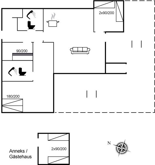 Er zijn in totaal 4 slaapkamers. De slaapplaatsen zijn als volgt verdeeld: 2 slaapplaatsen in tweepersoonsbed. 4 slaapplaatsen in eenpersoonsbedden. 2 slaapplaatsen in stapelbed. 2 van deze slaapplaatsen bevinden zich in de bijgebouw.