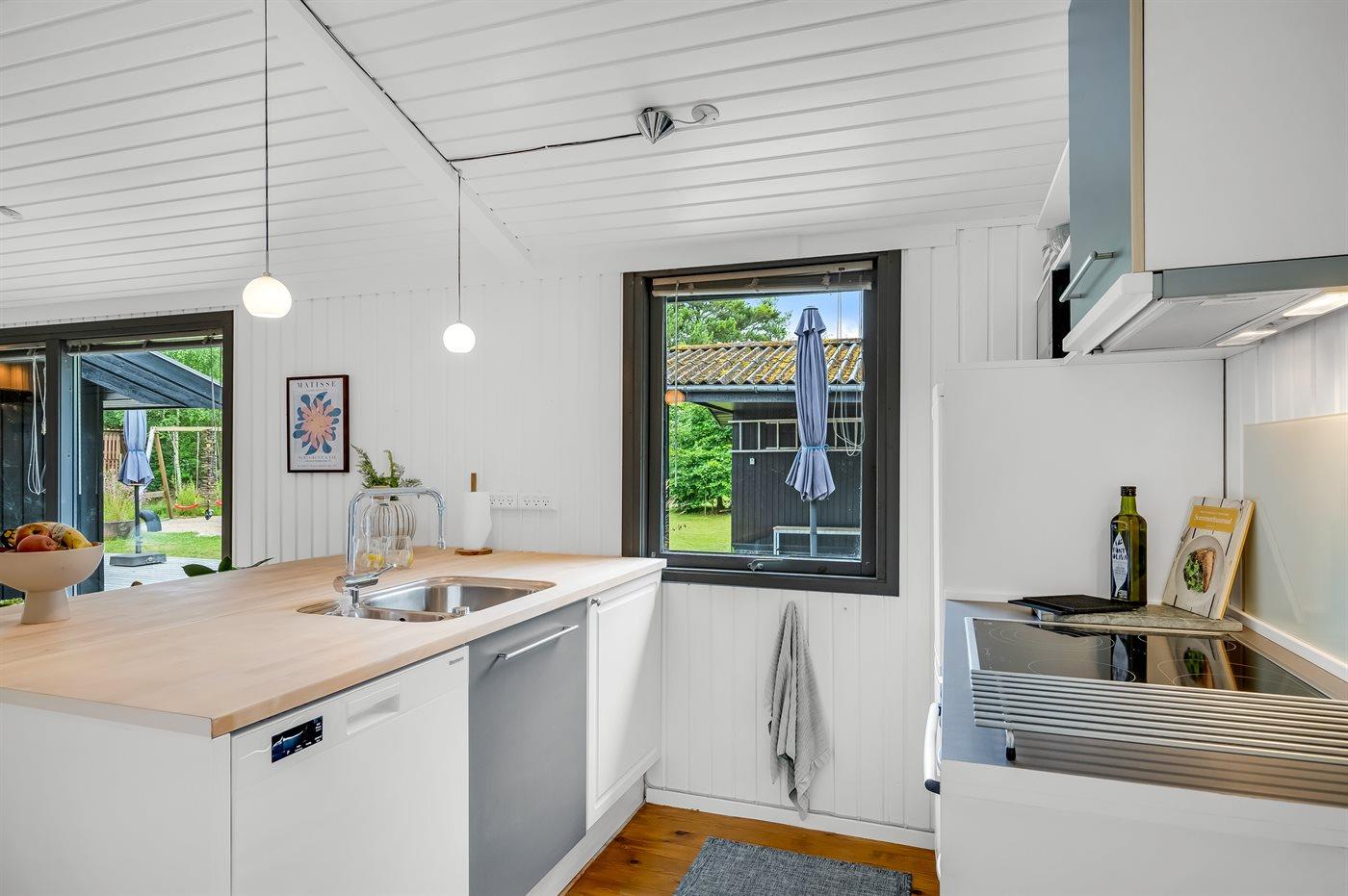 De keuken is uitgerust met koelkast Er is 4 inductiekookplaten, heteluchtoven, magnetron en vaatwasser.