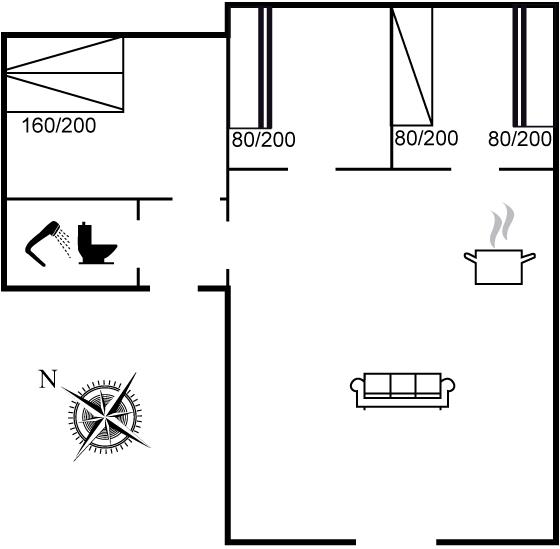 Er zijn in totaal 3 slaapkamers. De slaapplaatsen zijn als volgt verdeeld: 2 slaapplaatsen in tweepersoonsbed.1 slaapplaats in eenpersoonsbed. 4 slaapplaatsen in stapelbedden.