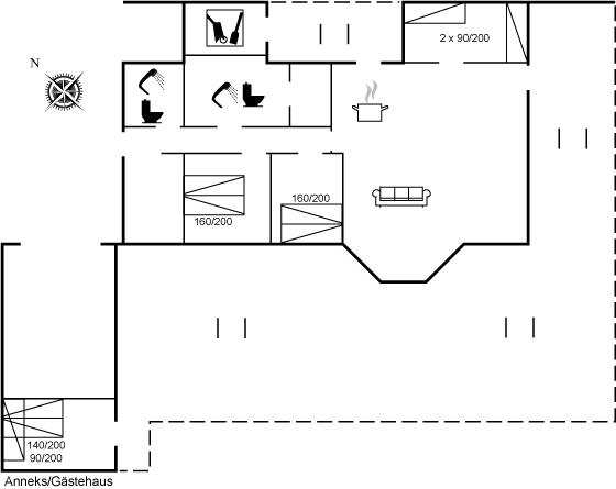 Er zijn in totaal 4 slaapkamers. De slaapplaatsen zijn als volgt verdeeld: 4 slaapplaatsen in tweepersoonsbedden. 2 slaapplaatsen in eenpersoonsbedden. 3 slaapplaatsen in stapelbedden. 2 van deze slaapplaatsen bevinden zich in de bijgebouw. Verder is kinderbed ter beschikking.