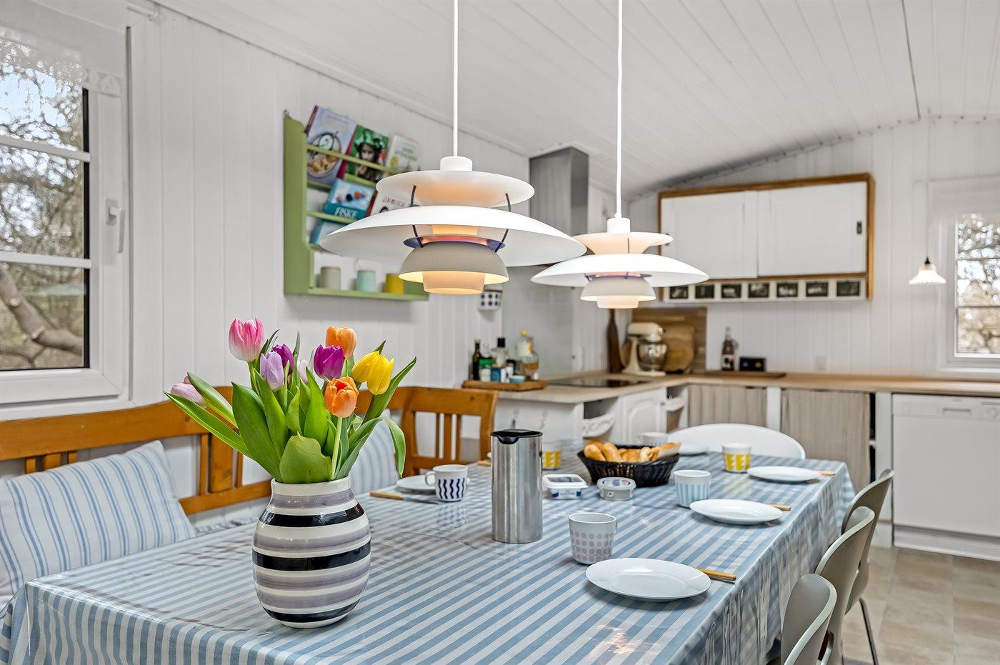 De keuken is uitgerust met koelkast Er is 4 inductiekookplaten, heteluchtoven, magnetron en vaatwasser. Vloerverwarming in de keuken.