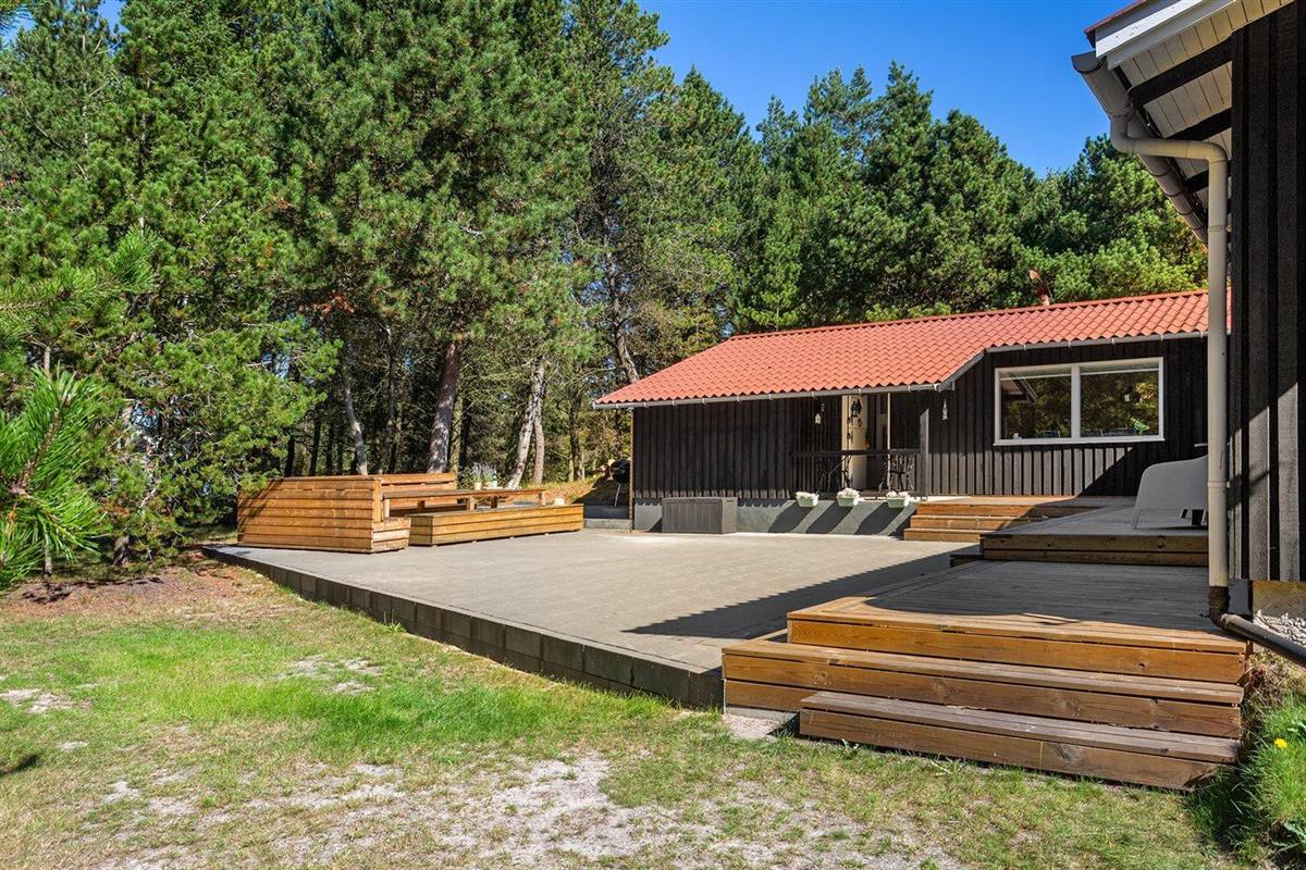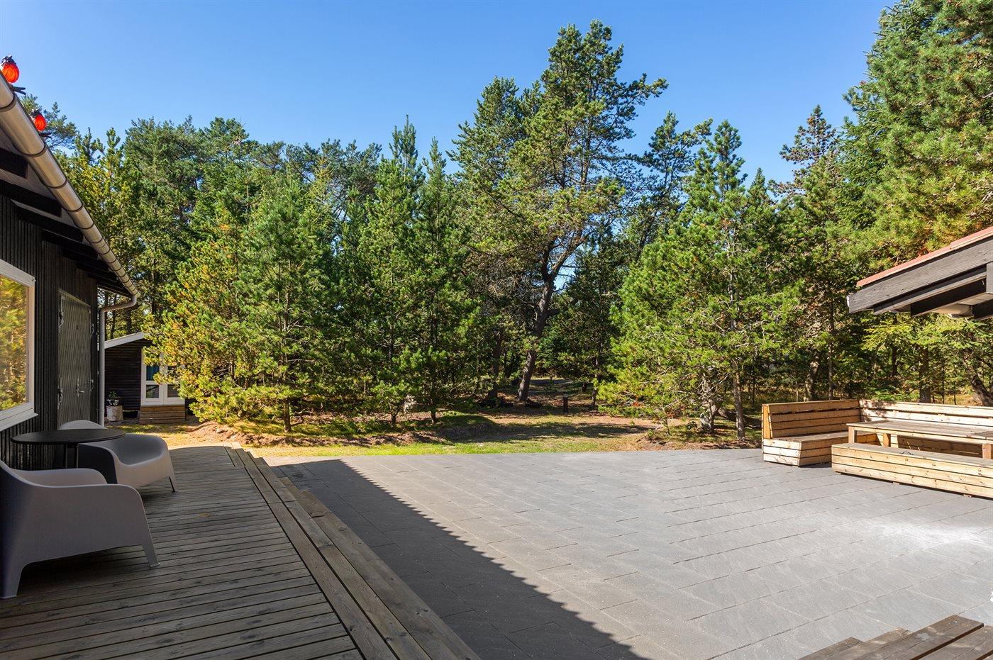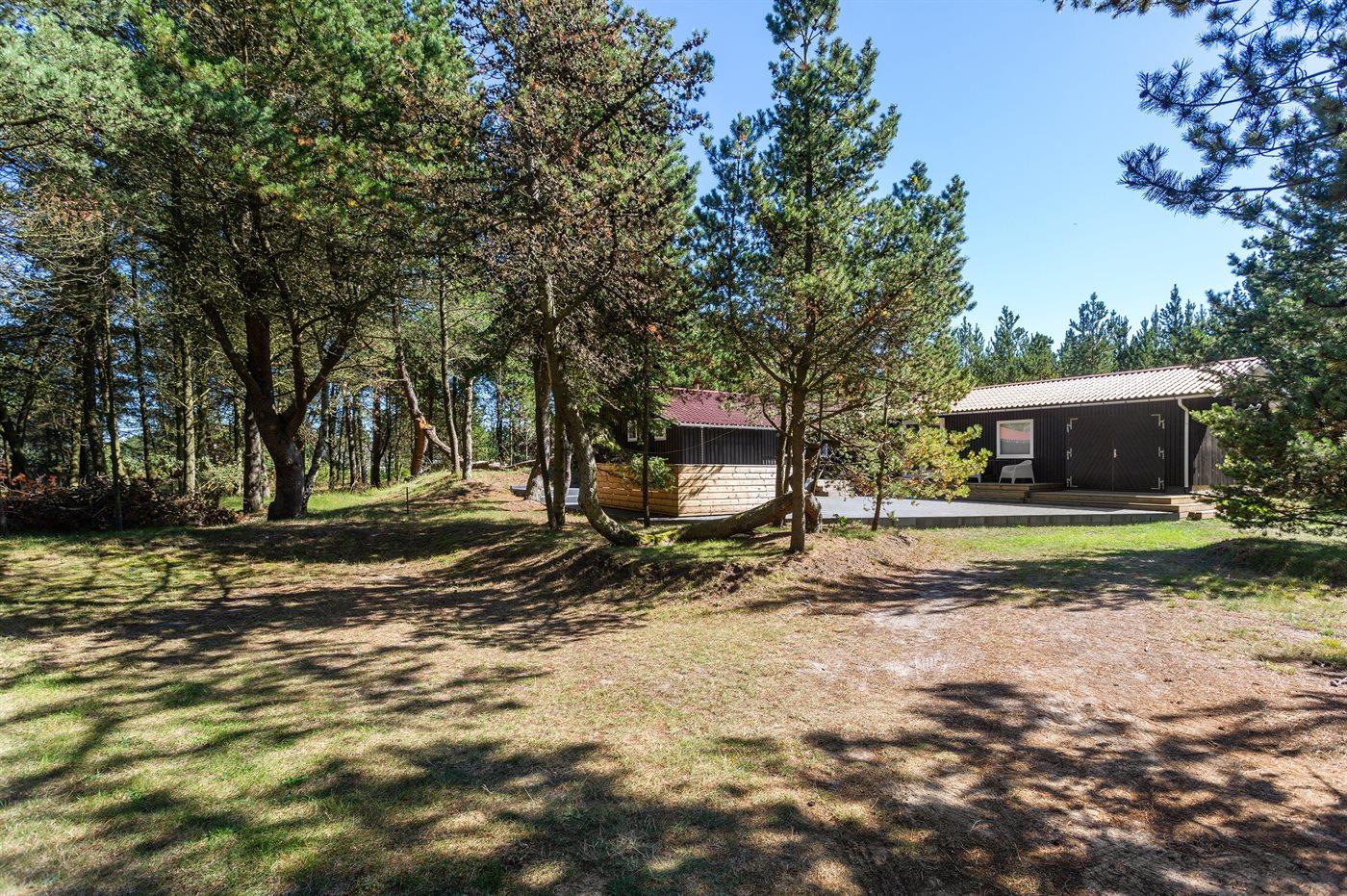 De vakantiewoning is gelegen op een 3515 m² groot natuural grond. Afstand tot de zee 300 m. Dichtstbijzijnde winkel 300 m. Bij de vakantiewoning hoort 50 m² terras. Daarnaast is er een 10 m² groot overdekt terras. Parkeerplaats bij het huis.