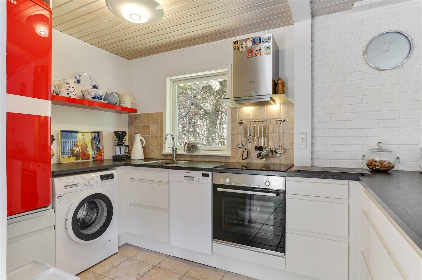 De keuken is uitgerust met koelkast Er zijn 4 keramische kookplaten, heteluchtoven en vaatwasser.